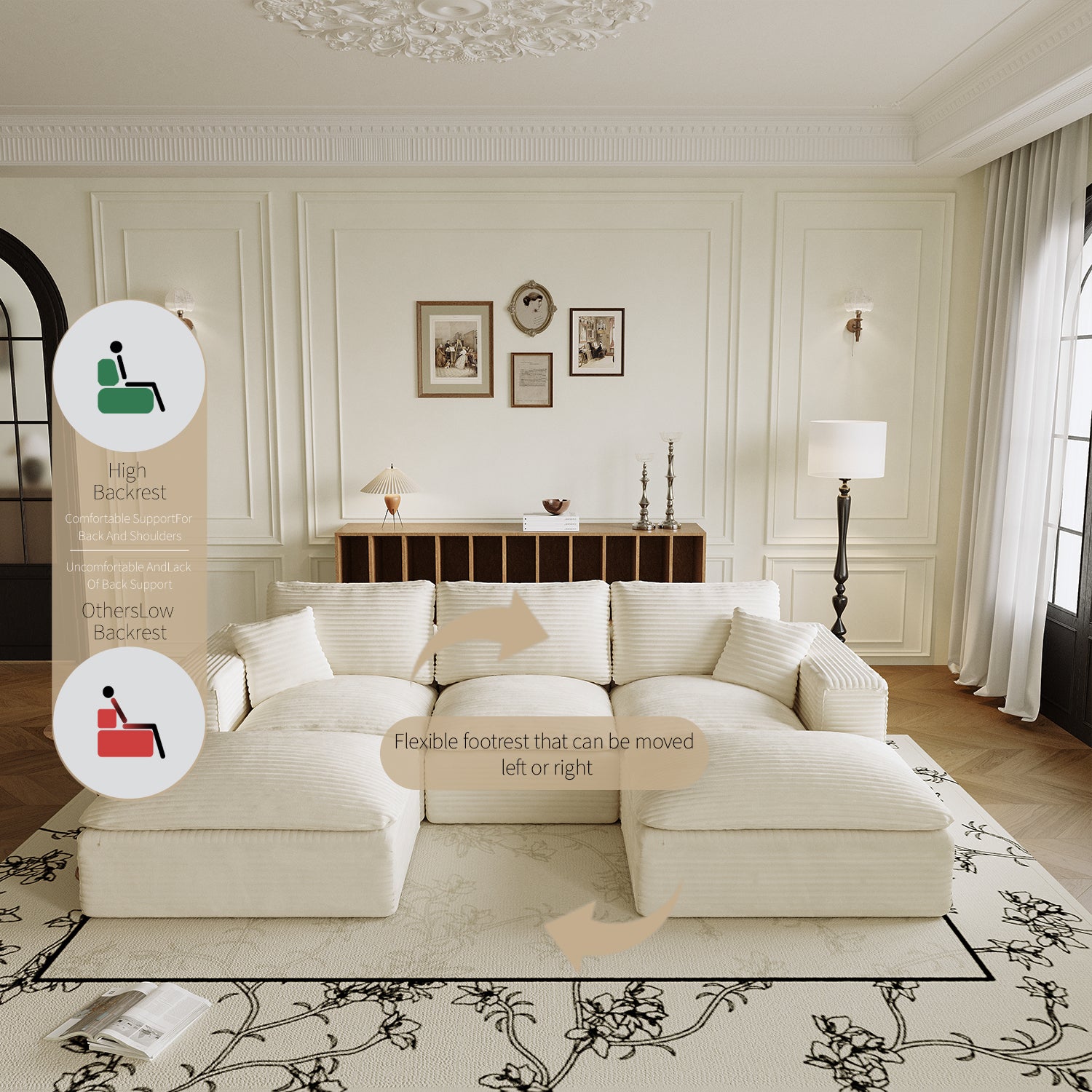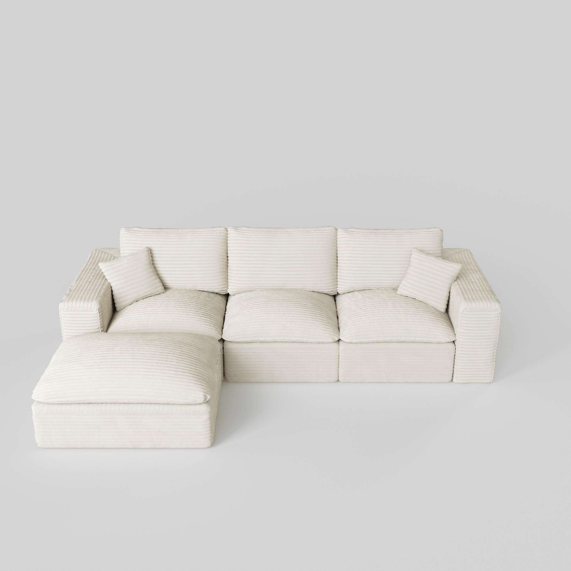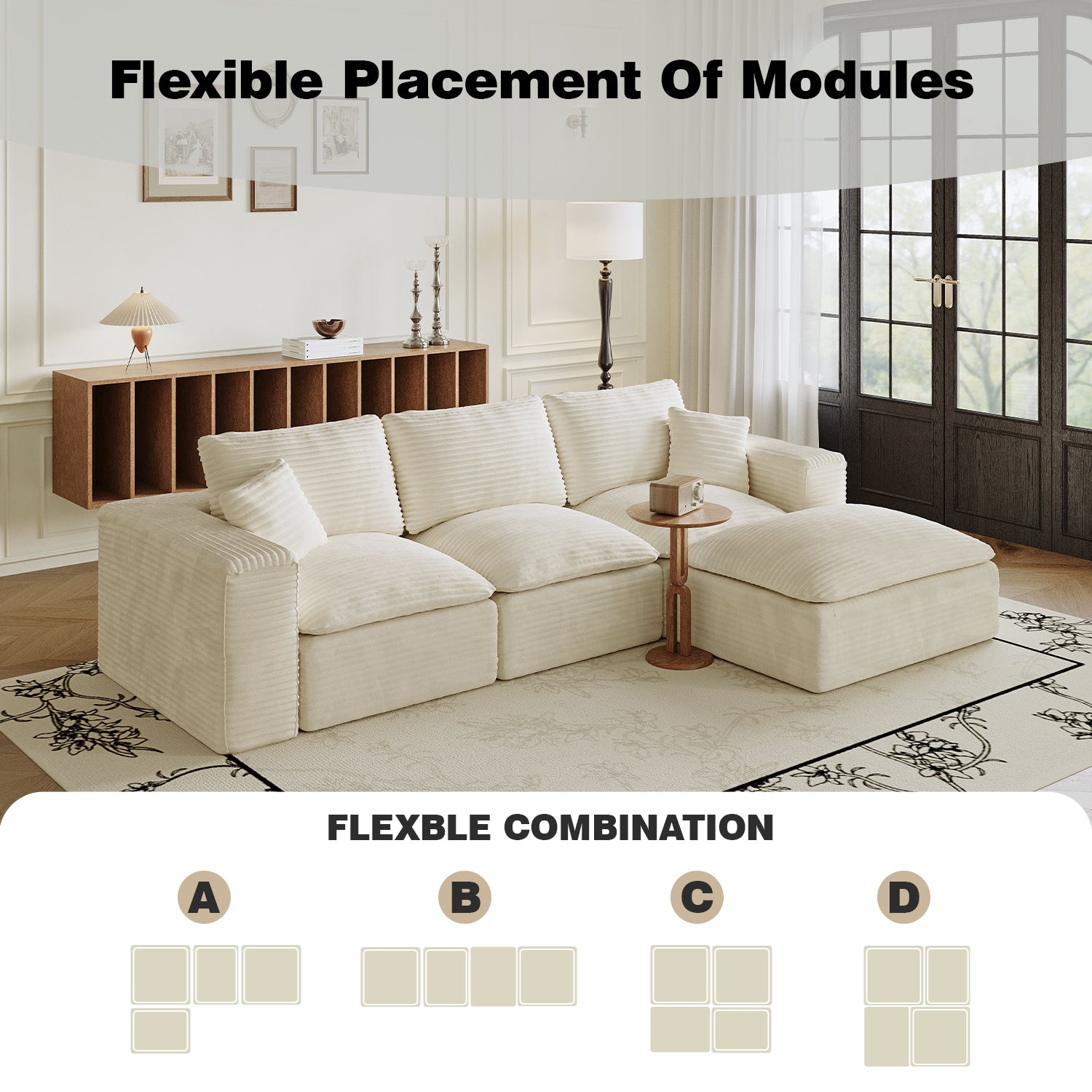108 Inch Modular Cloud Sectional Sofa with Interchangeable L Shape Chaise Plush Corduroy Deep Seat No Assembly Required Beige