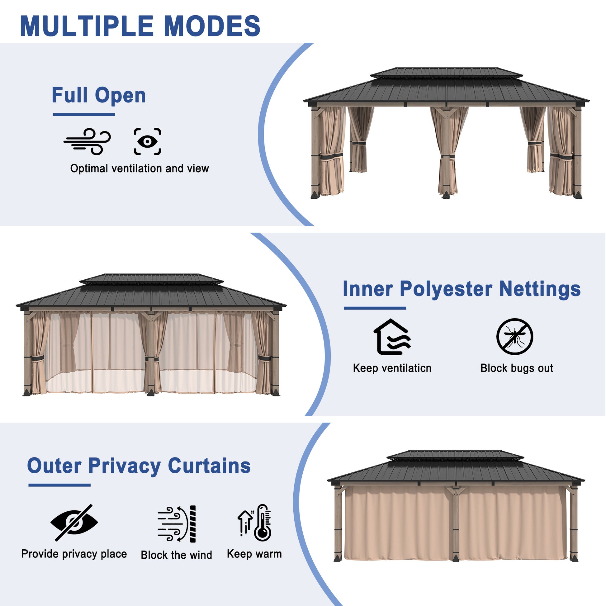 Double-Track System Comes with mesh screens and curtains to create a safe and comfortable outdoor space