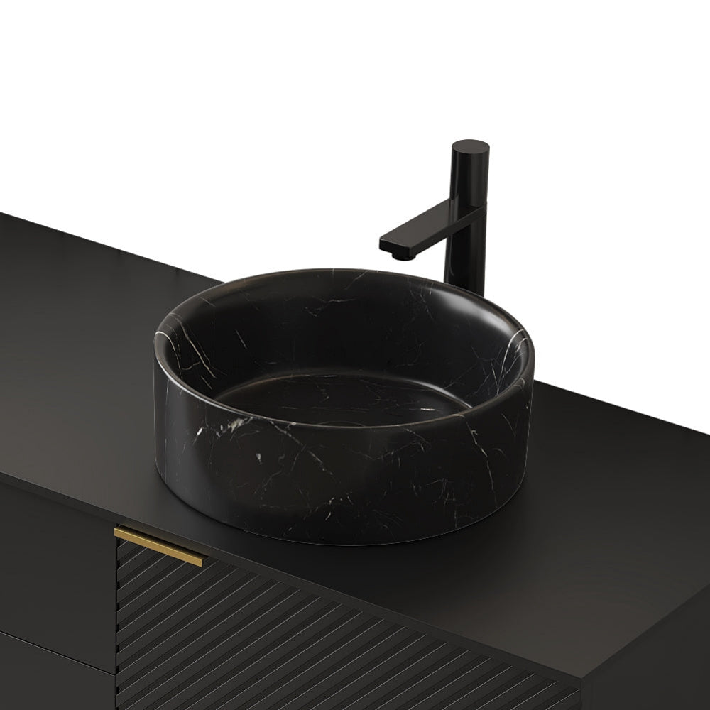 14 Inch Bathroom Sink Round Ceramic Basin Stone Pattern No Faucet No Cabinet Matte Black