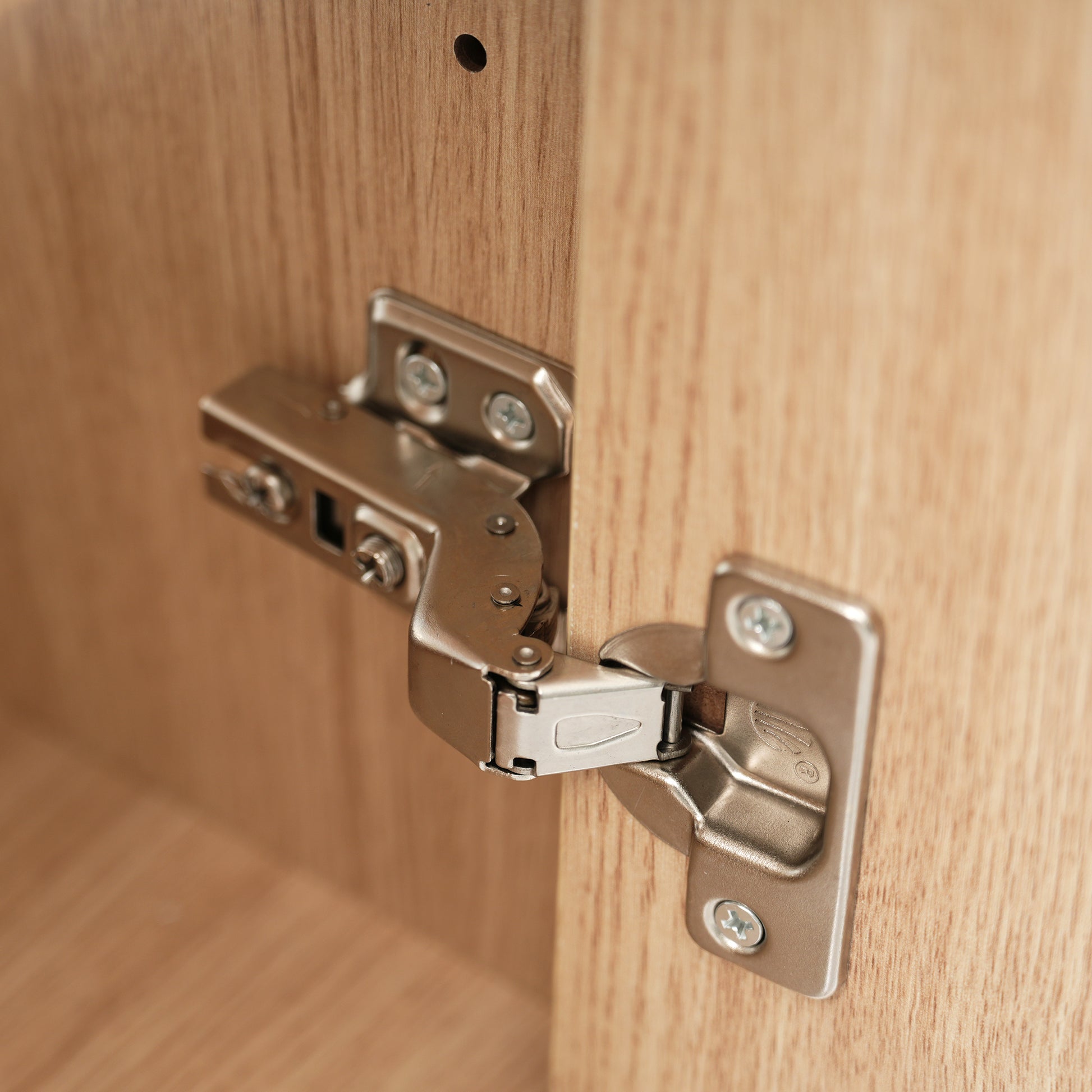This 15.75-inch bathroom vanity is designed for small spaces, offering both style and practicality. The wood grain melamine finish delivers a natural look with scratch and wear resistance for everyday durability. Featuring a reversible door and a premium resin sink with a smooth, easy-to-clean surface, it includes a pre-drilled single faucet hole for convenience. Inside, the adjustable shelf allows flexible storage according to your needs. The handle-free push-to-open door with a soft-close mechanism ensures a quiet and comfortable experience, making it a versatile choice for various bathroom layouts.