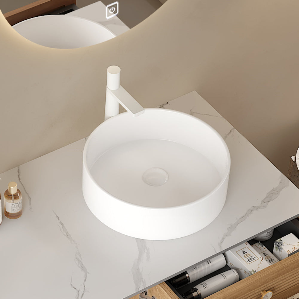 This one-piece high-hardness ceramic basin offers excellent durability and stain resistance. Designed in a round vessel shape, it is suitable for countertops or cabinets of various styles and patterns. Featuring a glossy white finish throughout, it delivers a clean and refreshing look, while being easy to clean and maintain for long-lasting use. A sturdy package is prepared to reduce the risk of damage during transportation, and our considerate customer service ensures a worry-free purchase experience.