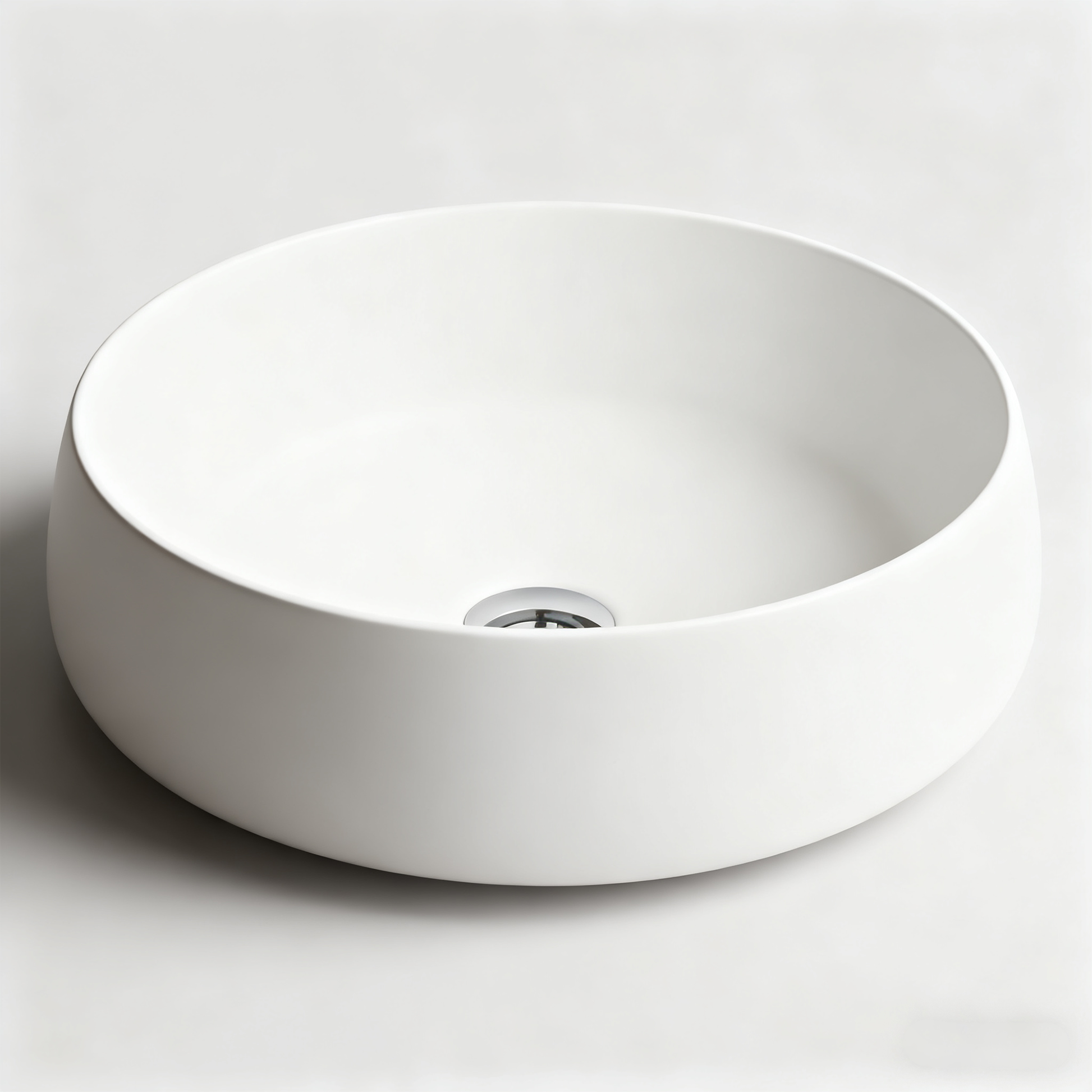 17.7 Inch Round Matte White Artificial Stone Bathroom Vanity Sink Countertop Sink