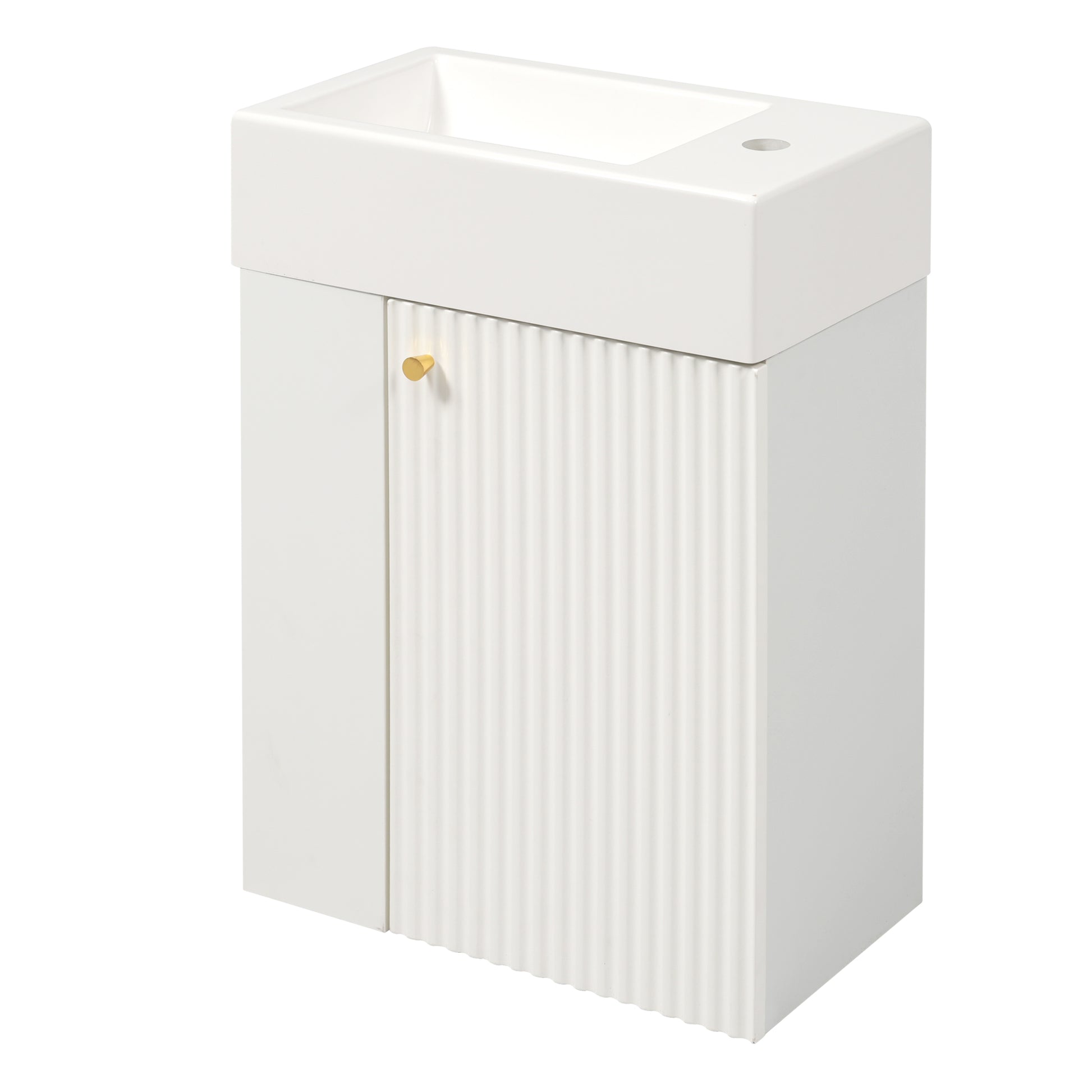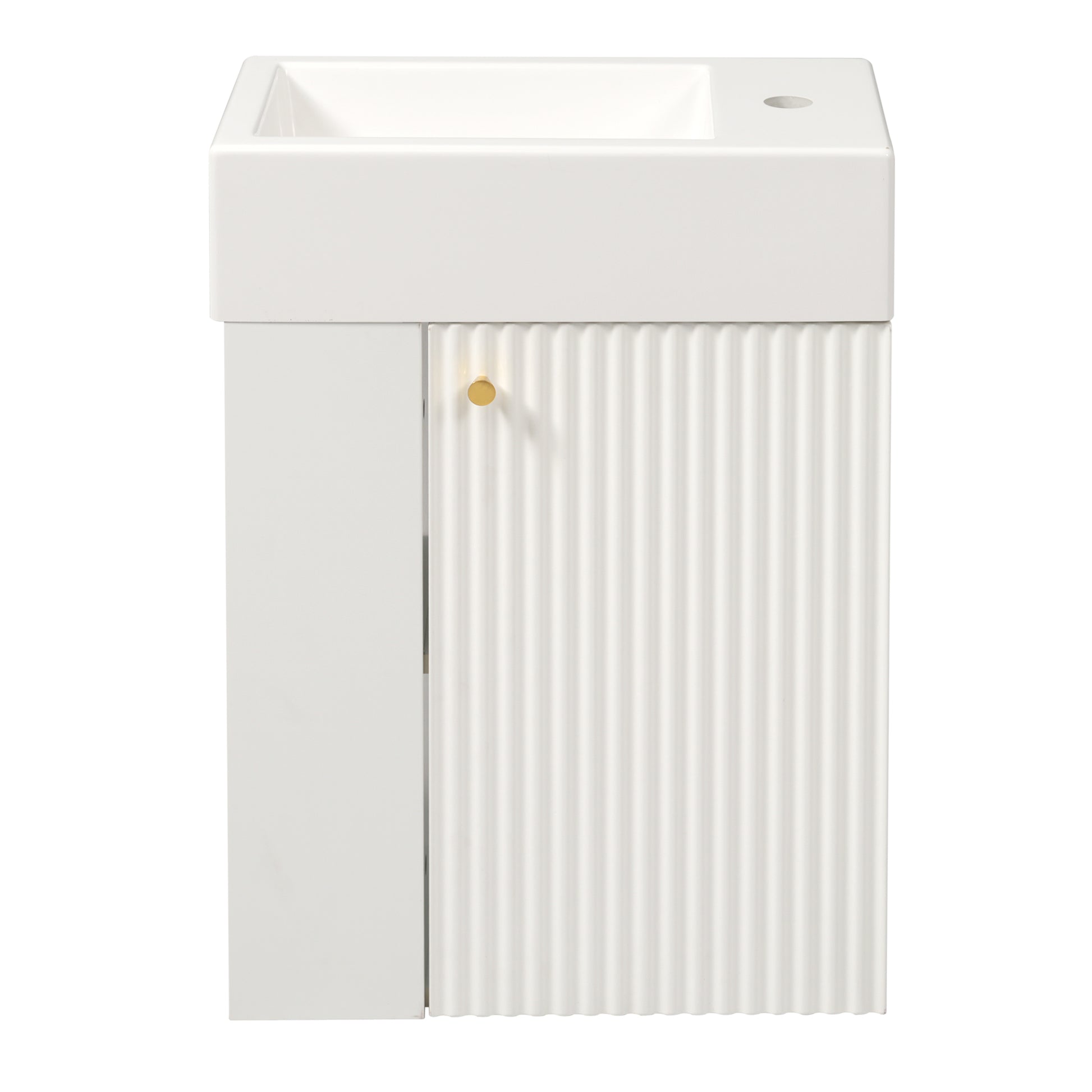 18.5 Inch Modern Floating Bathroom Vanity with Resin Sink Left Side Storage MDF Cabinet Soft Close Door Wall Mounted