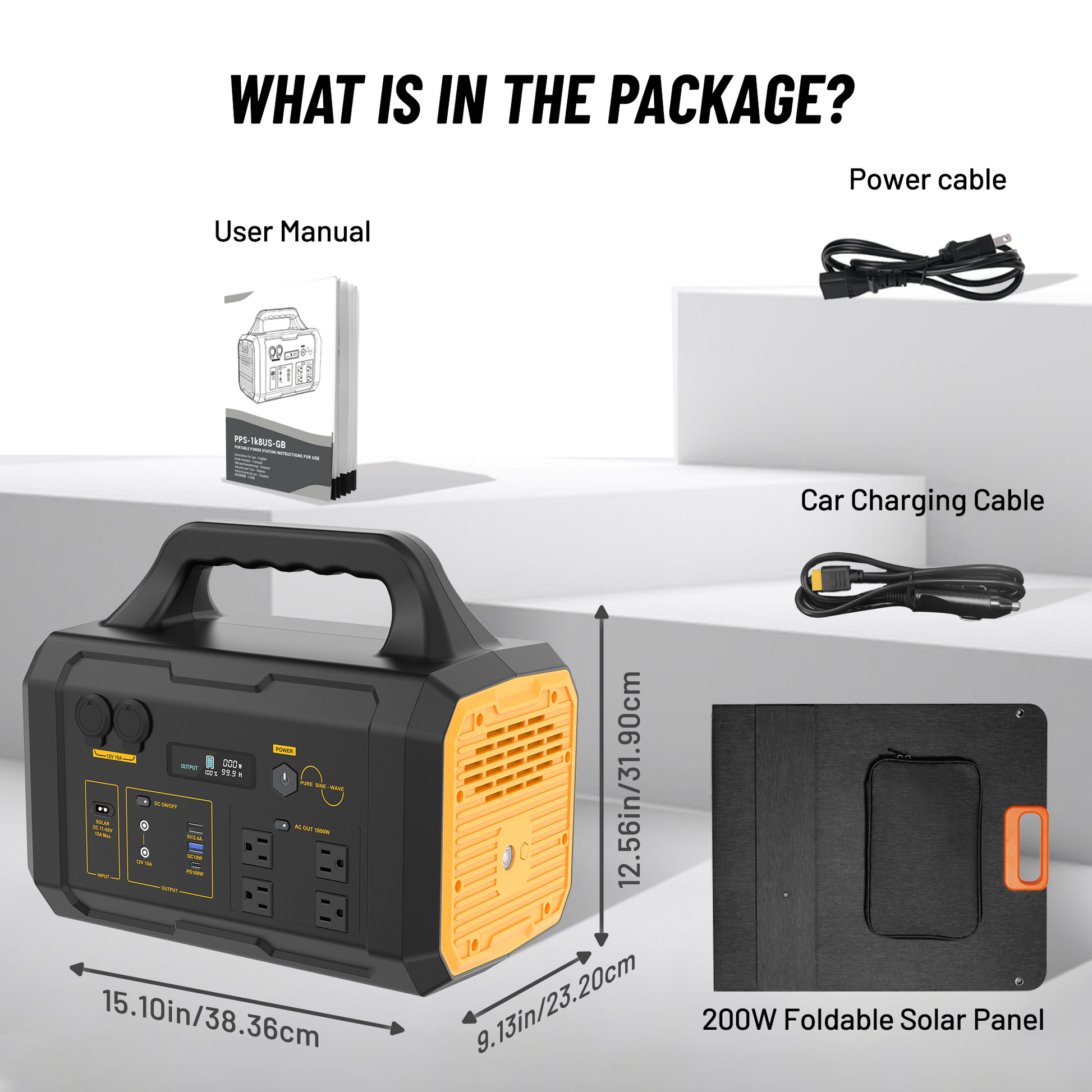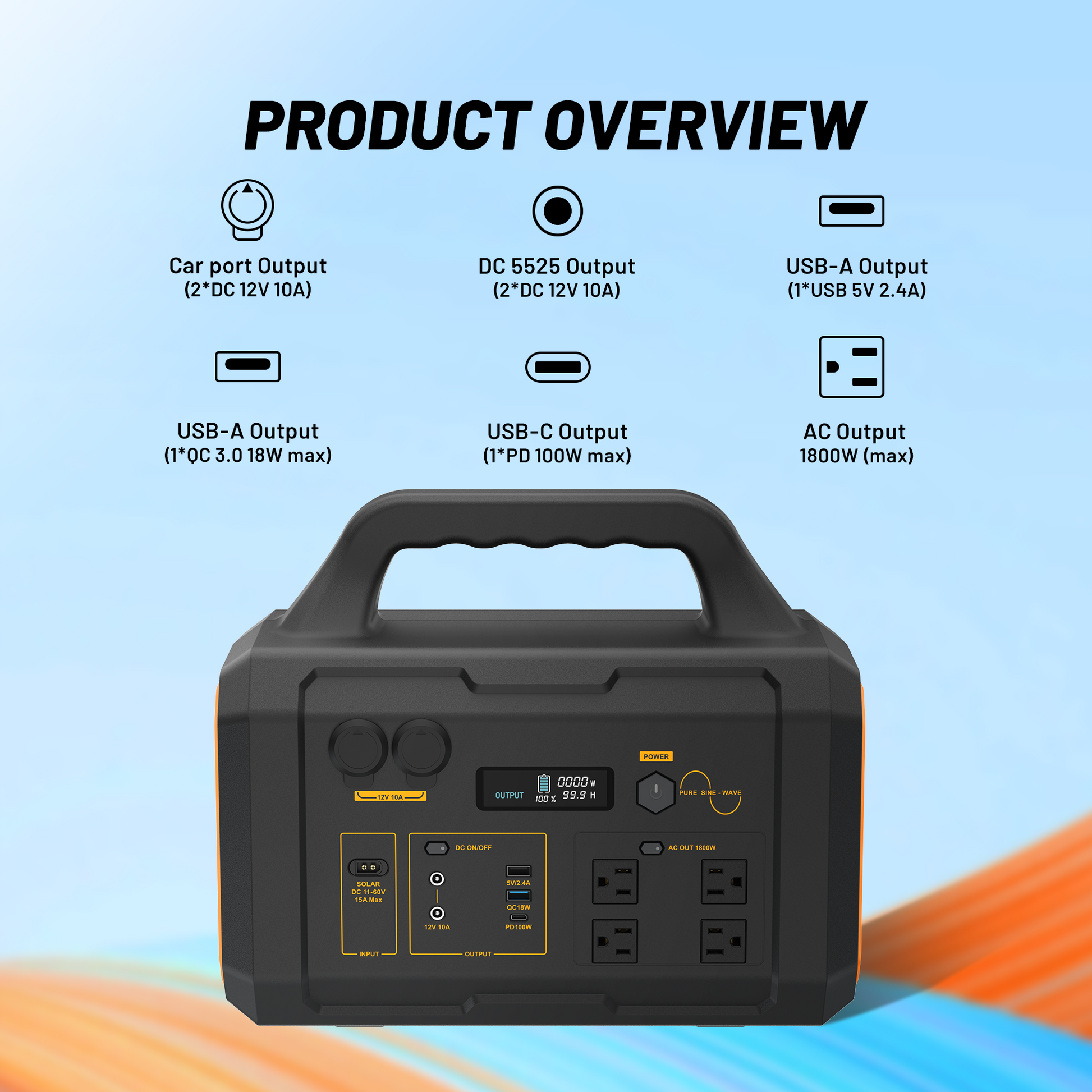 1800W Portable Power Station, 1000W Solar Generator Backup Power Supply with Ultra-Fast Charging and Extended Lifespan