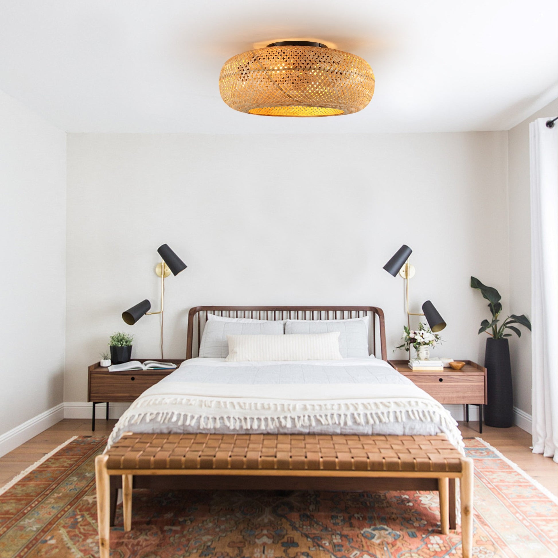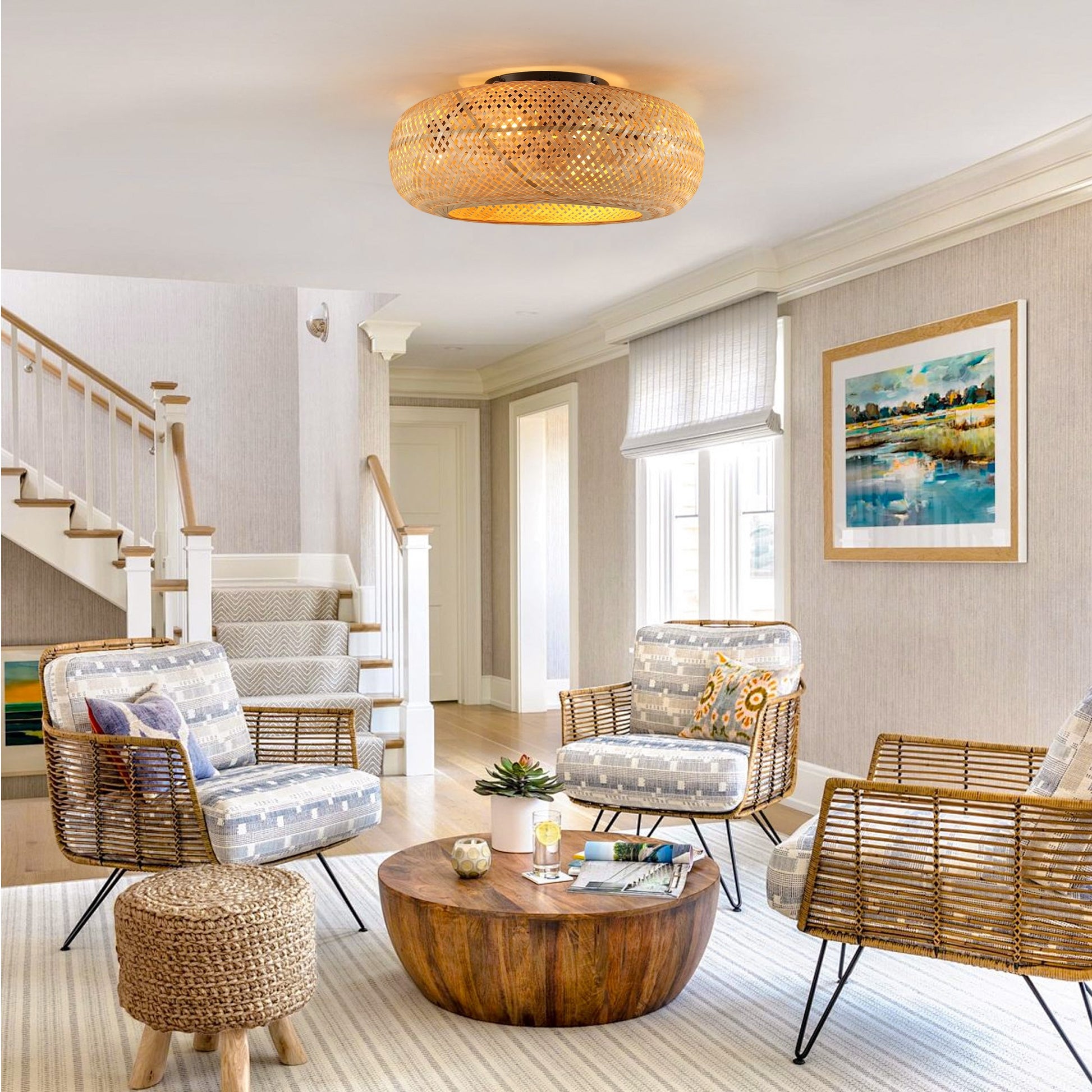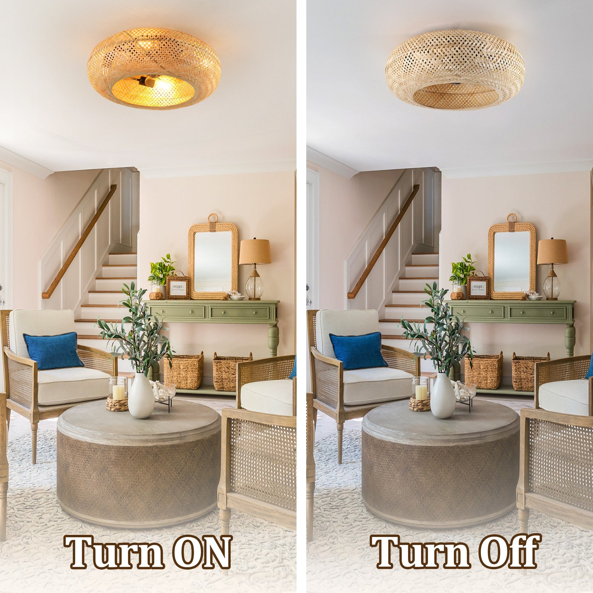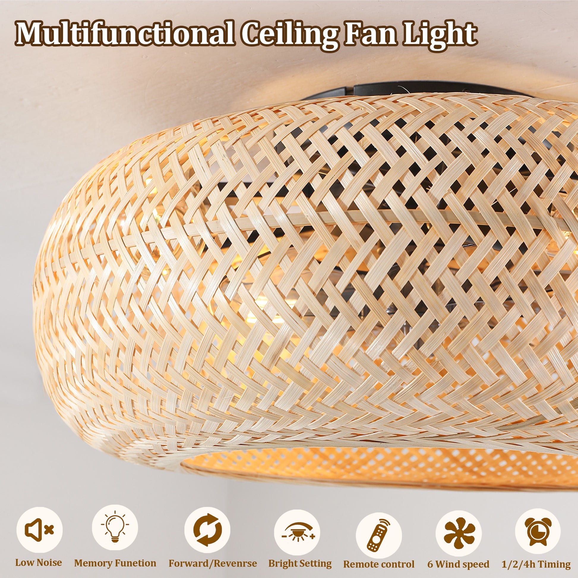 Imagine it in your bedroom or living room this 19" rattan fan has remote control 6 speeds reversible DC motor dimmable 3000K-6000K light quiet <35dB for peaceful days/nights
