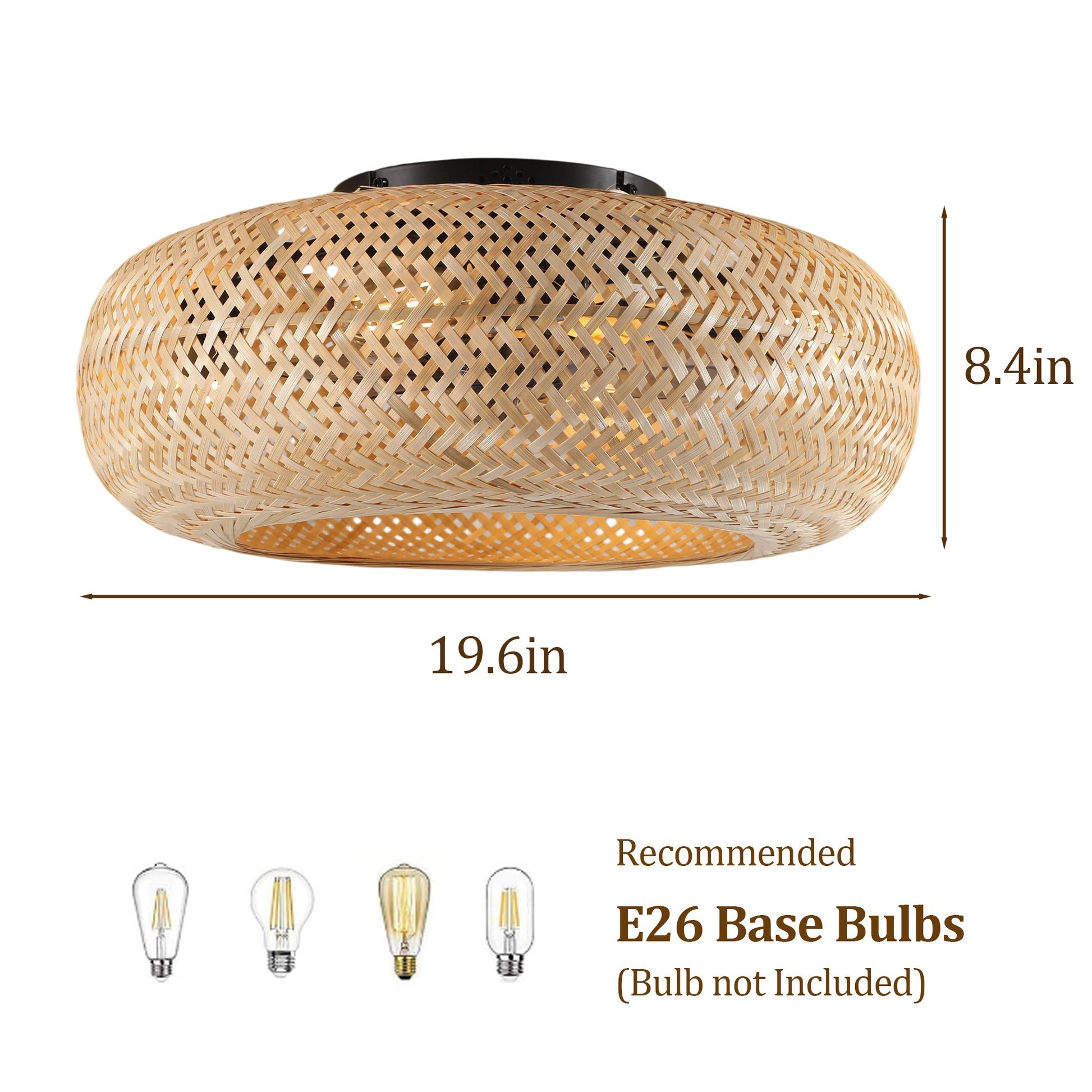 19 Inch Rattan Ceiling Fan with 4 Bulbs Dimmable Remote Control 7 Blades Reversible DC Motor