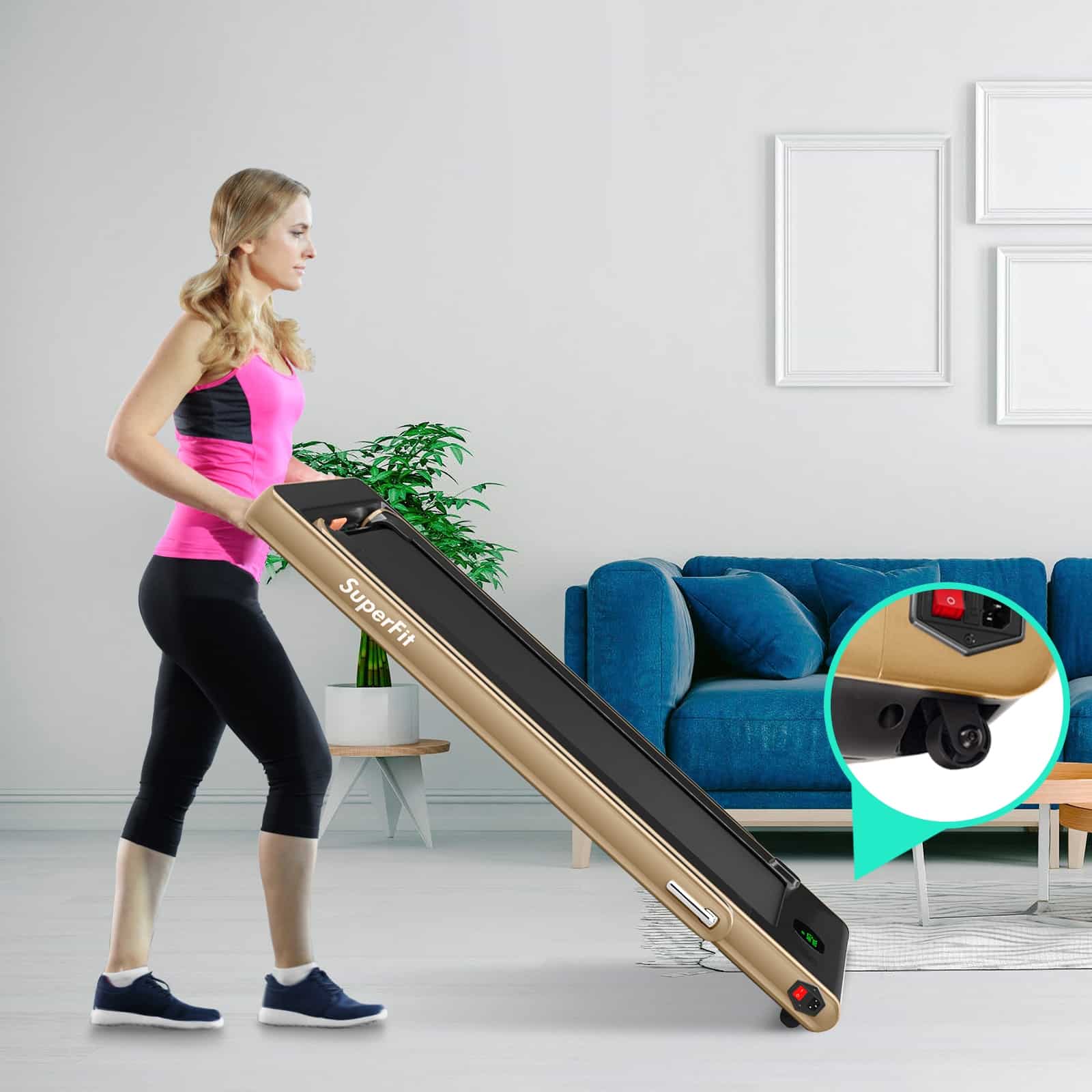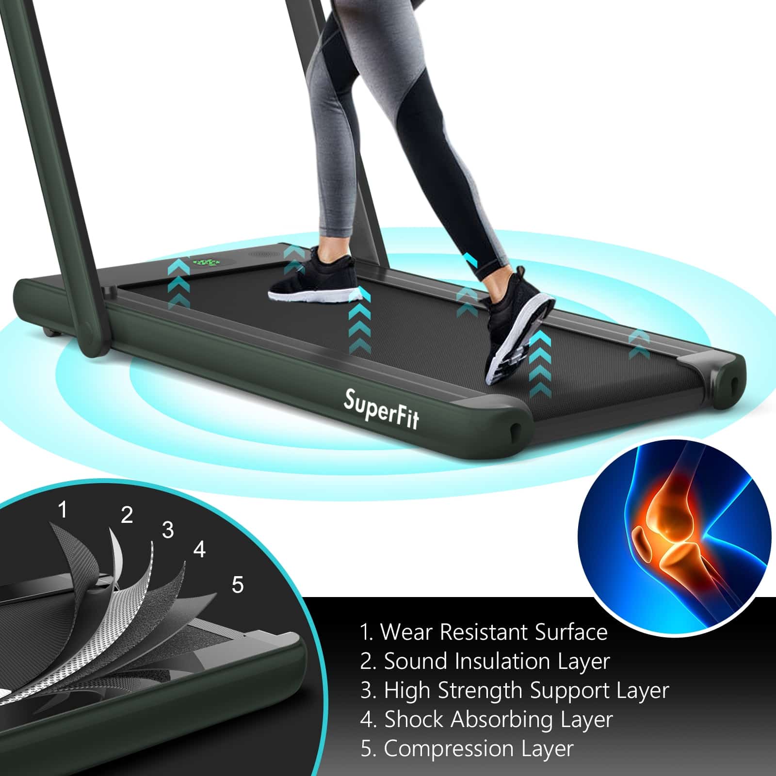● 2.25 hp Quiet Motor and Shock-absorbing Design: This treadmill will provide a silent and high-intensity work-out with a powerful 2.25 hp motor on its base. It absorbs your tread with the 7 layer shock-absorption deck and keeps you safe from hurting the knees and lower body.