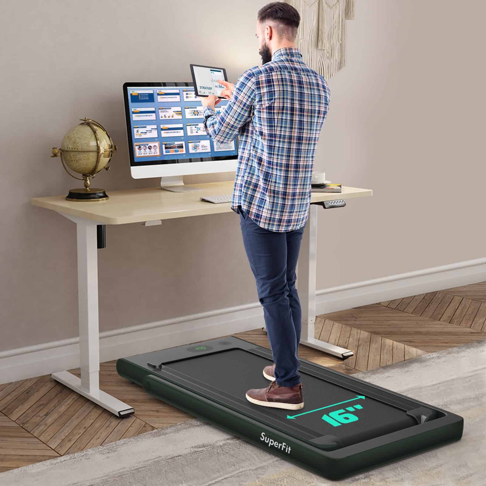 ● 2 in 1 Running and Walking Treadmill: 2-in-1 treadmill has two modes of exercise: 1. When the riser and armrests are raised, can run up to 12 km/h maximum to reach the ideal body shape and weight. 2. Can place it under the table when the riser is folded and enjoy walking at a speed of 1-4 km/h while working or studying.