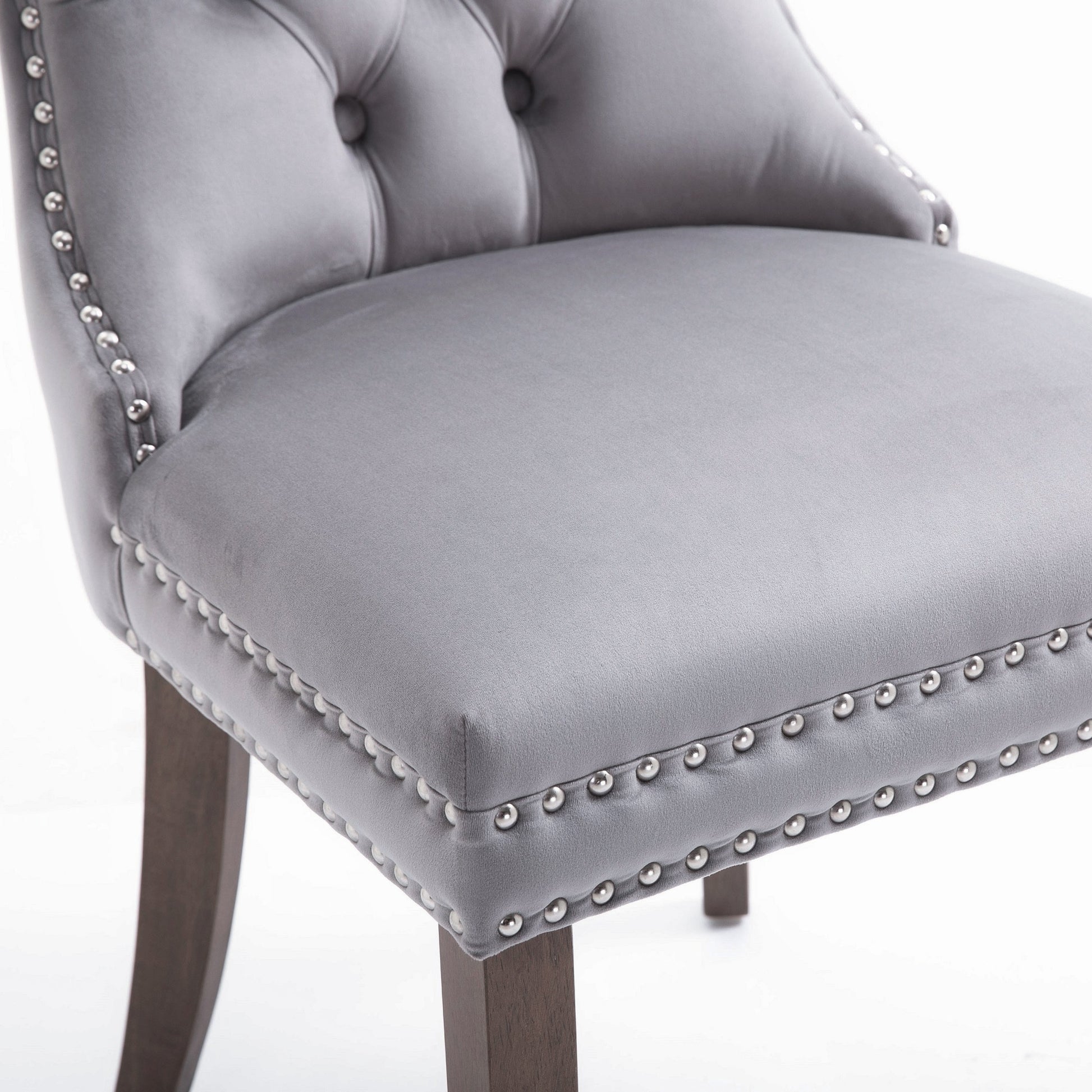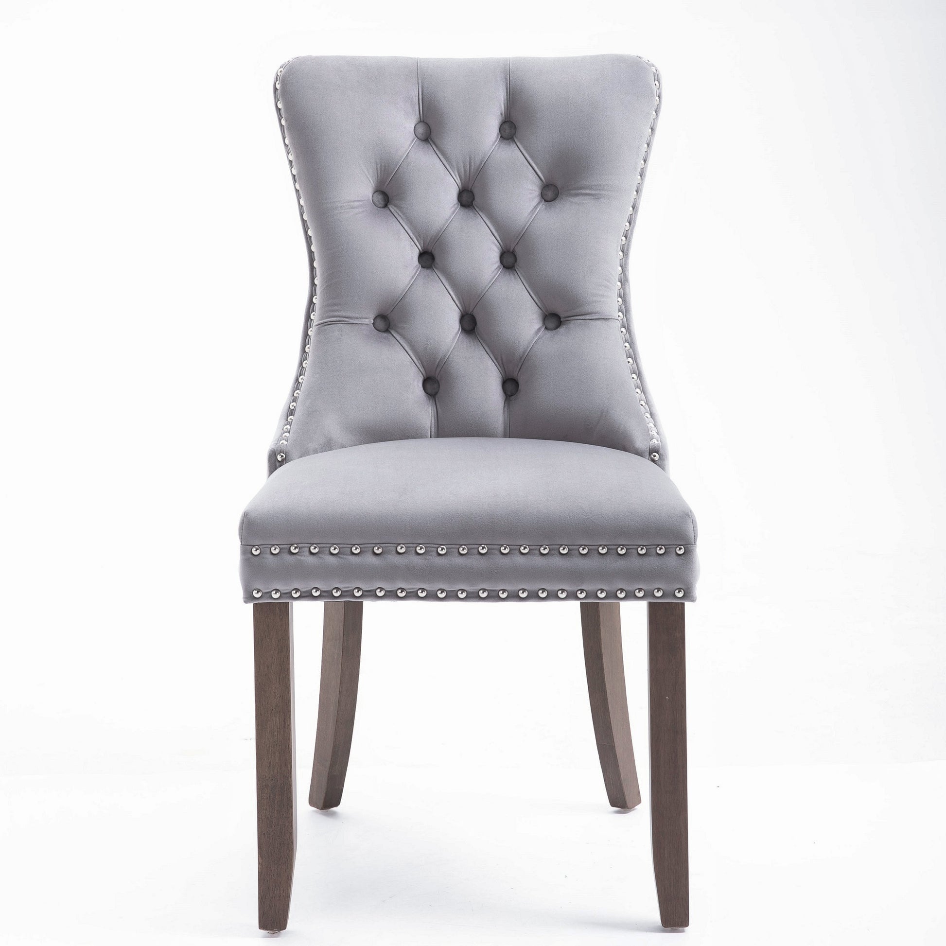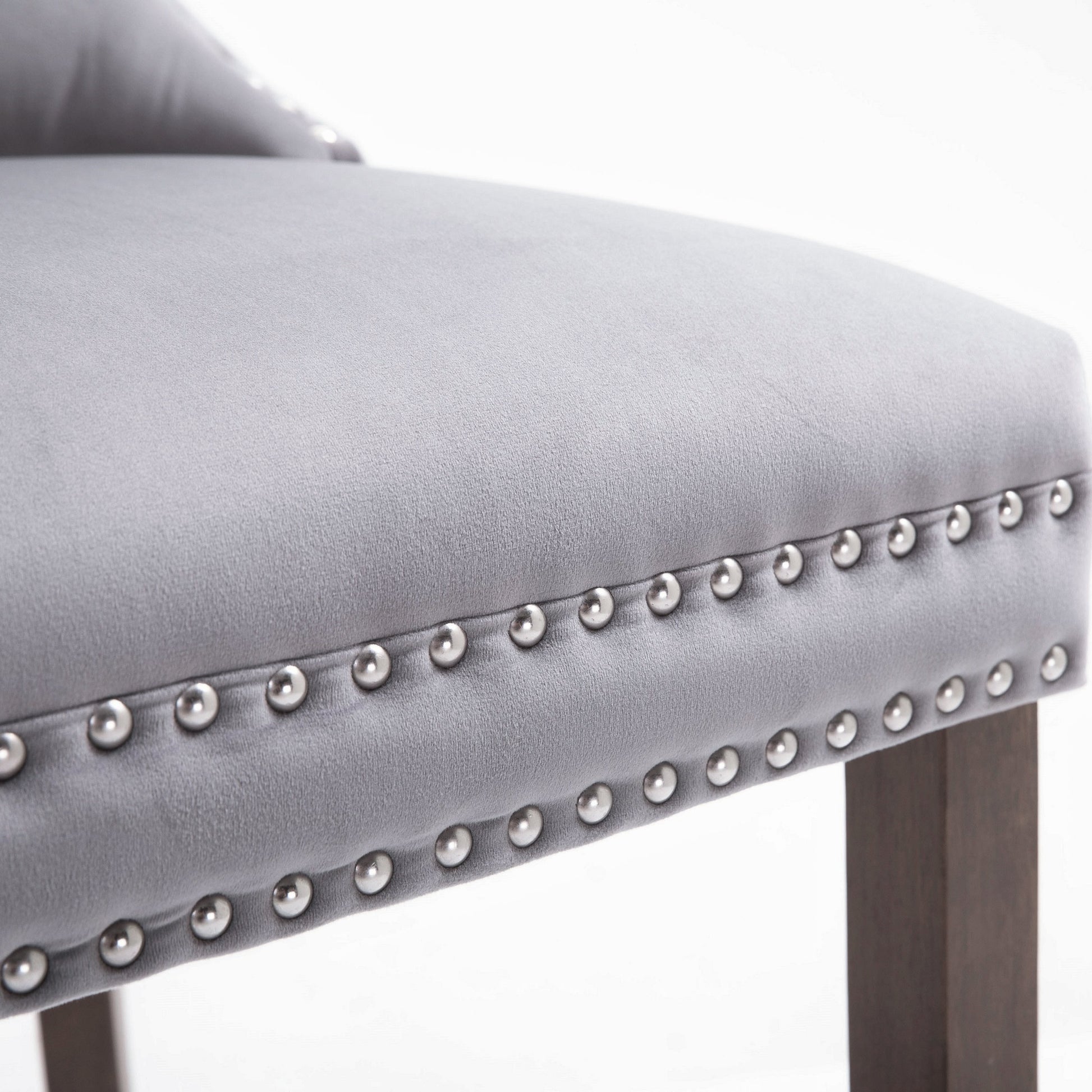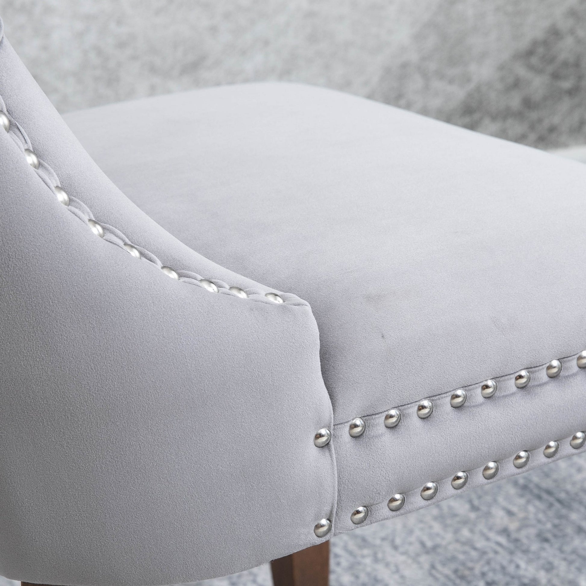 2 PCS High-end Tufted Solid Wood Upholstered Dining Chair with Nail-head Trim