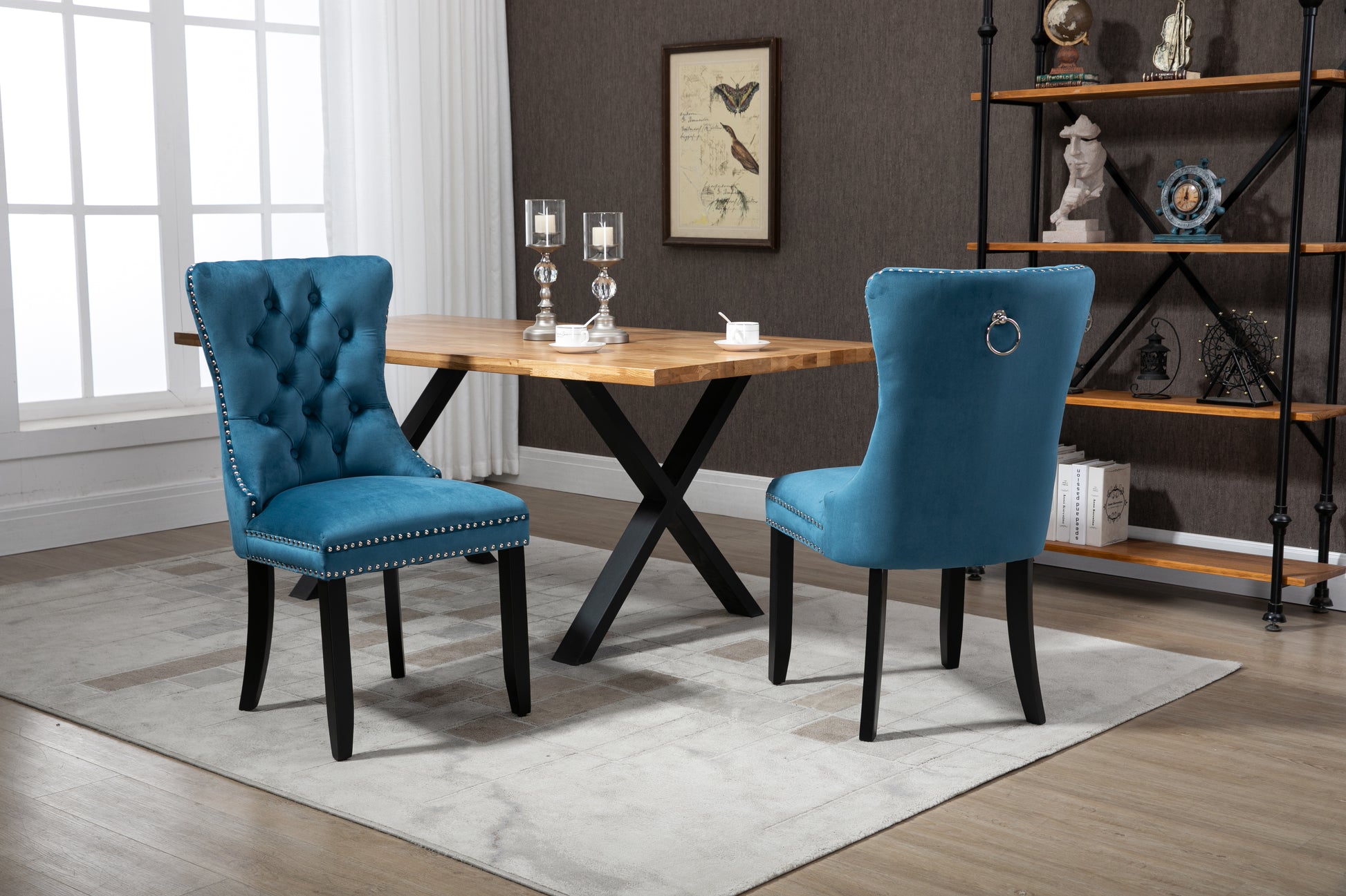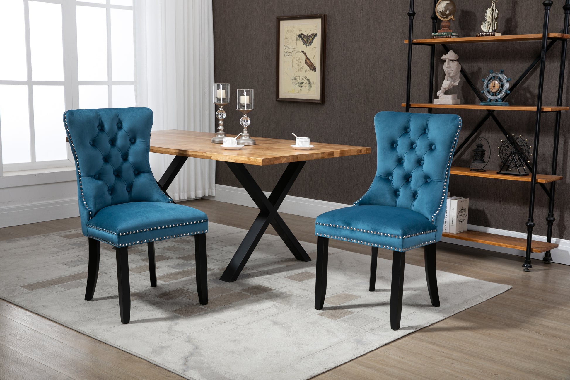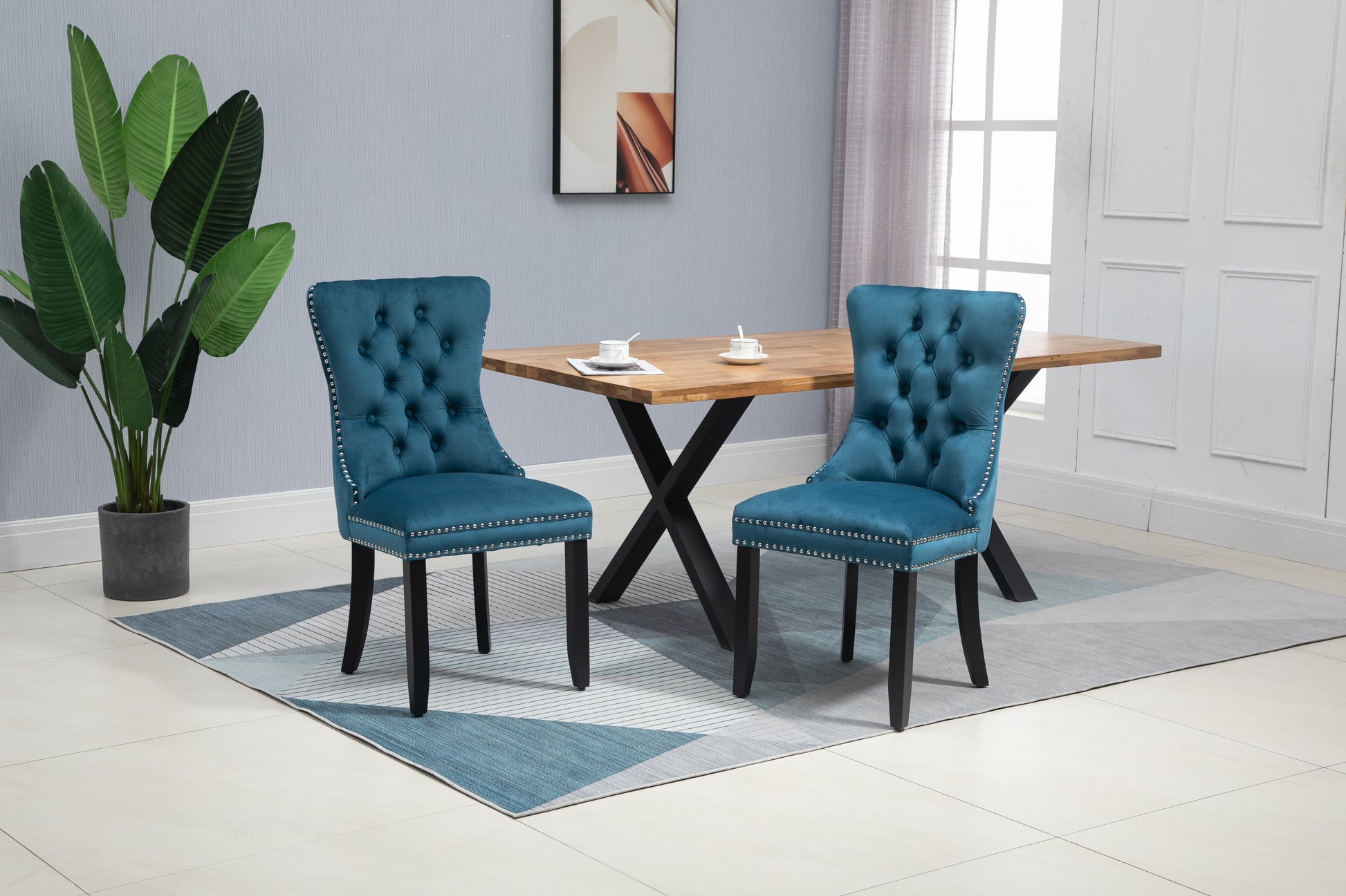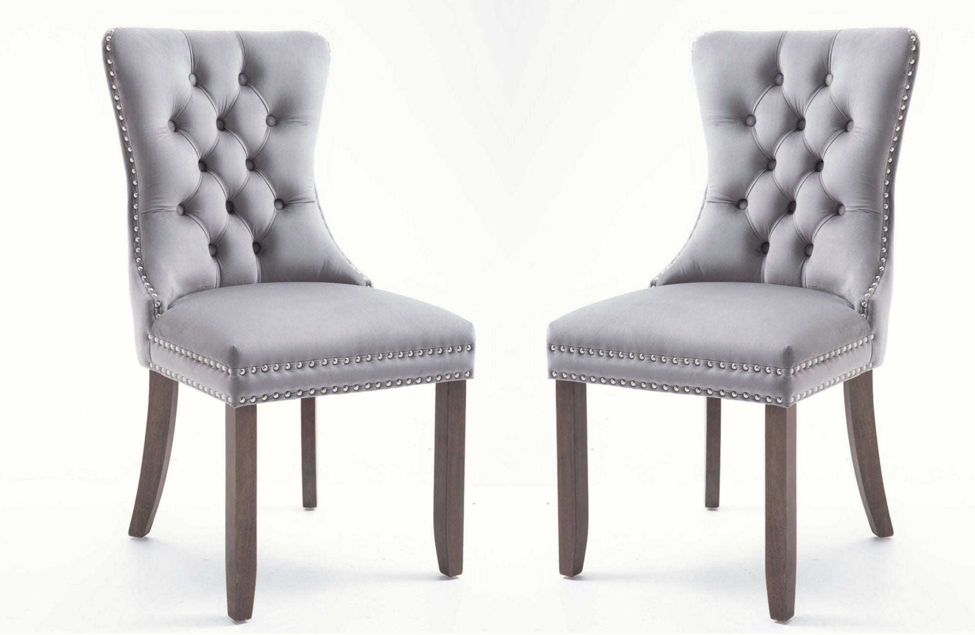 2 PCS High-end Tufted Solid Wood Upholstered Dining Chair with Nail-head Trim