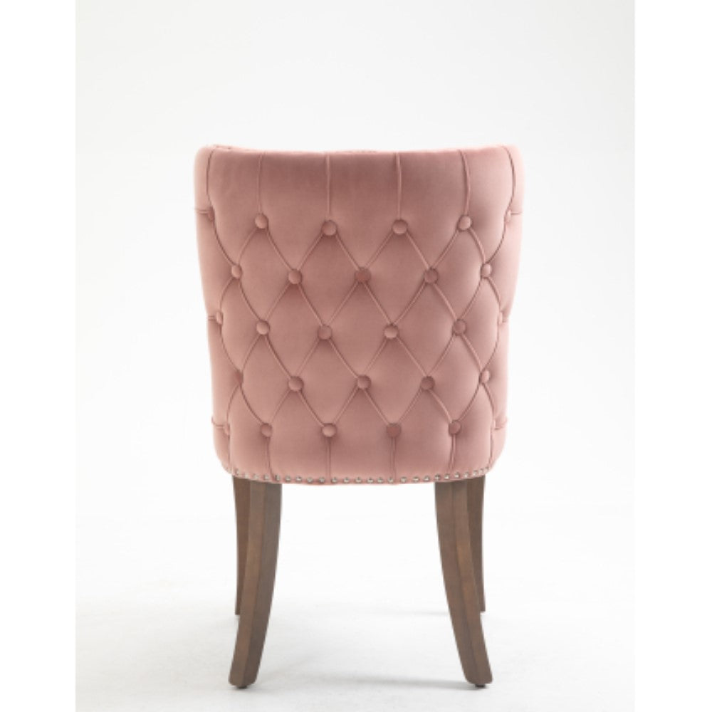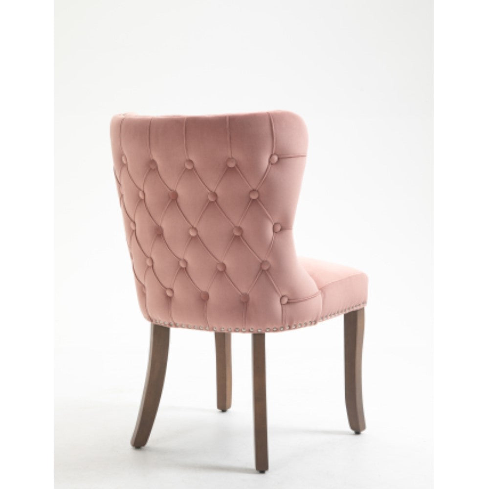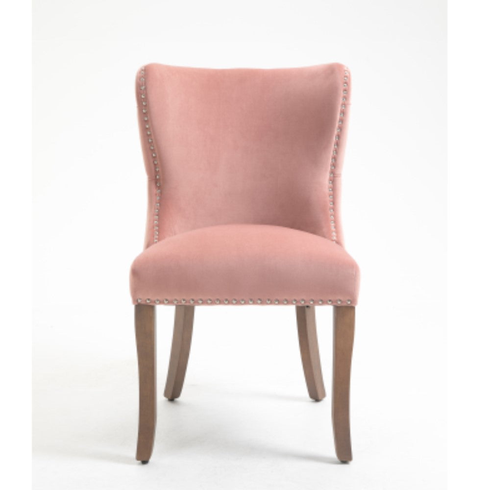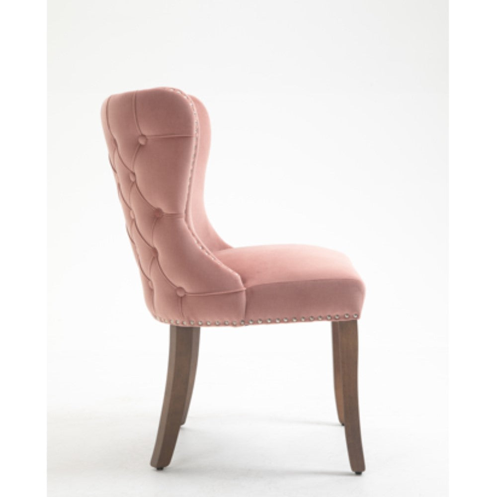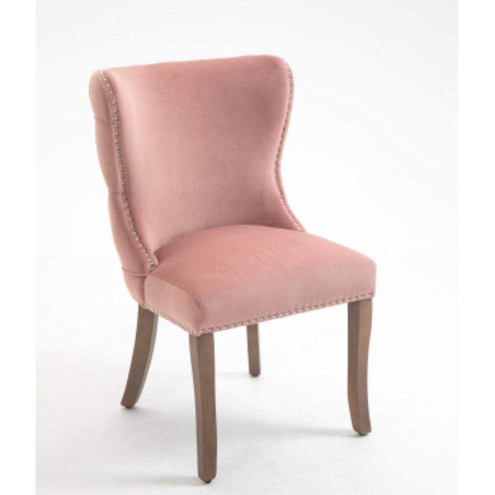 2 PCS Pink Upholstered Wing-Back Dining Chair with Back-stitching Nail-head Trim and Solid Wood Legs