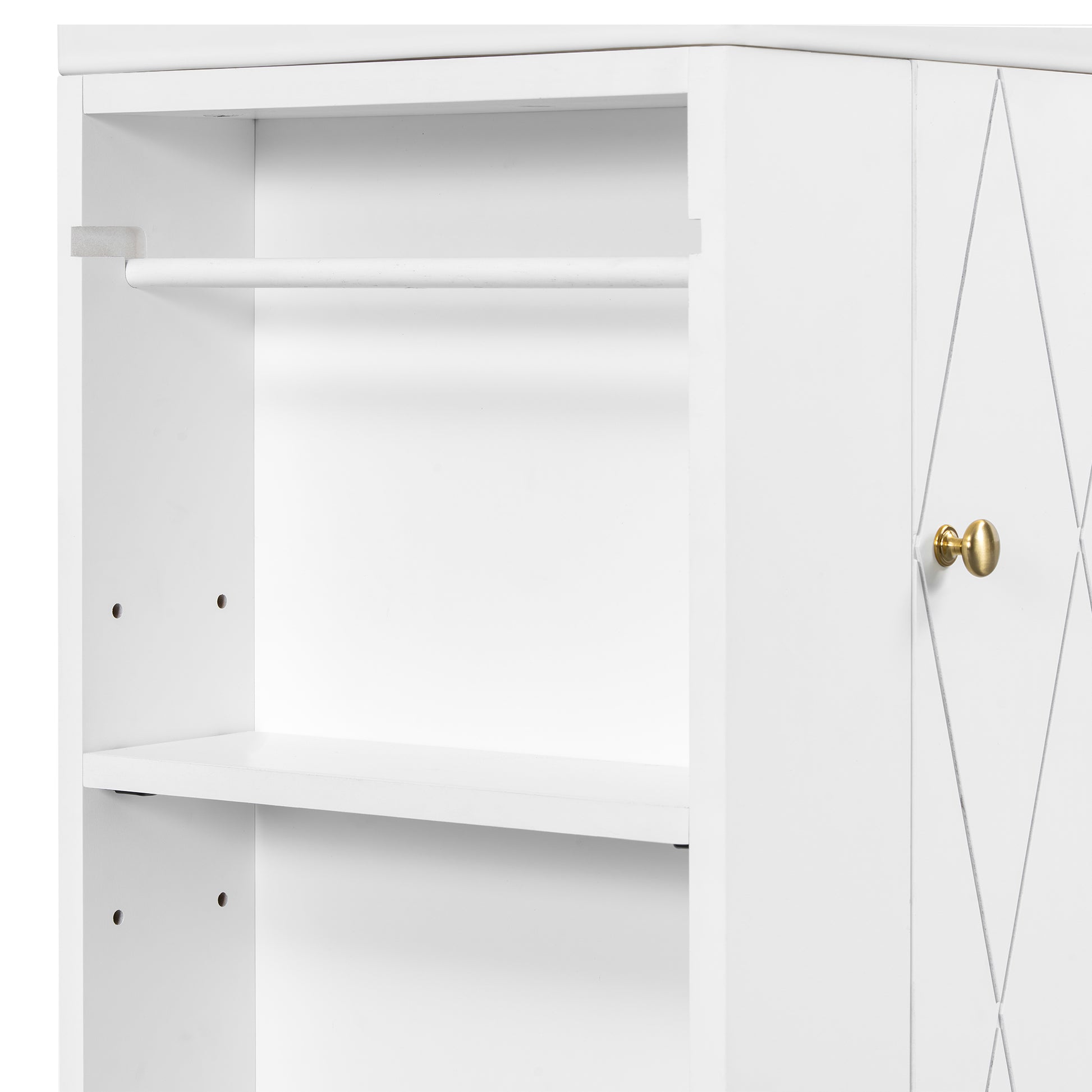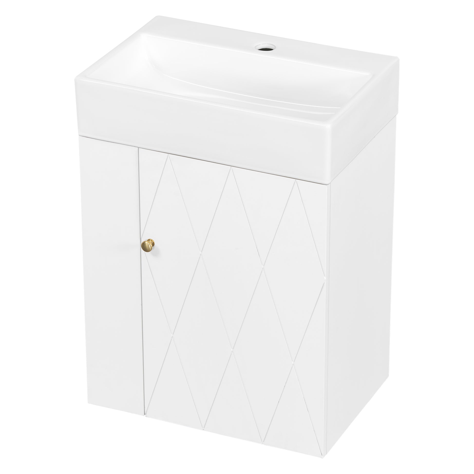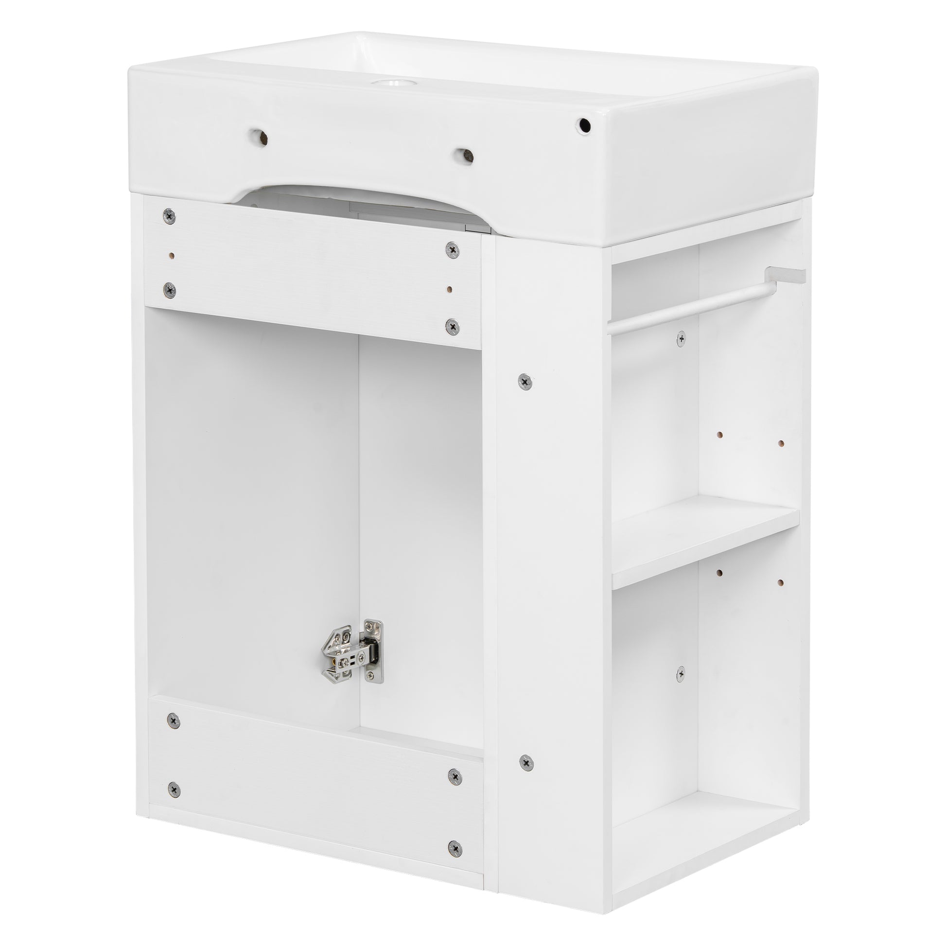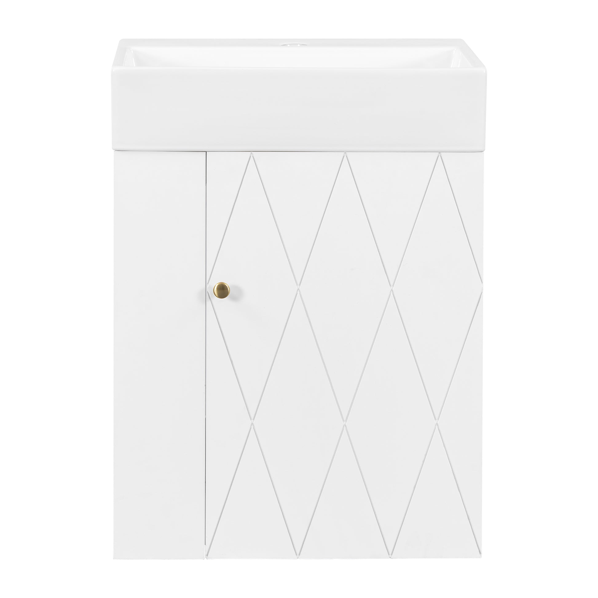 20 Inch Bathroom Vanity with Ceramic Sink Diamond Pattern Door Gold Handle Side Shelves and Towel Bar White