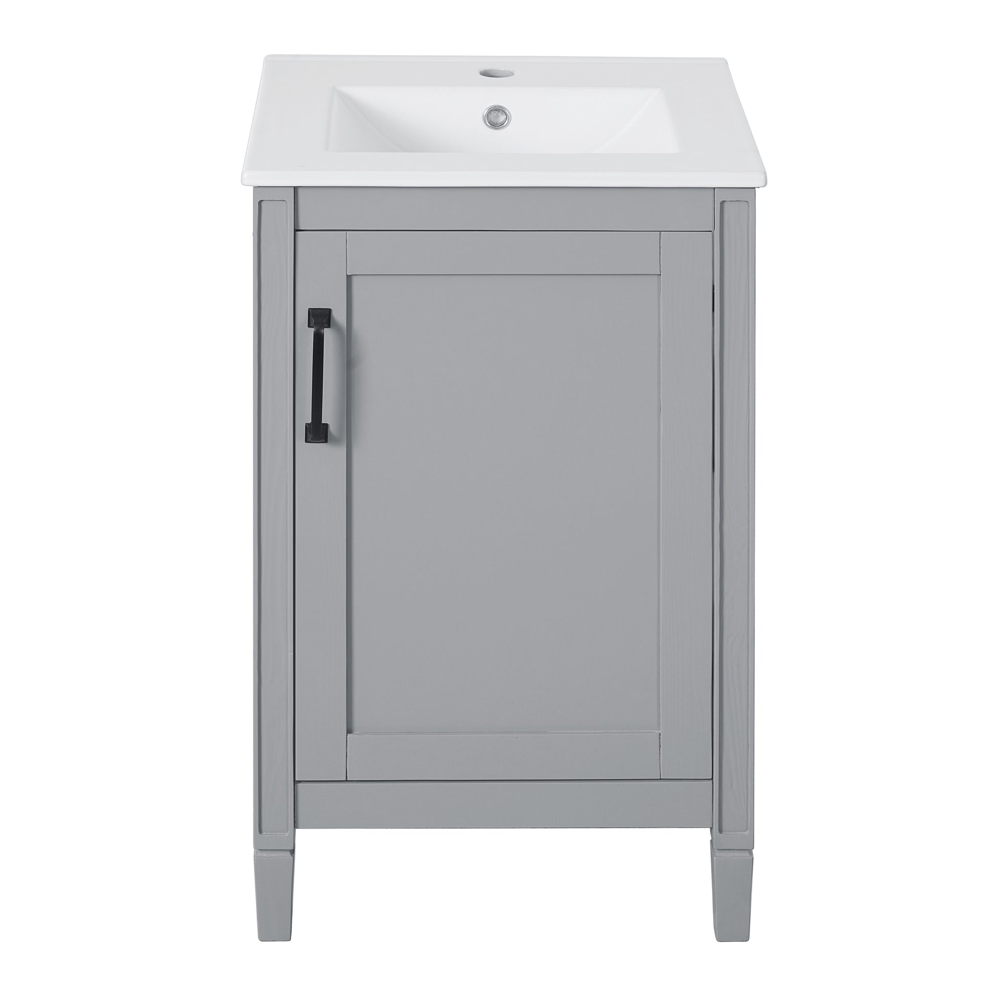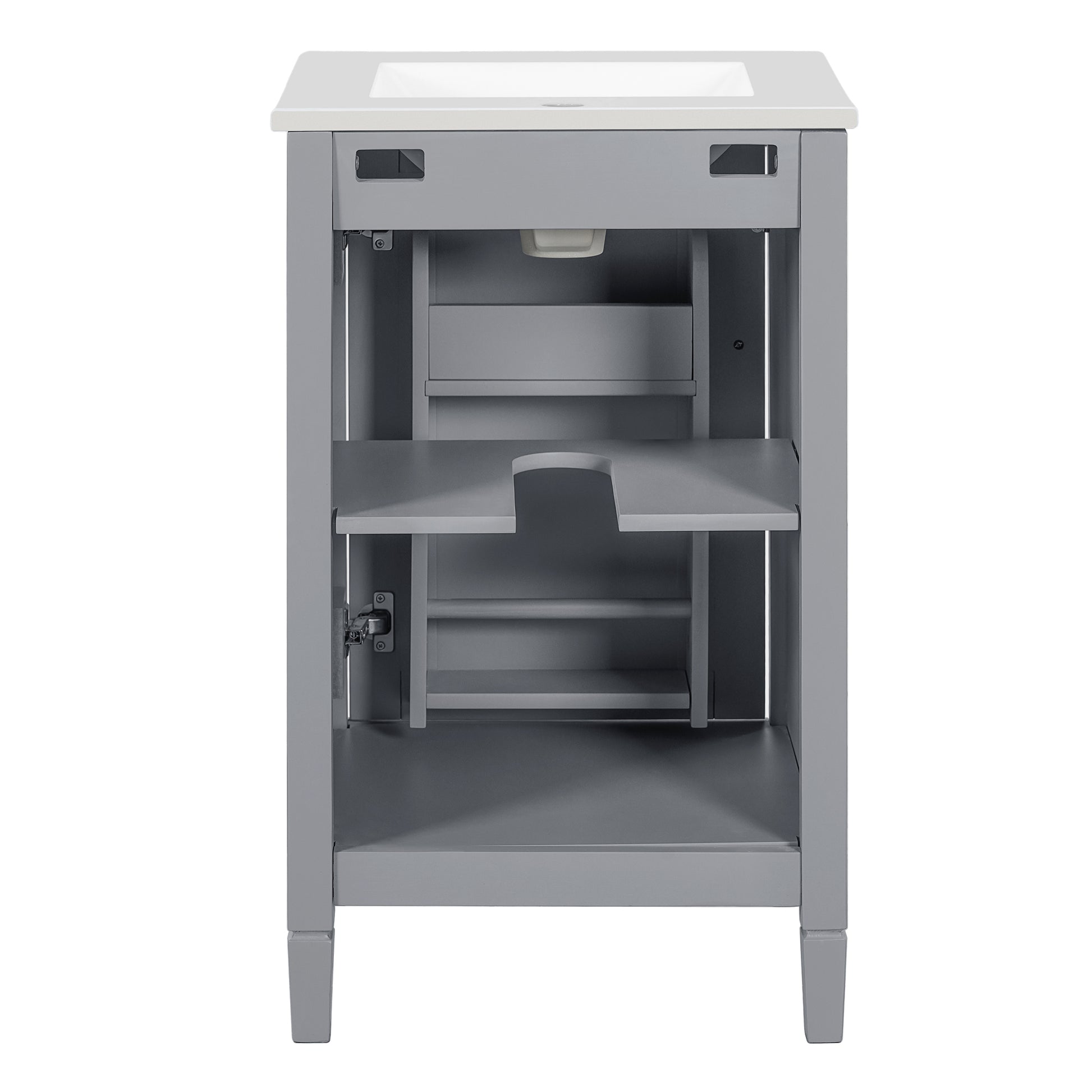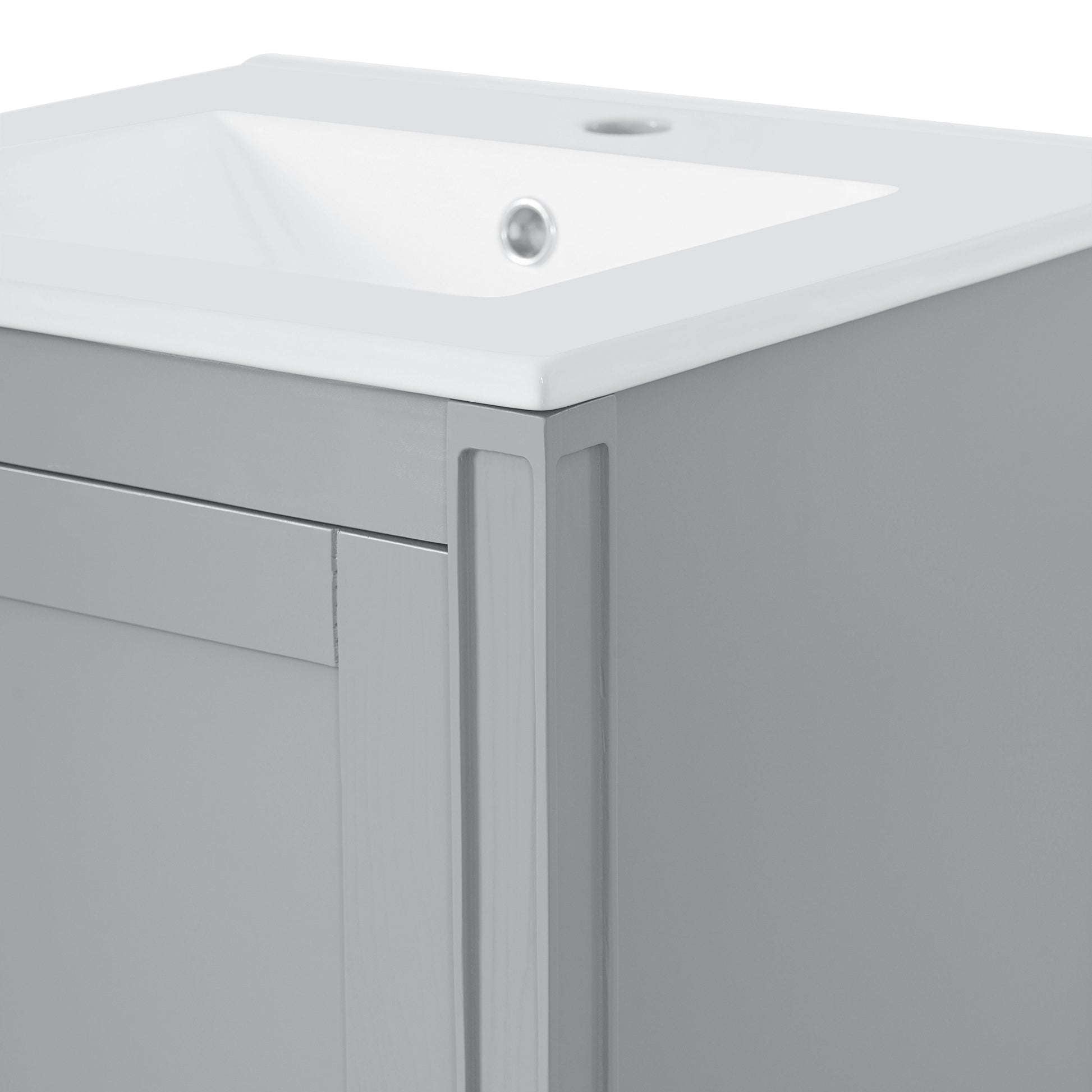 20 Inch Gray Bathroom Vanity with Ceramic Sink Soft Close Door Adjustable U Shaped Shelf and Door Storage Rack