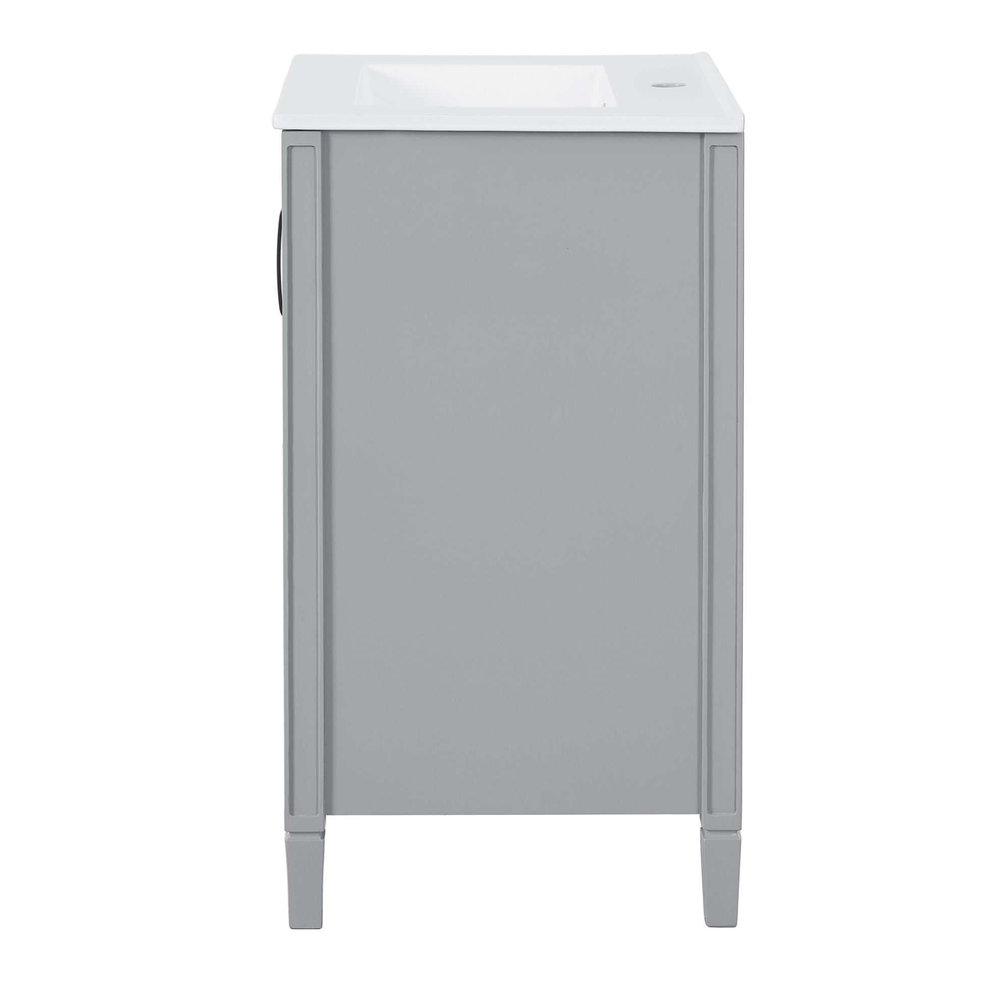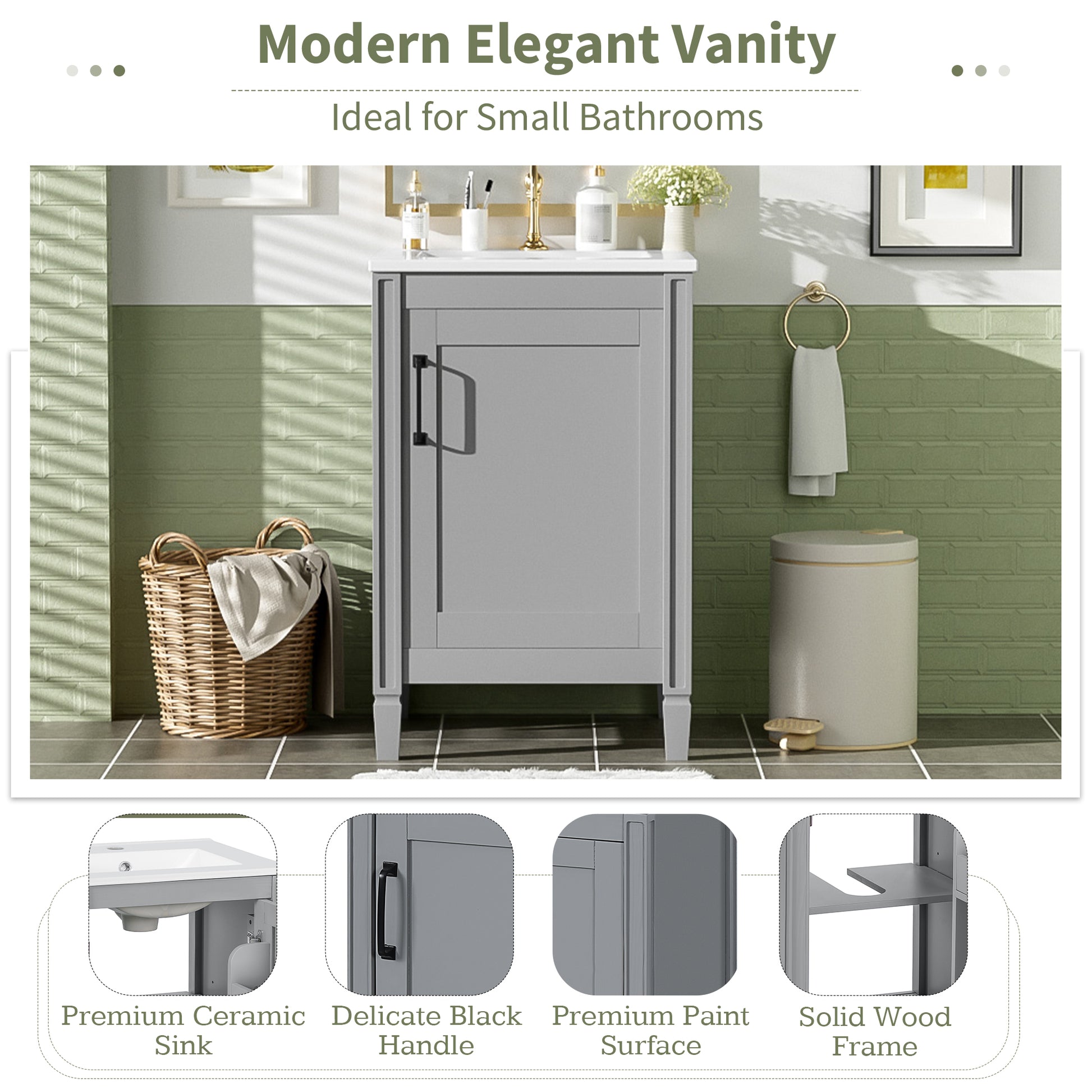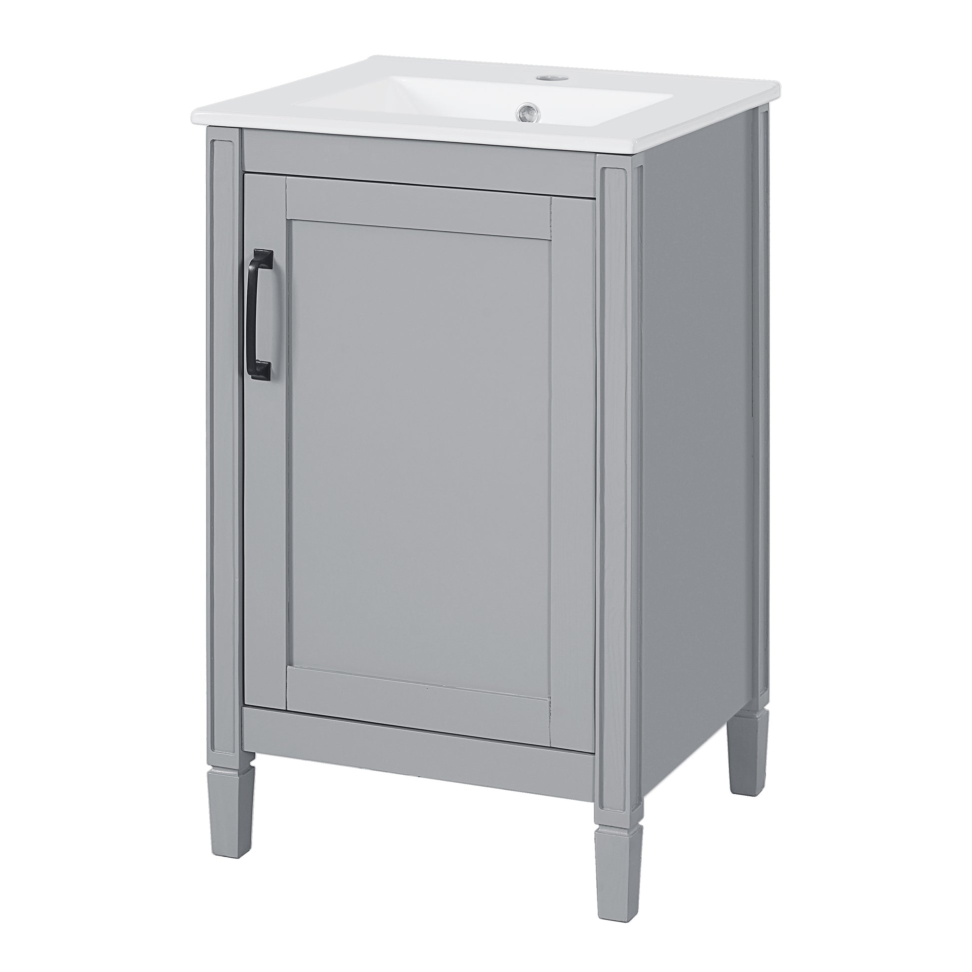 20 Inch Gray Bathroom Vanity with Ceramic Sink Soft Close Door Adjustable U Shaped Shelf and Door Storage Rack