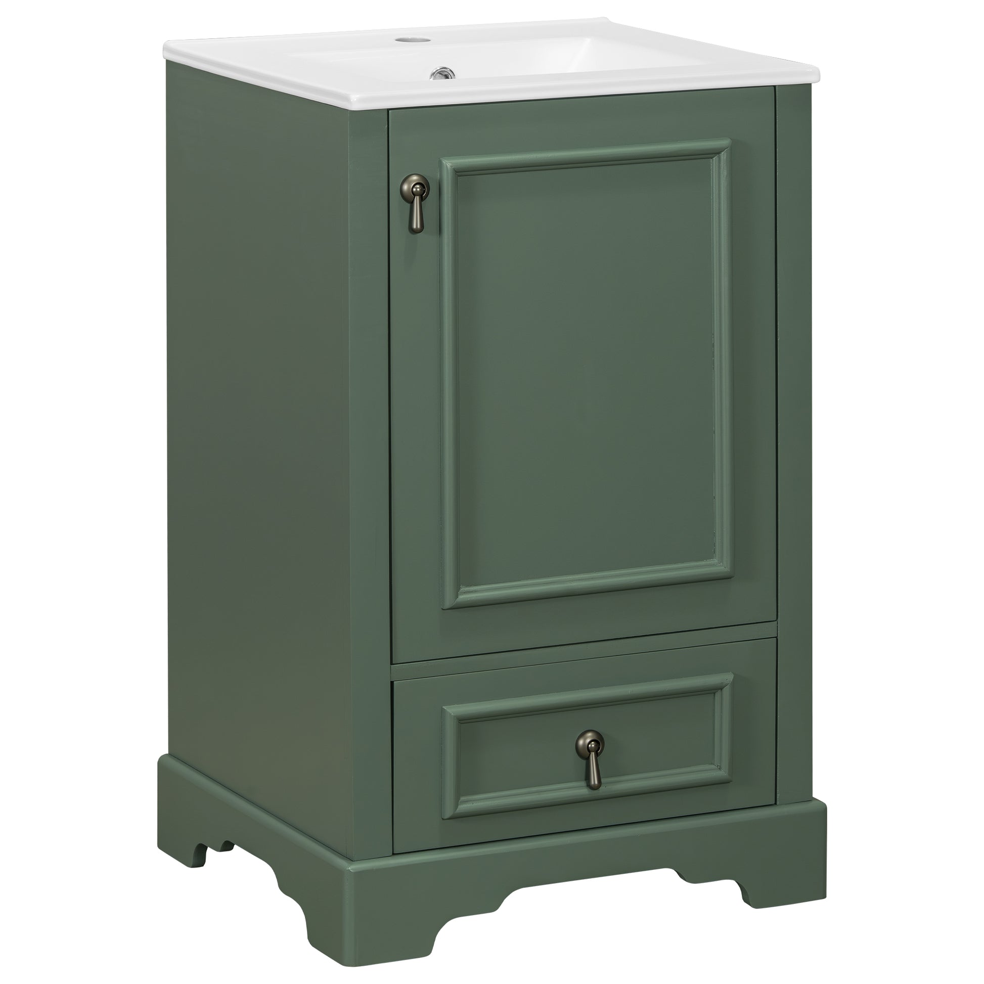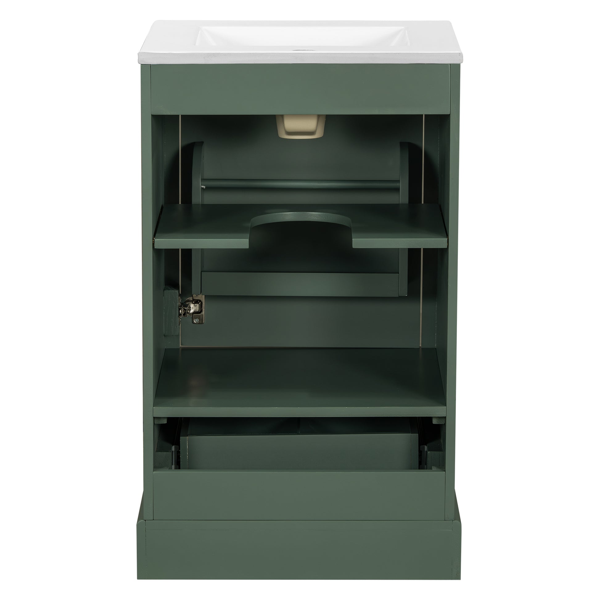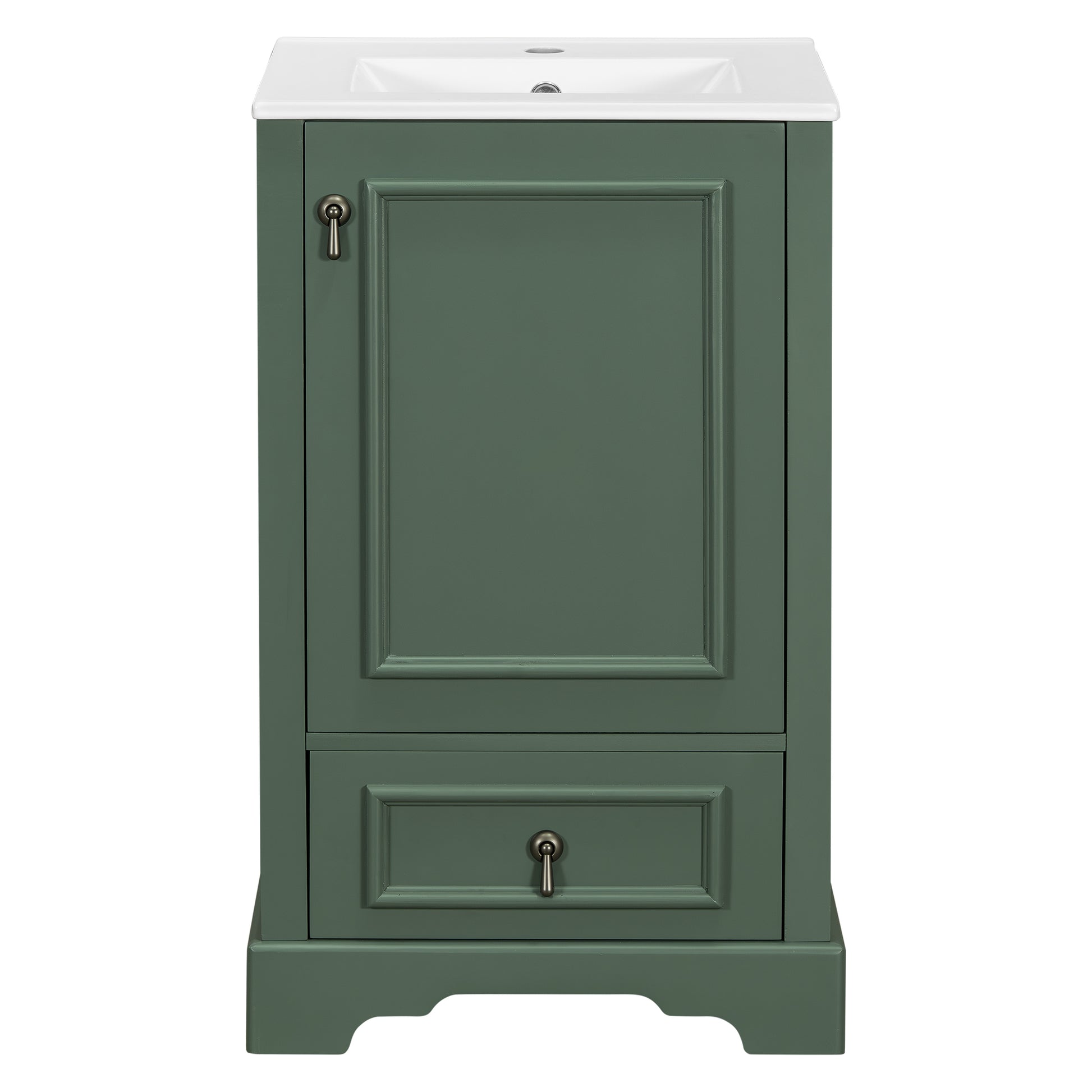 20 Inch Green Bathroom Vanity with Ceramic Sink, Soft Close Door, Adjustable U-Shaped Shelf, Compartment Drawer, Door Storage Rack