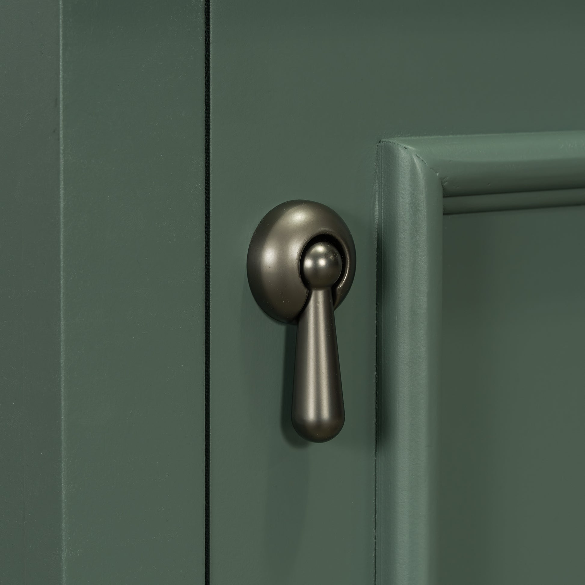 This 20-inch green bathroom vanity is a stylish, space-saving solution for compact bathrooms. Crafted with a solid wood frame and MDF panels, it features a durable ceramic sink that is scratch-resistant, easy to clean, and equipped with overflow protection. Designed with a soft-close door, adjustable U-shaped shelf, compartment drawer, and door storage rack, it offers smart and organized storage to keep daily essentials within easy reach.
