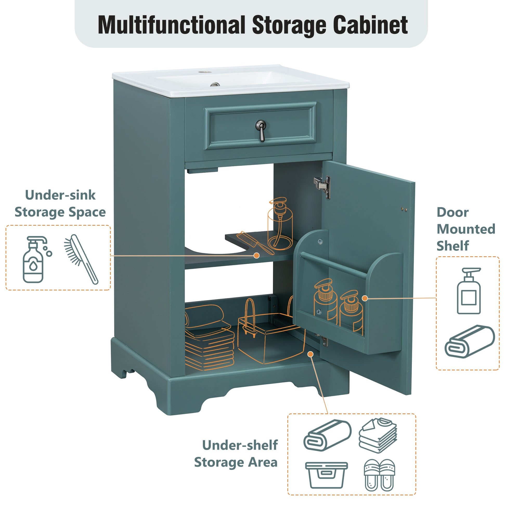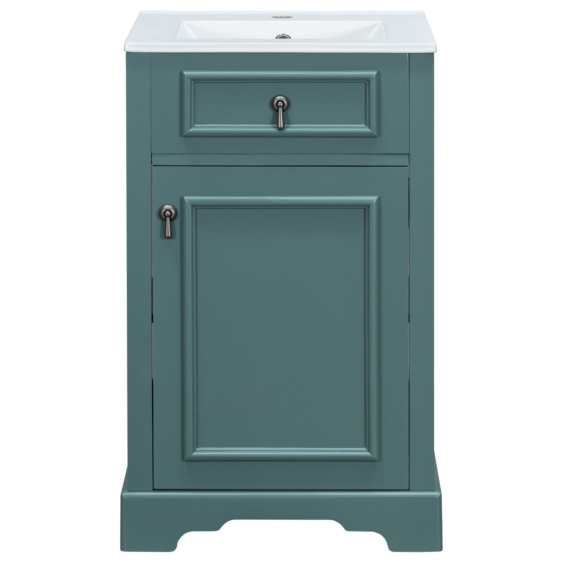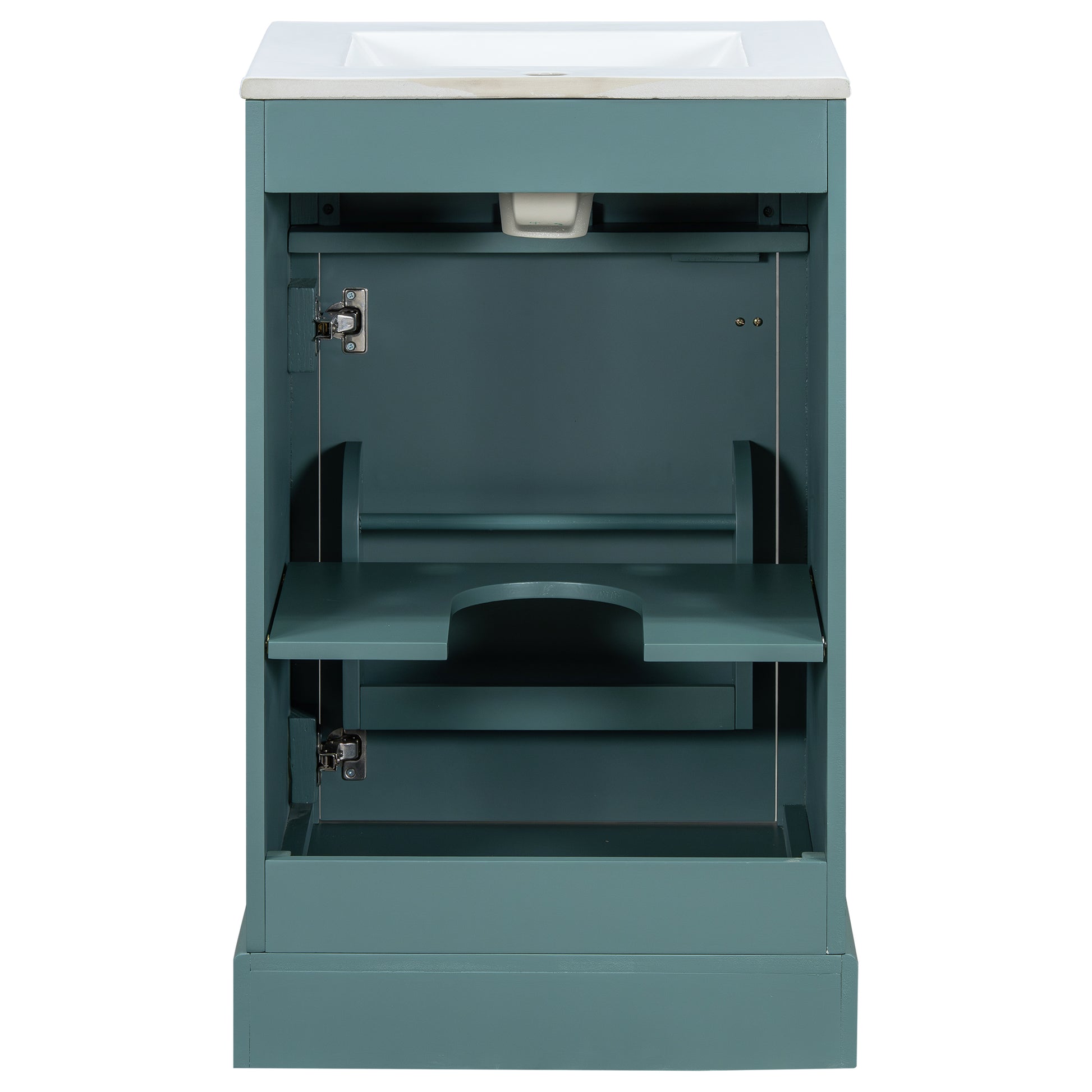 20 Inch Green Bathroom Vanity with Ceramic Sink Soft Close Door Adjustable U-Shaped Shelf Door Storage Rack MDF & Solid Wood