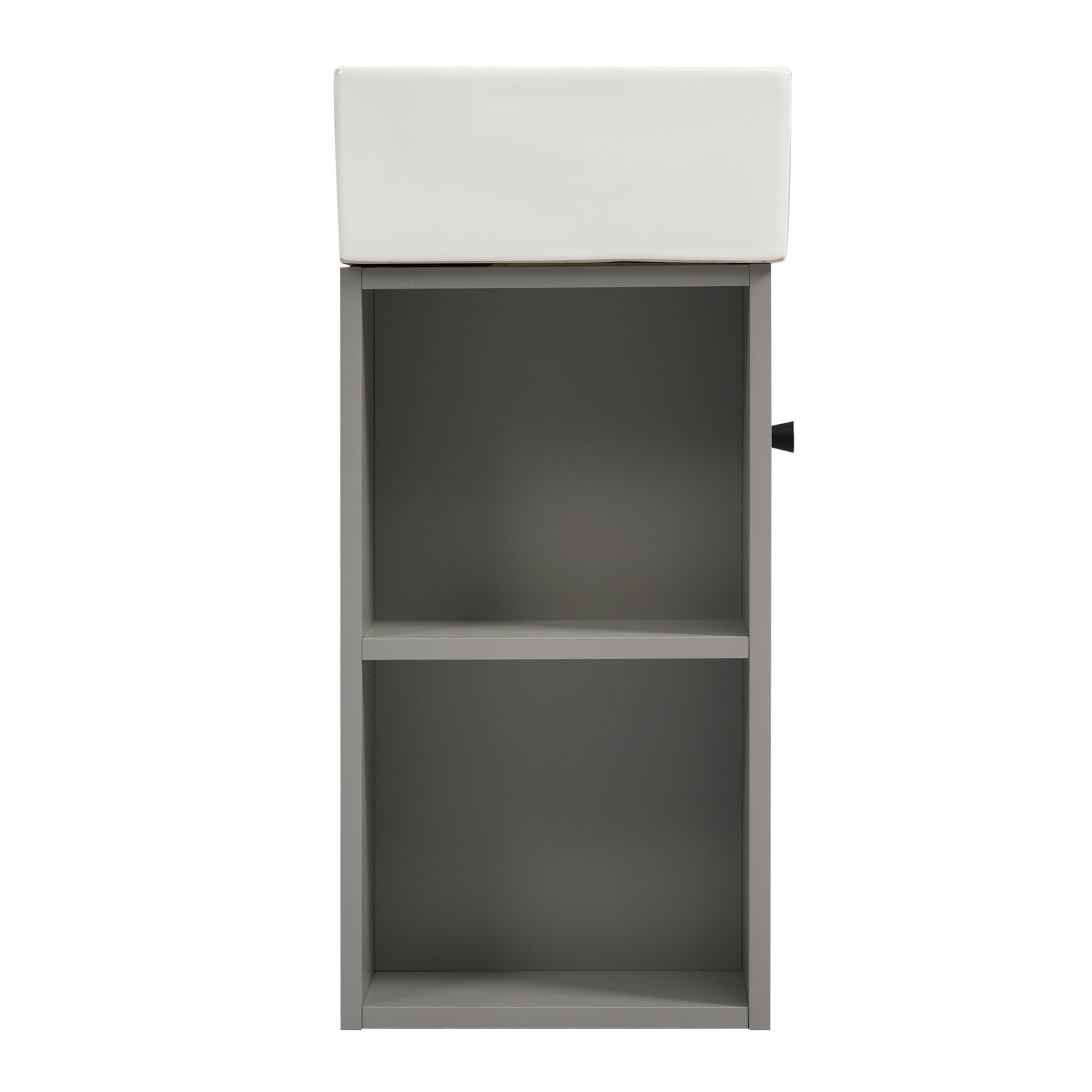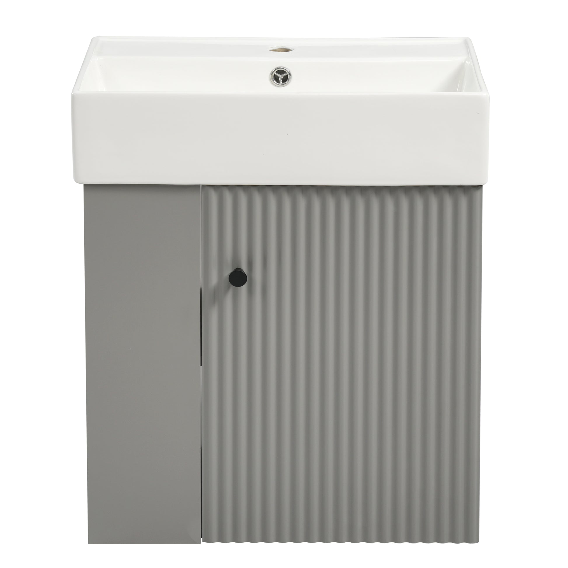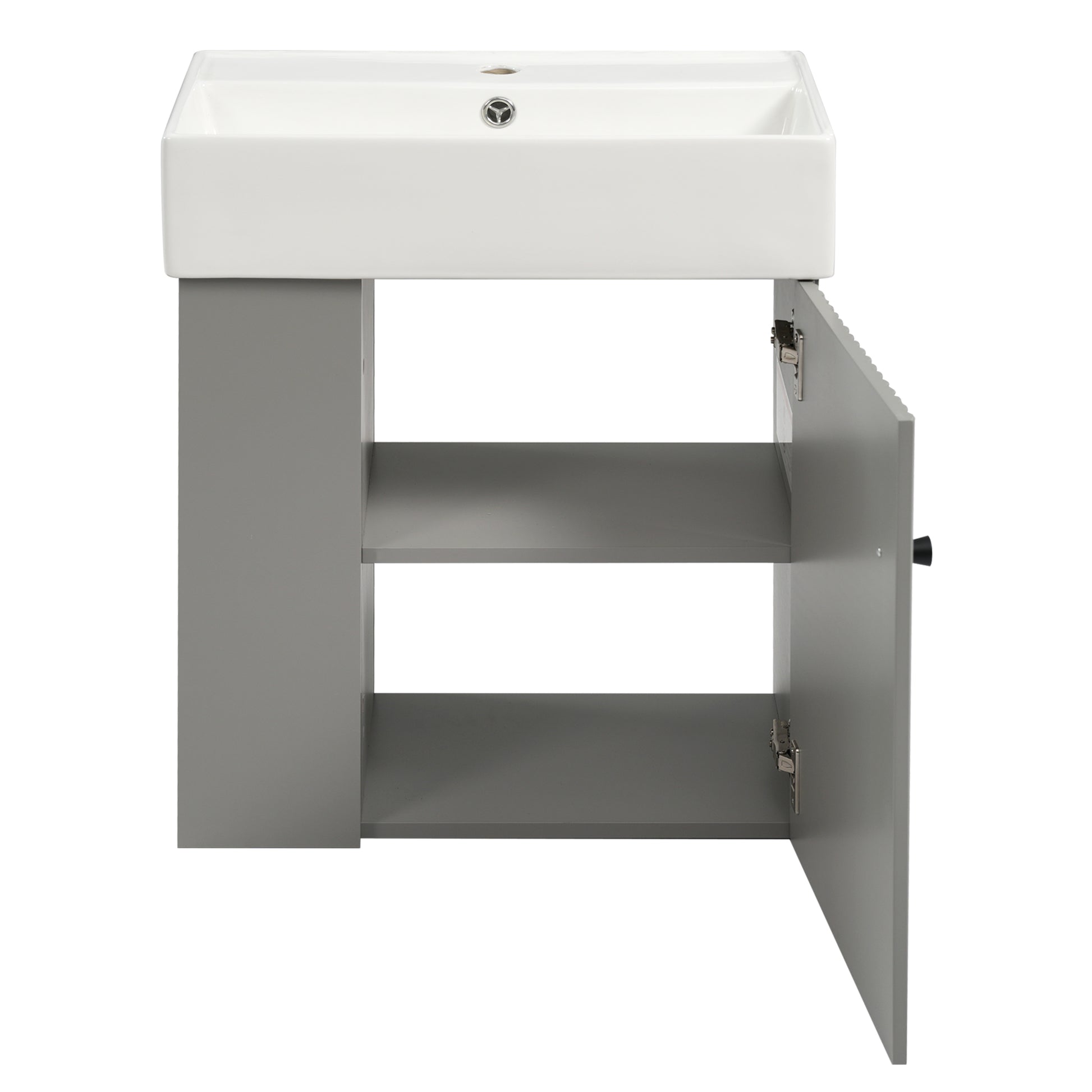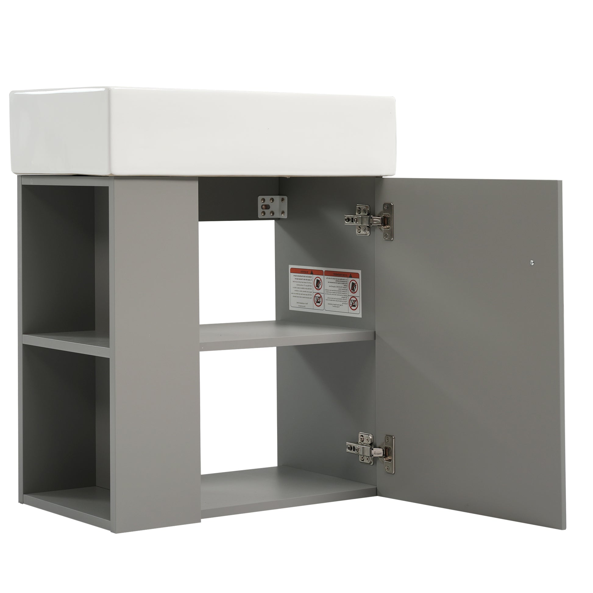 21.6 Inch Gray Modern Floating Bathroom Vanity with Ceramic Sink Left Side Storage Soft Close Door MDF Cabinet Wall Mounted