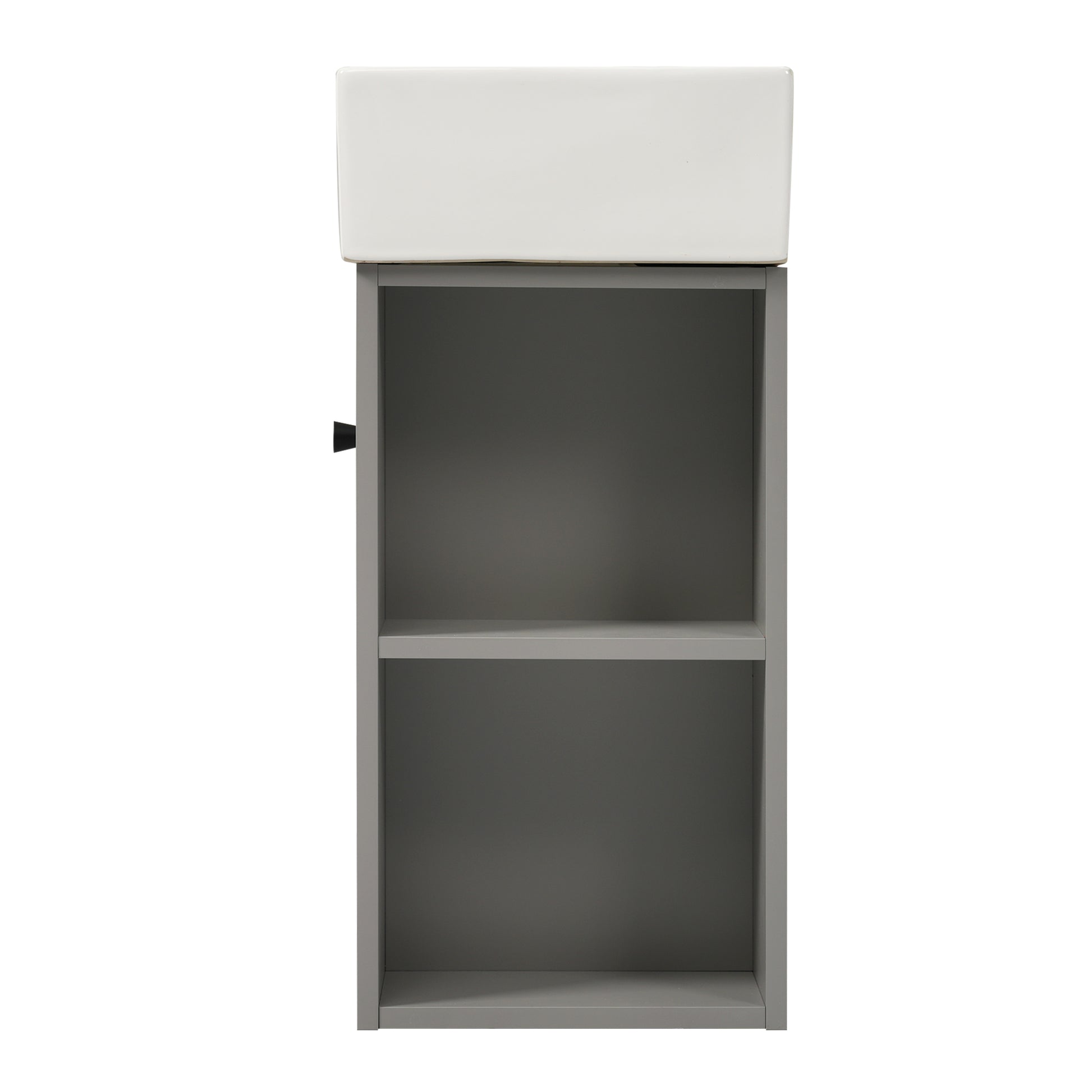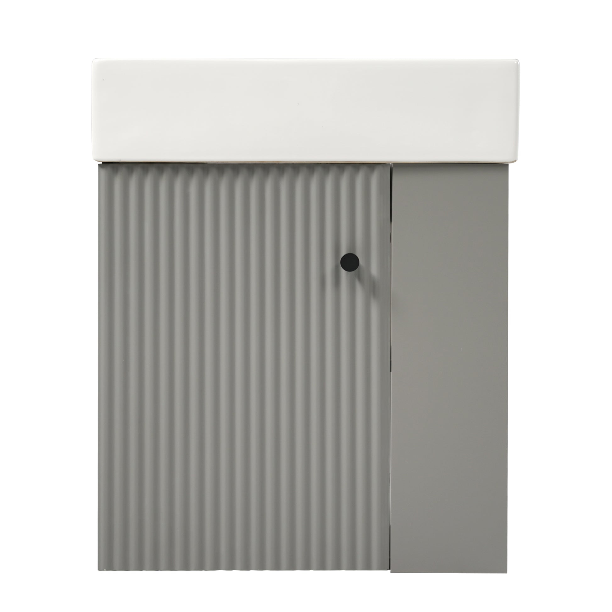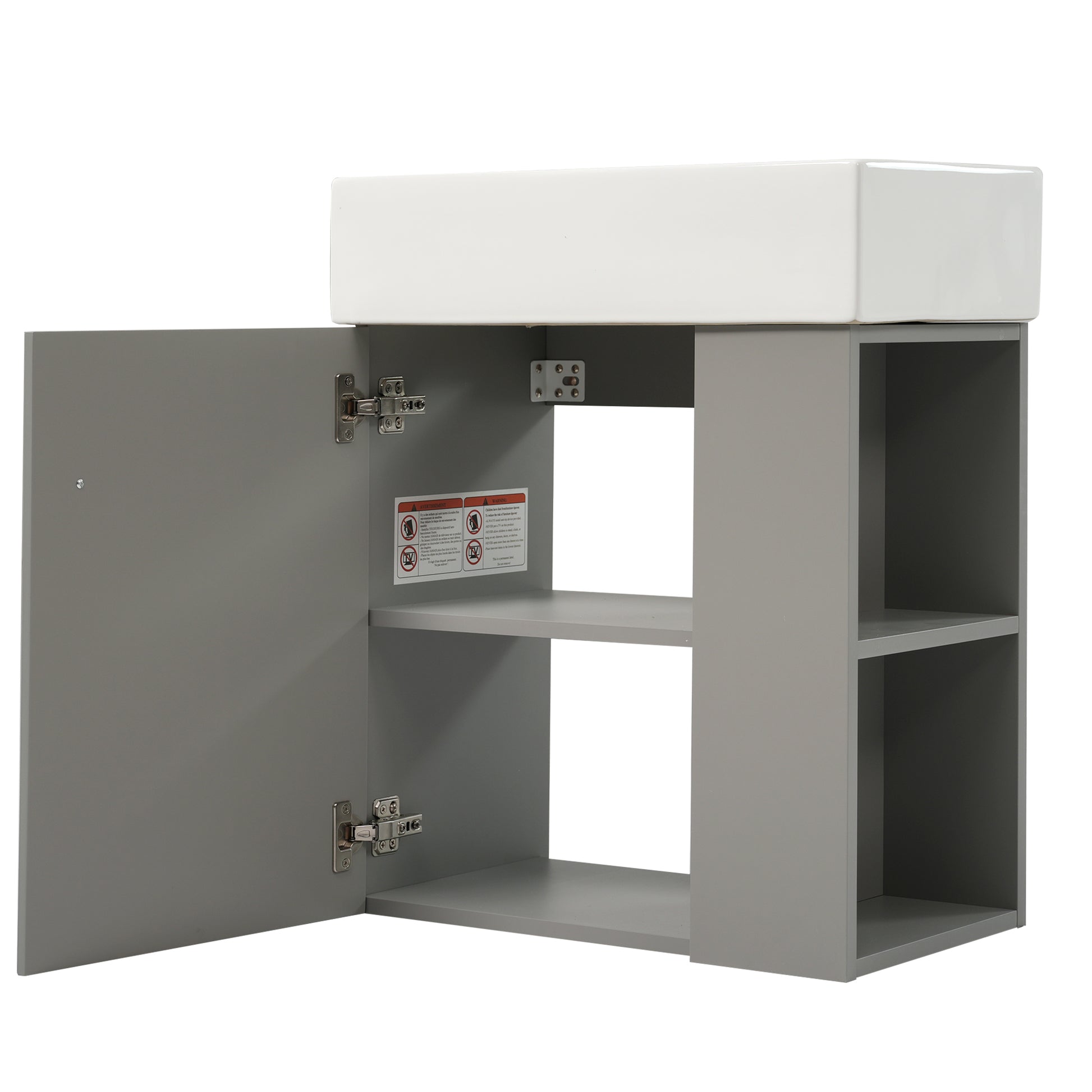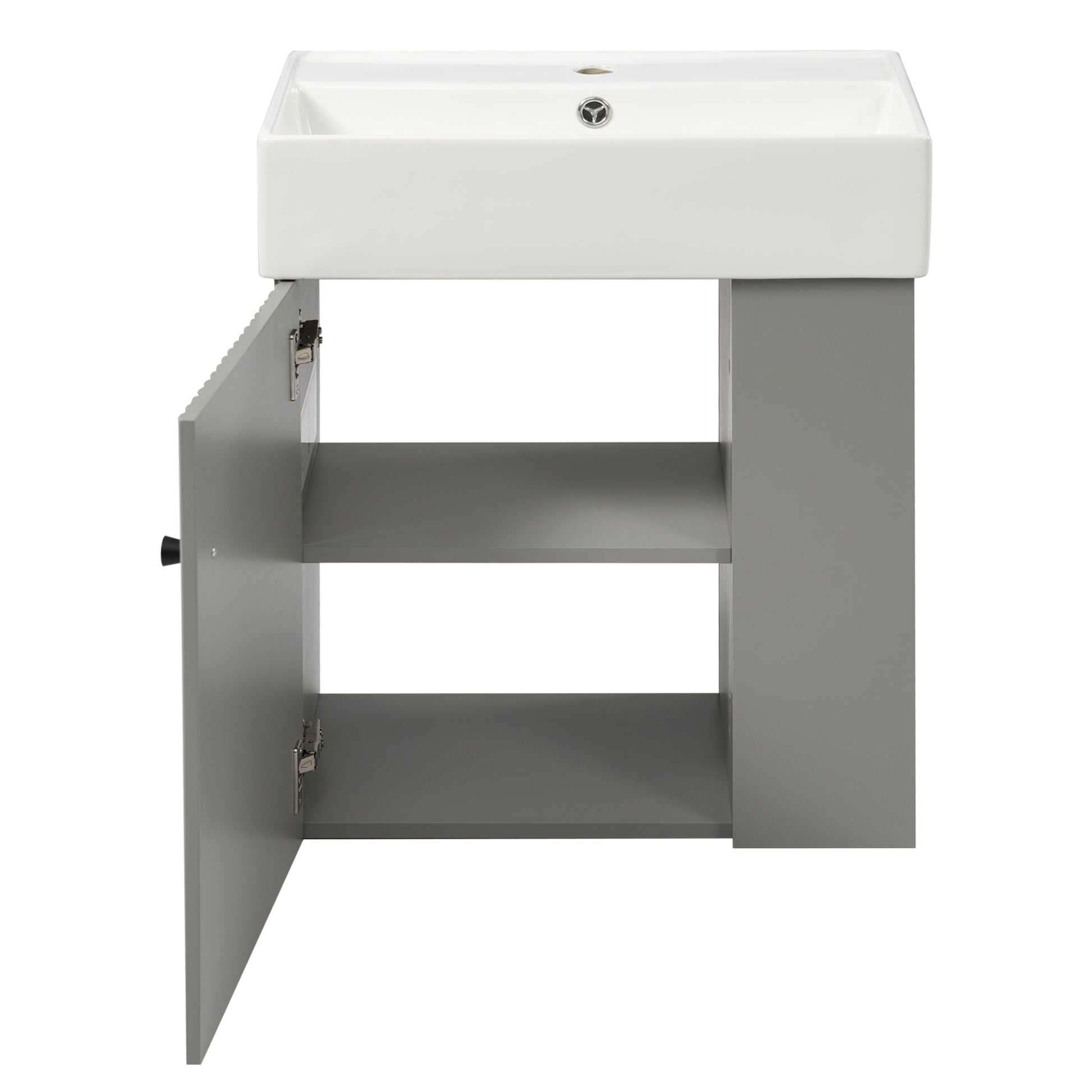 21.6 Inch Gray Modern Floating Bathroom Vanity with Ceramic Sink Right Side Storage Soft Close Door MDF Cabinet Wall Mounted