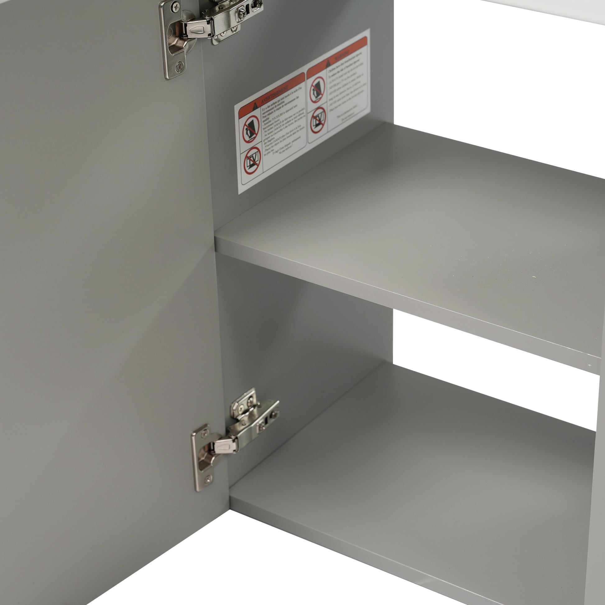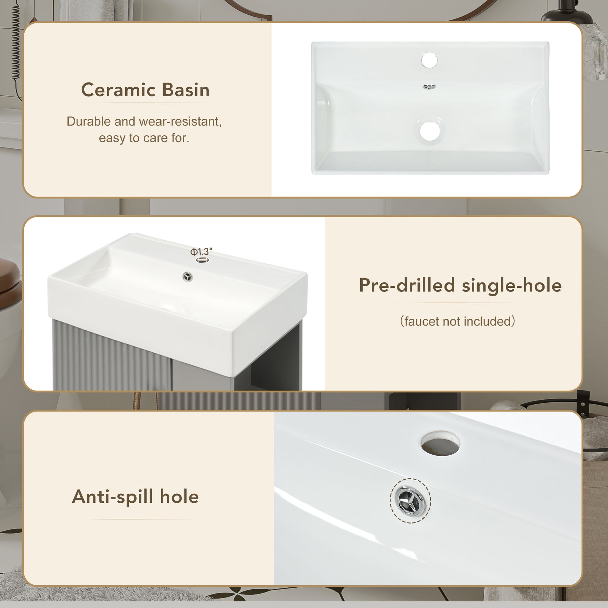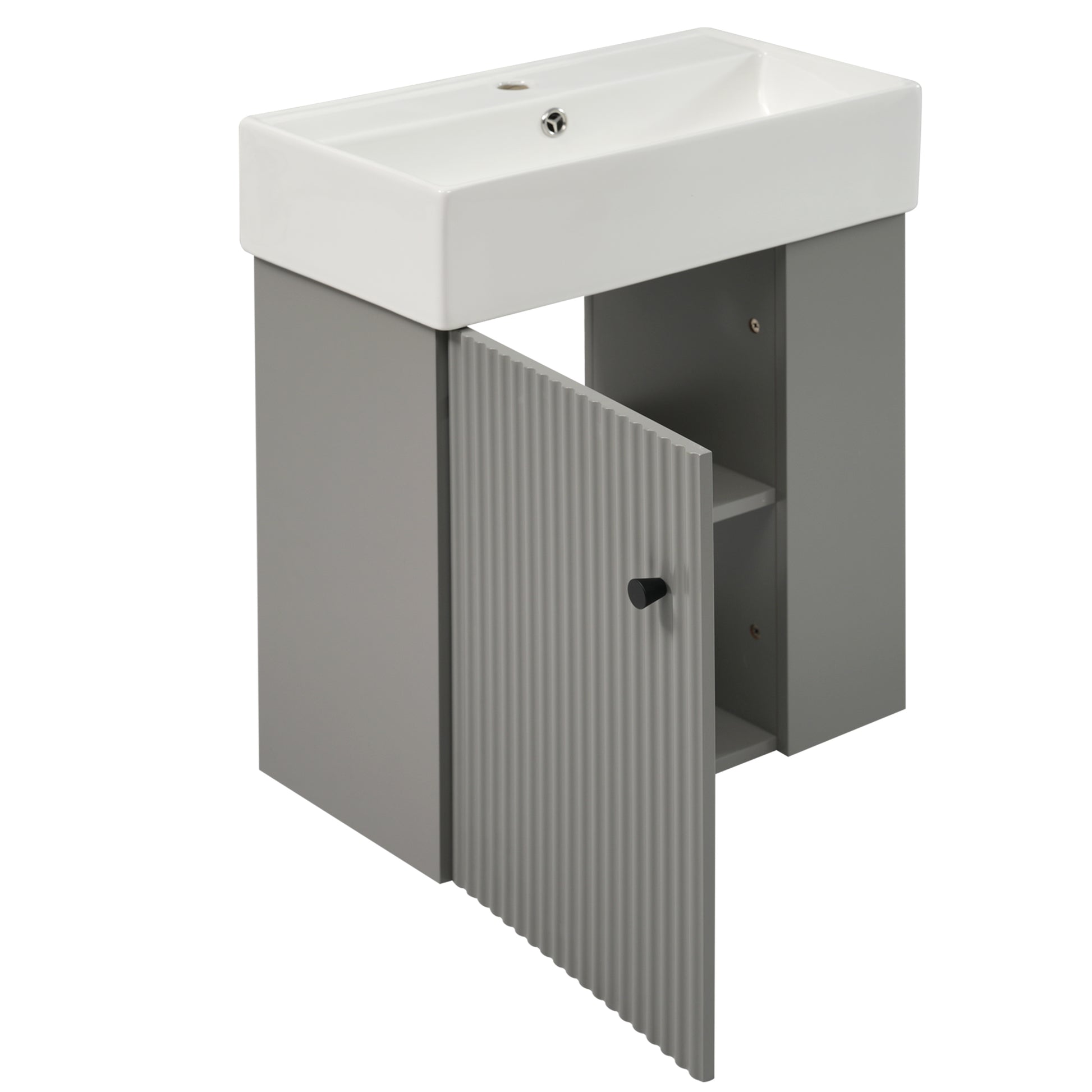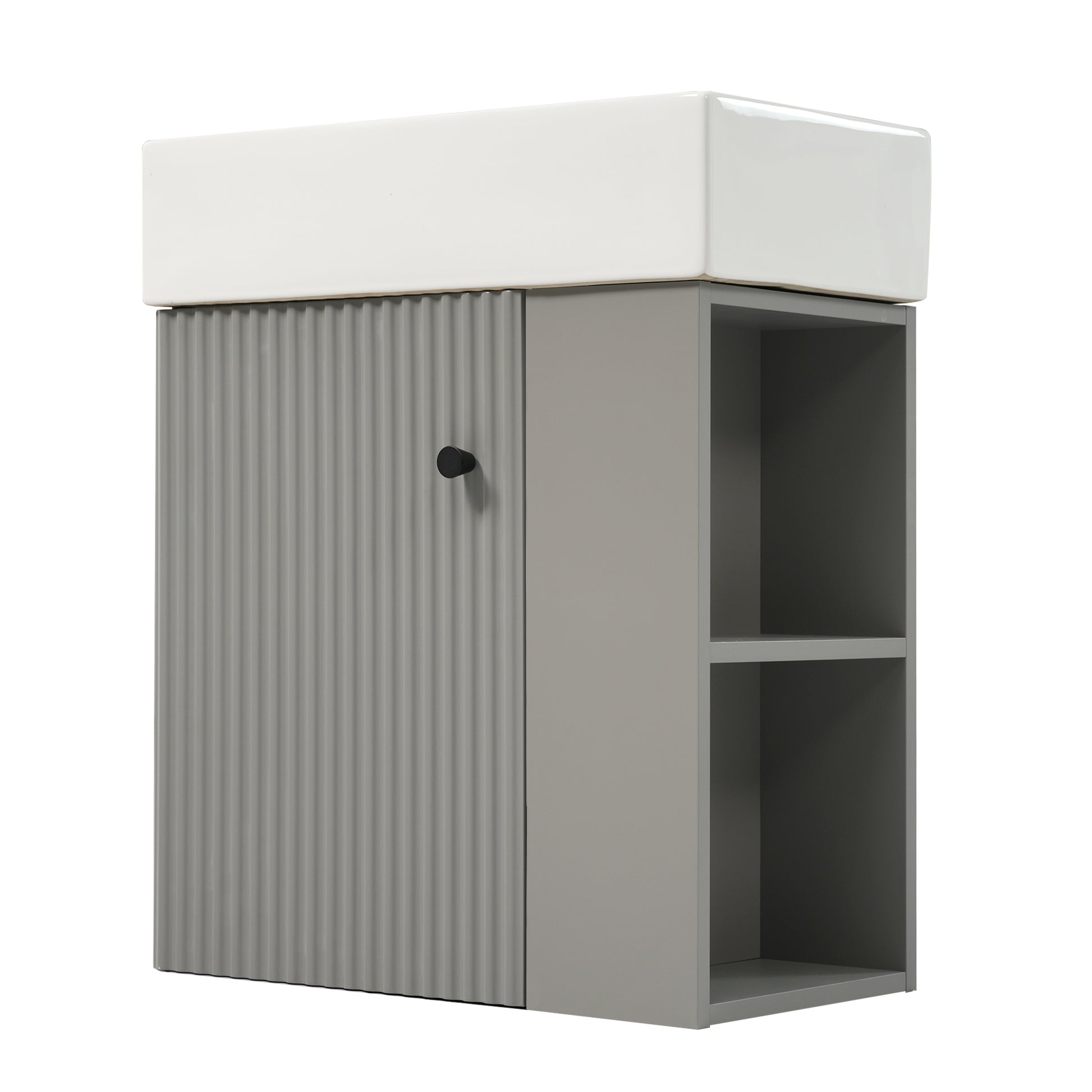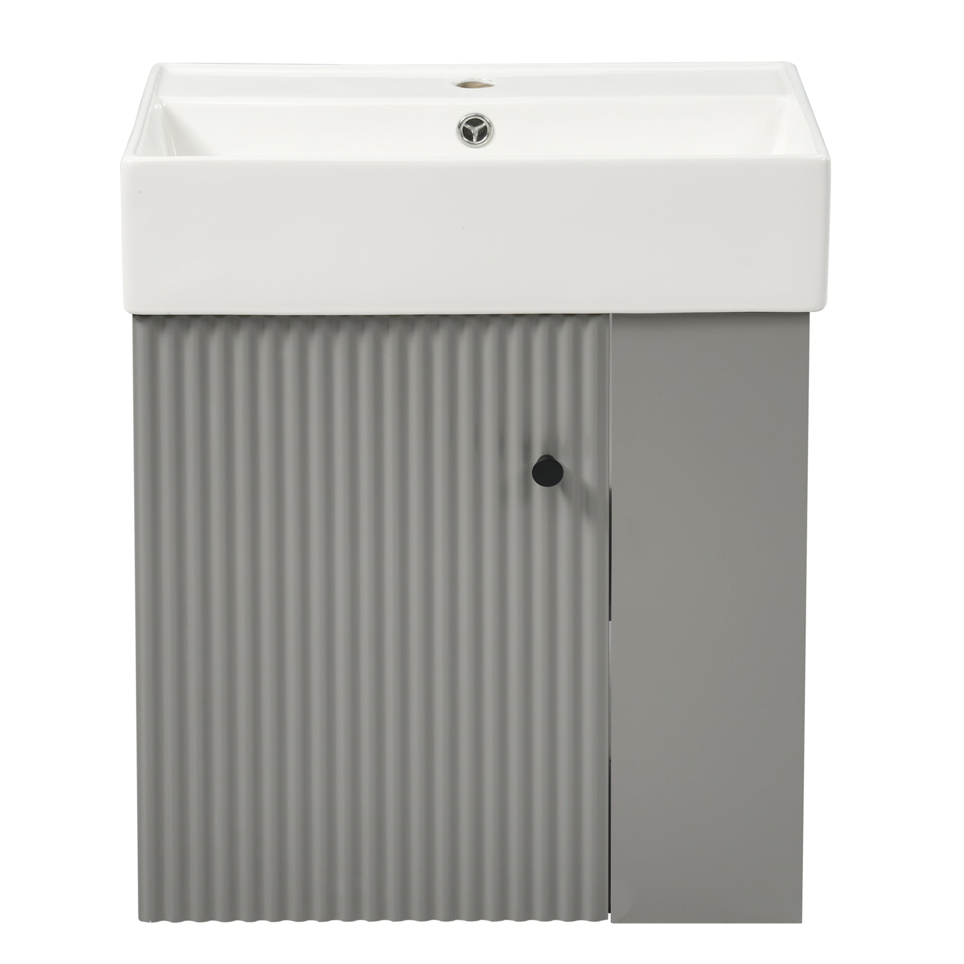 21.6 Inch Gray Modern Floating Bathroom Vanity with Ceramic Sink Right Side Storage Soft Close Door MDF Cabinet Wall Mounted