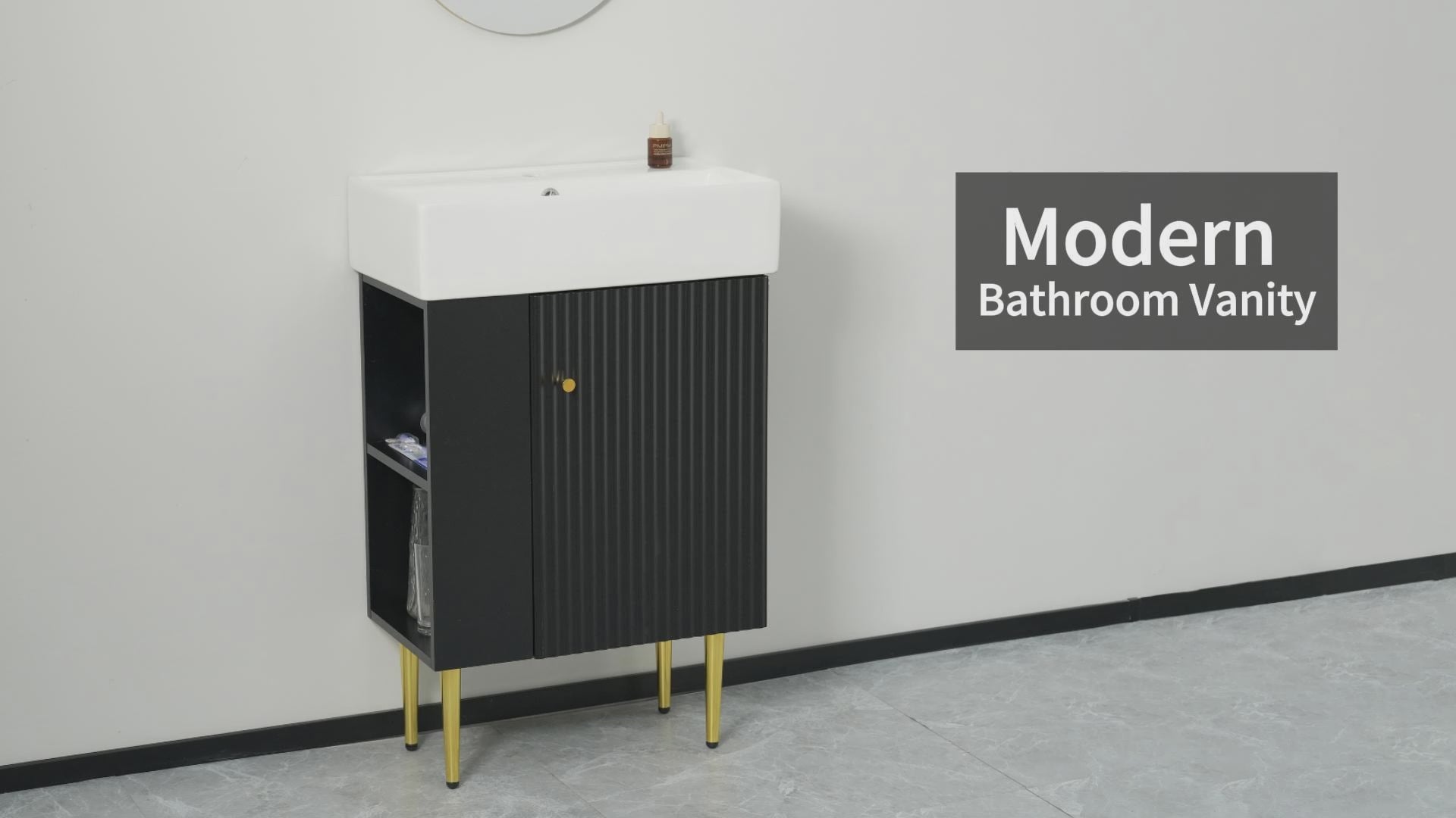 21.6 Inch Wood Bathroom Vanity with Ceramic Sink, Left Side Storage, Soft-Close Door, Modern Small Bathroom Cabinet