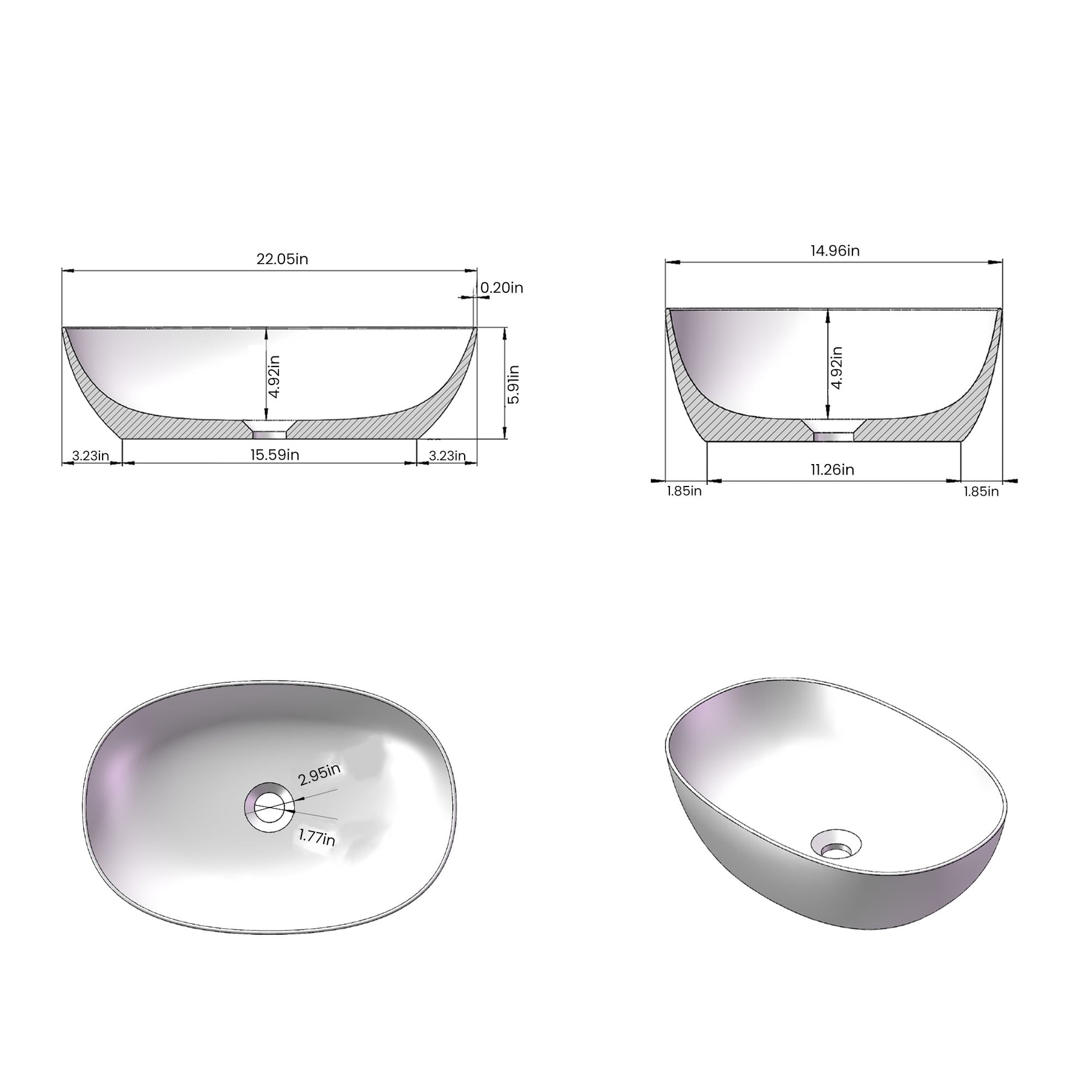 22 Inch Oval Dark Coffee Resin Bathroom Vanity Sink Countertop Sink