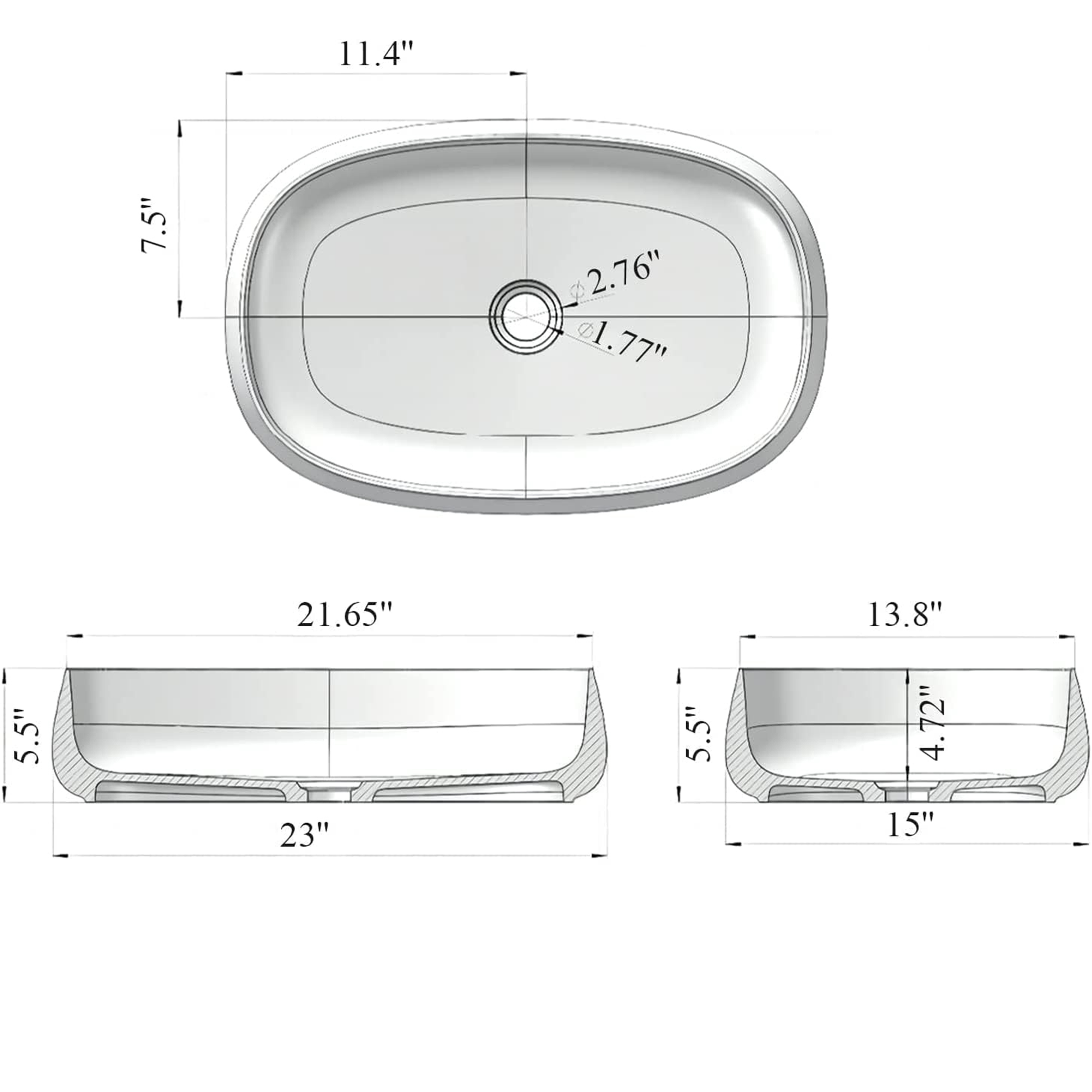 23 Inch Oval Black Gray Resin Bathroom Vanity Sink Countertop Sink