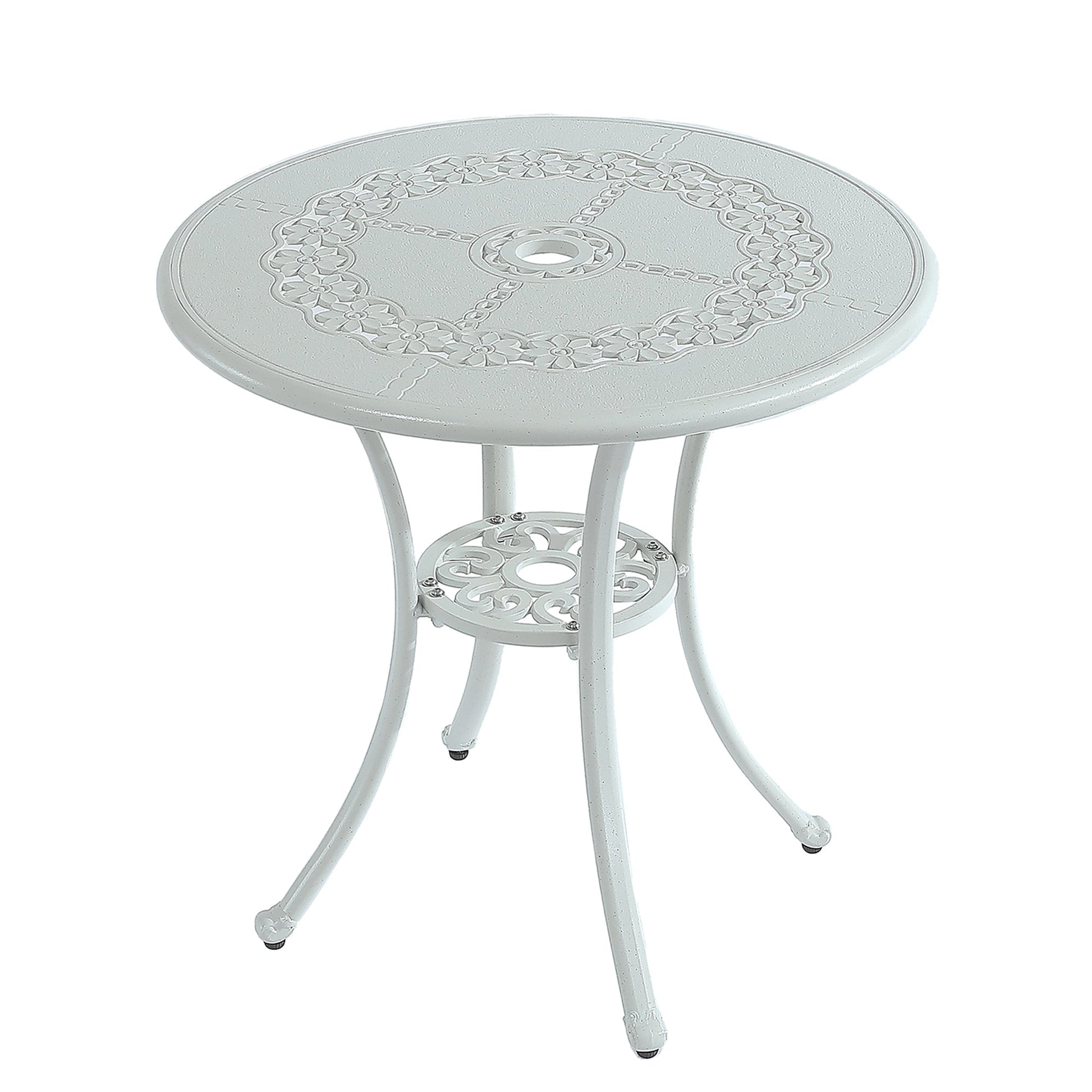 25 Inches Outdoor Bistro Table with Umbrella Hole Cast Aluminium Patio Dining Table Outdoor Round Bistro Table, White