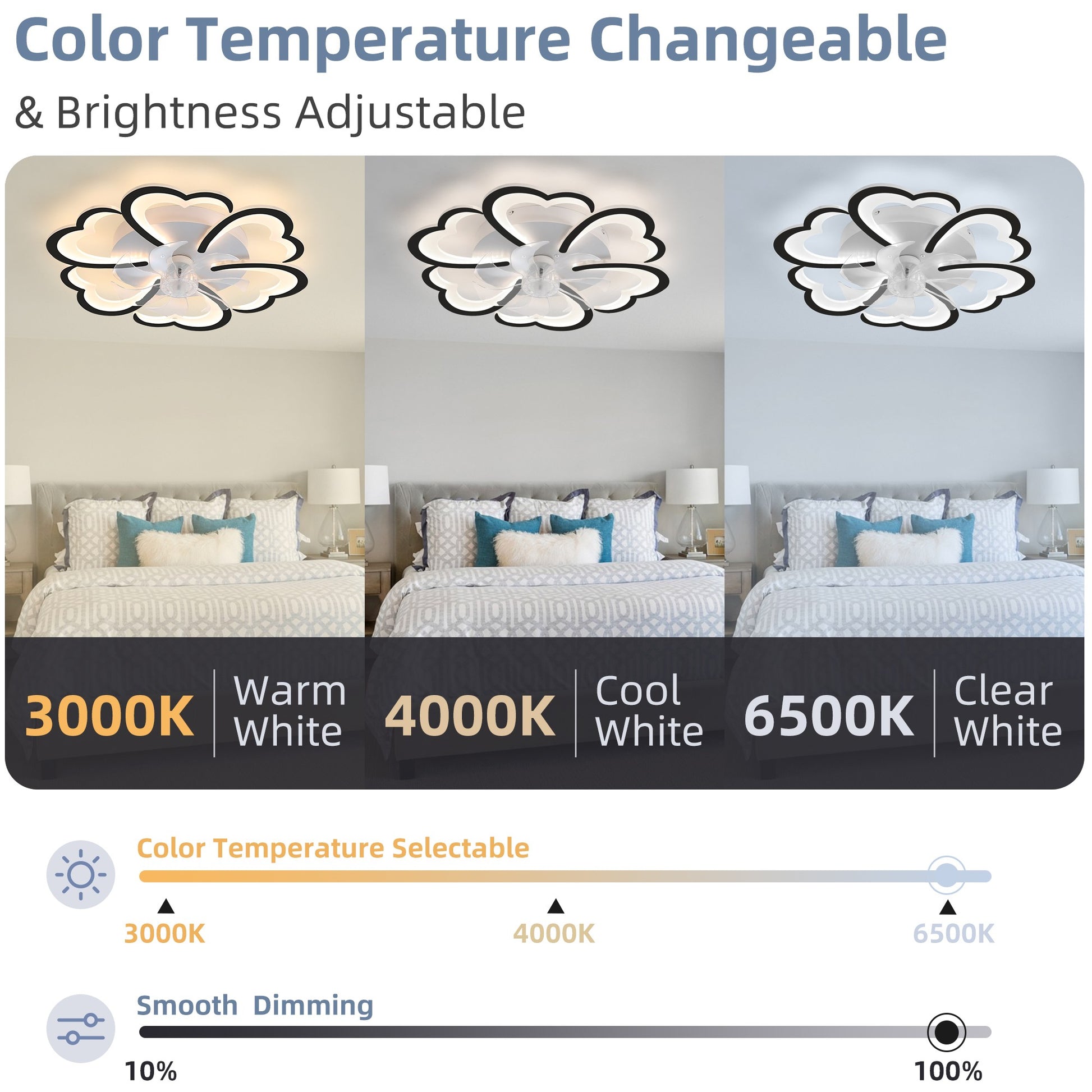 Ideal for bedrooms living rooms dining rooms this 26.7in black ceiling fan with lights has remote/APP control 6 speeds 3 color temps quiet reversible motor easy installation perfect for sleeping daily use