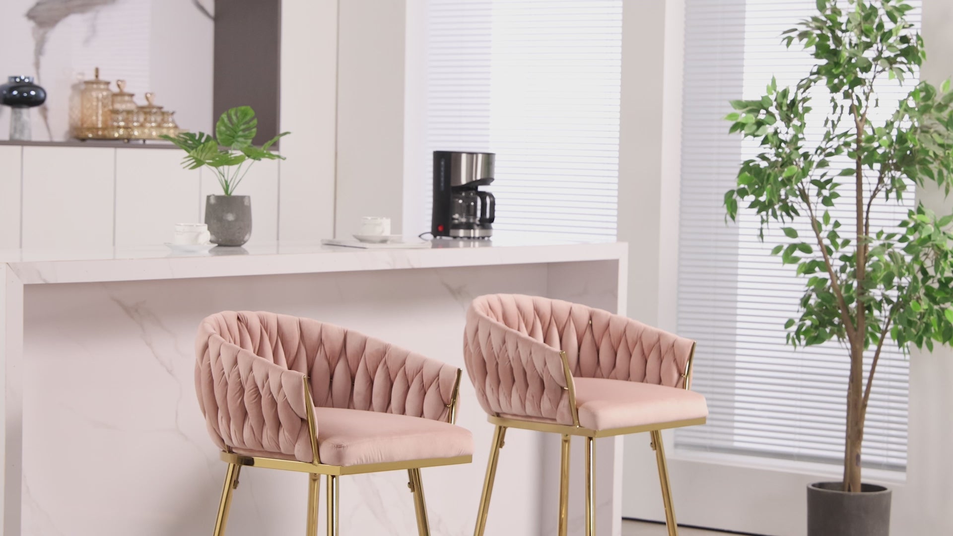 This 26 inch counter height bar stool features a hand wave curved backrest and a golden chromed base, offering both elegance and comfort for kitchen islands or home bars. Wrapped in soft velvet fabric with high density foam cushioning, the seat provides cloud like comfort with excellent warmth and breathability. Whether used in the kitchen, living room, bedroom, vanity area, or café, this stool adds a refined modern touch and offers reliable everyday seating.