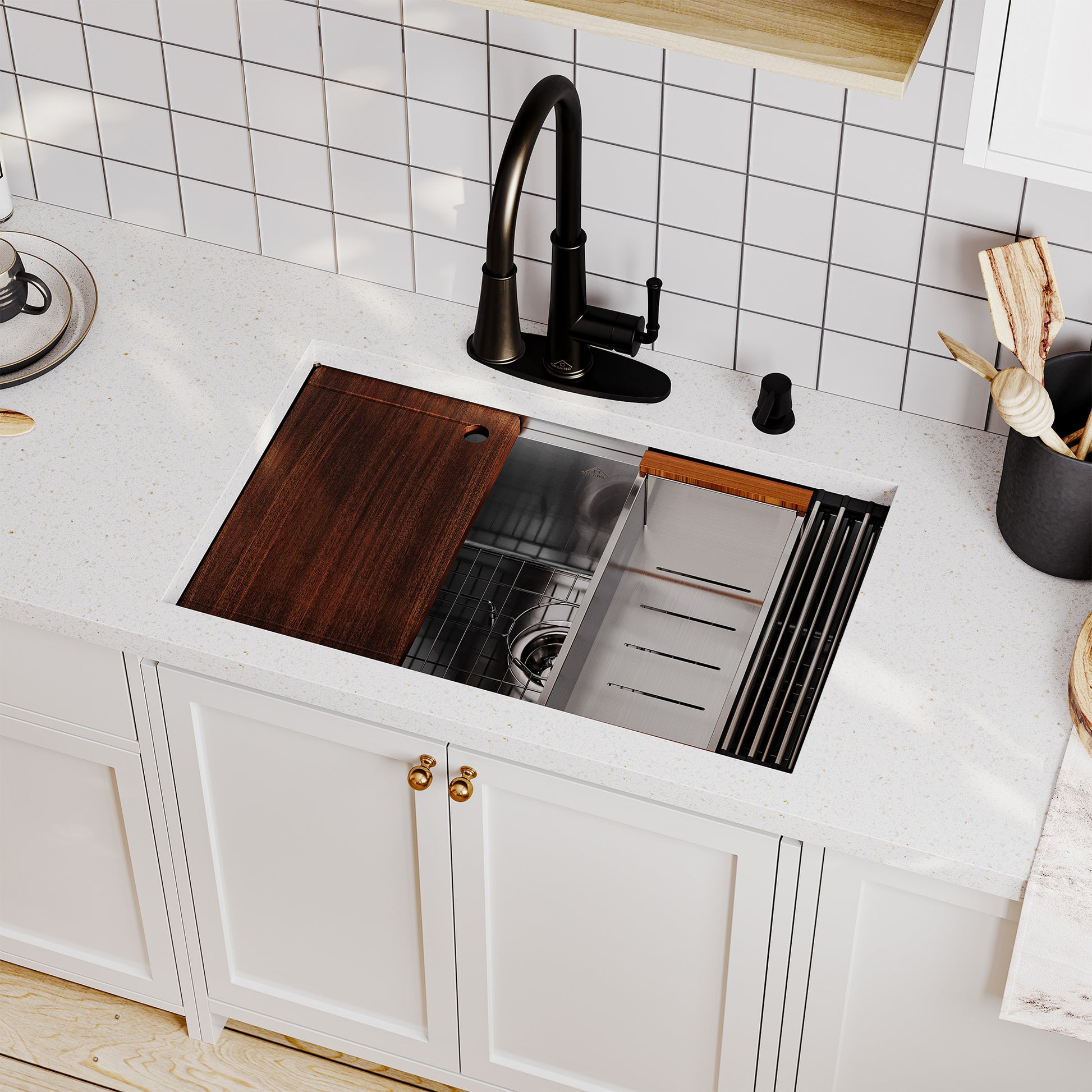 30 in. Undermount Single Bowl 18-Gauge Stainless Steel Kitchen Sink with Cutting Board, Rolling Drying Rack, Drain, etc
