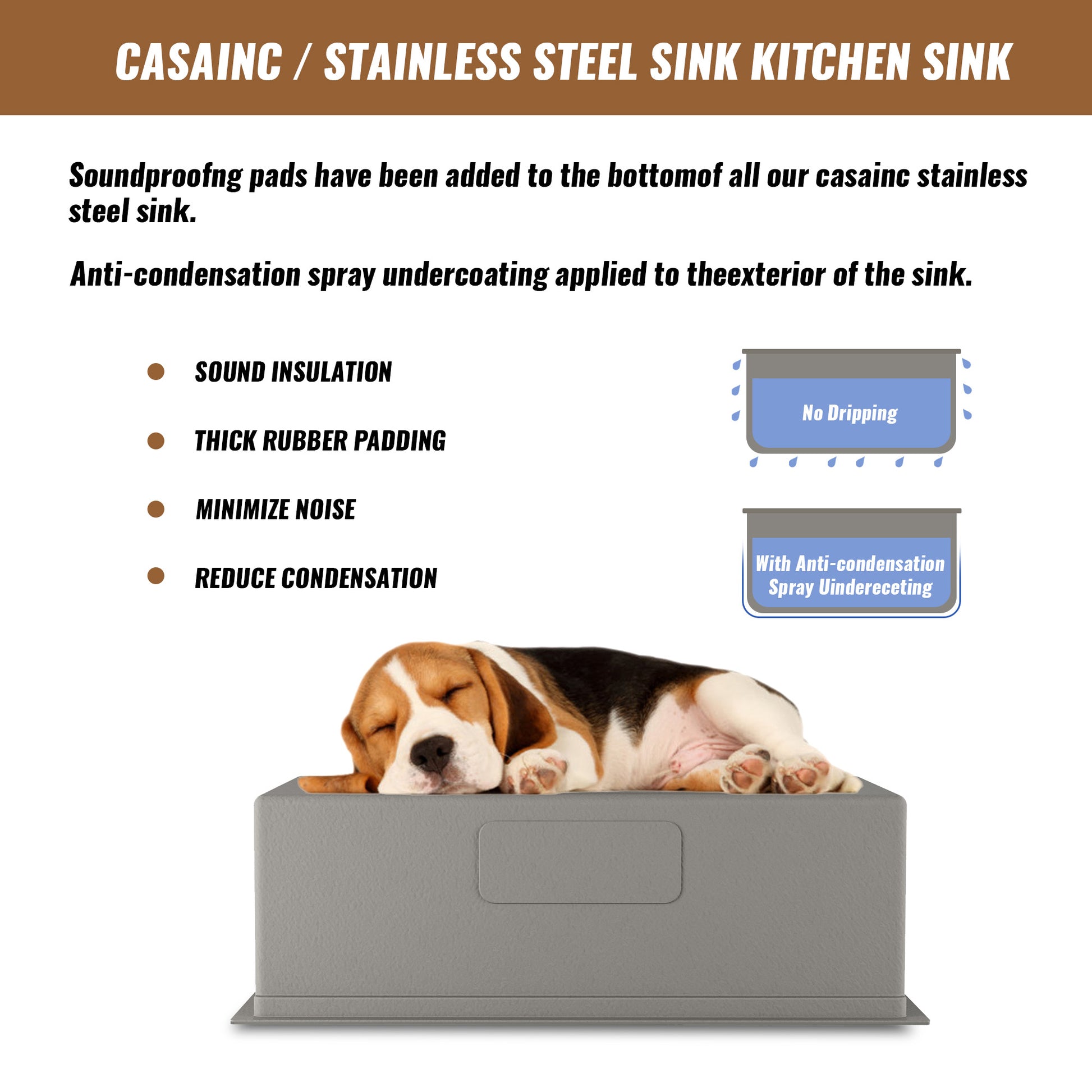 The surface of the sink is covered with a waterproof protective layer, stain-resistant and easy to clean, coupled with a fine design, can be perfectly matched with various kitchen decoration styles.304 stainless steel, through the nano or brushed surface treatment, inhibit bacterial growth, anti-scratch and anti-oil, durable and long-lasting. The internal streamlined X-shaped infusion design greatly improves drainage efficiency and prevents water and odor. The product is surrounded by a high-density soundproof mat, effectively absorbing water flow and mechanical noise, creating a quiet and comfortable environment for users. At the same time, the golden ratio design, reducing dead space for easy cleaning. The overall shape of the atmosphere and simplicity, to meet the user's aesthetic needs.