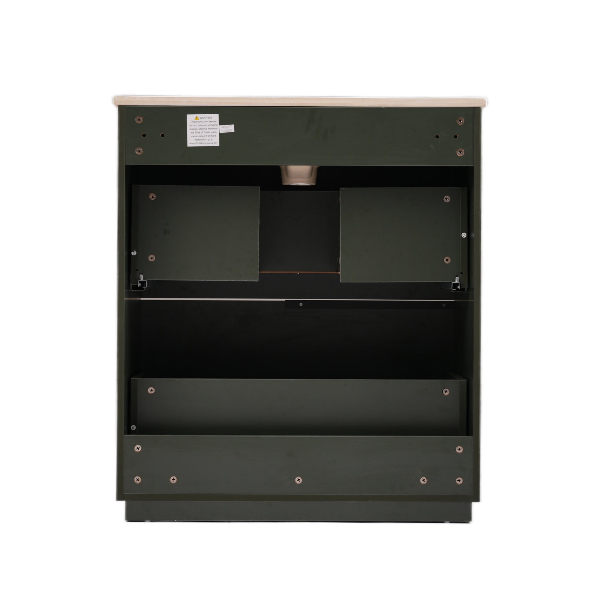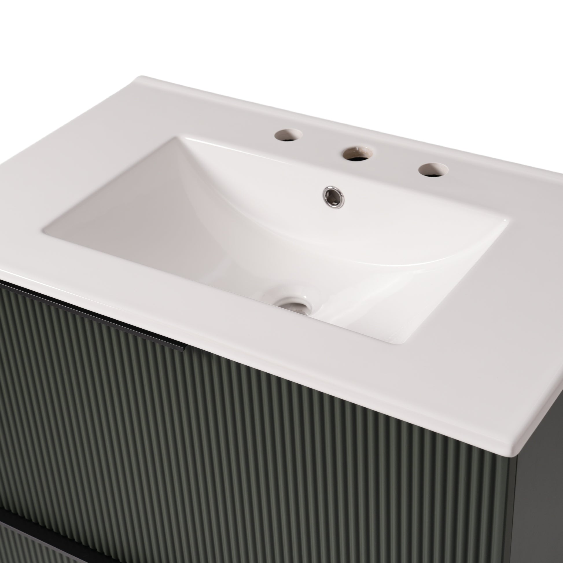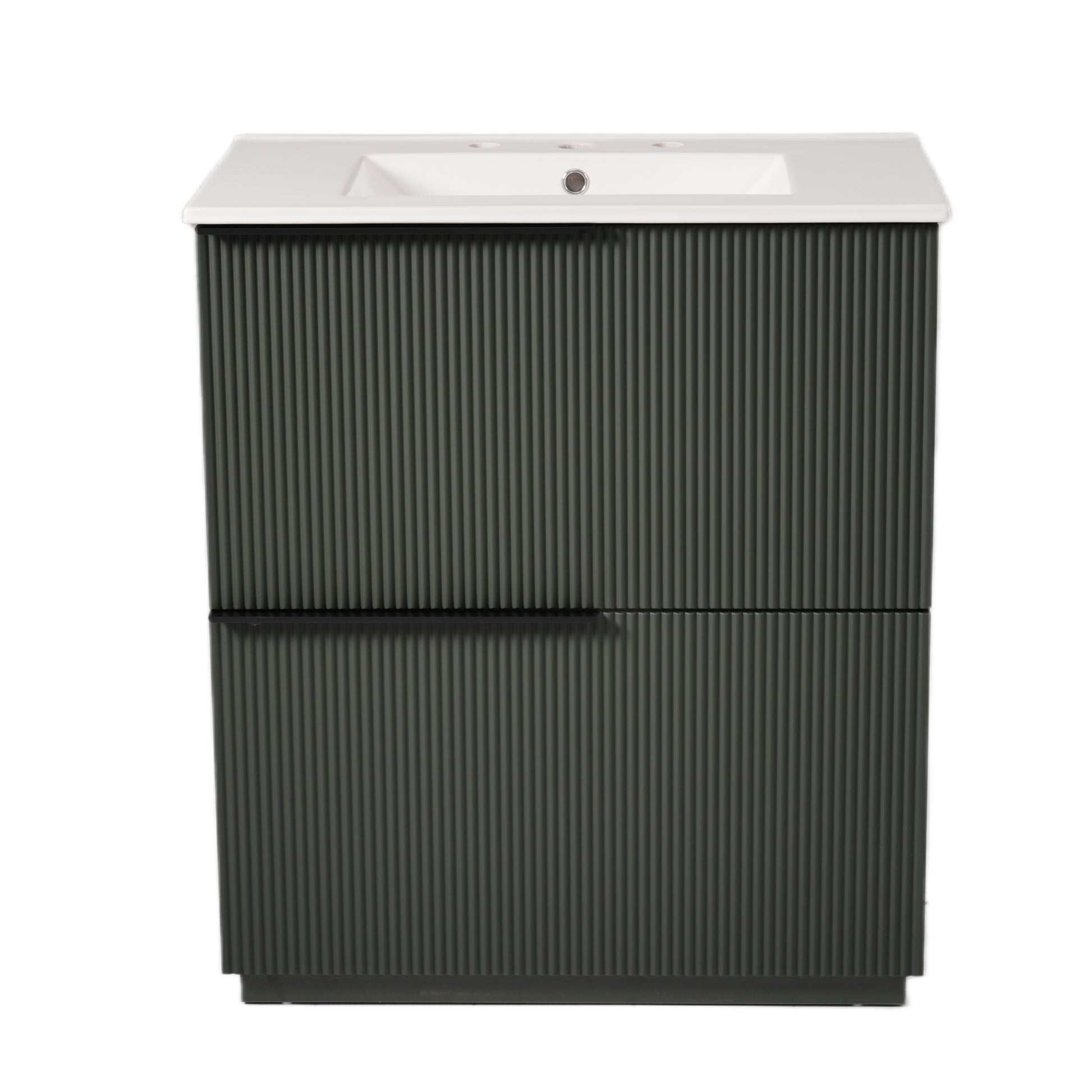30 Inch Bathroom Vanity with Ceramic Sink Full Extension Drawers Soft Close Fluted Design Green