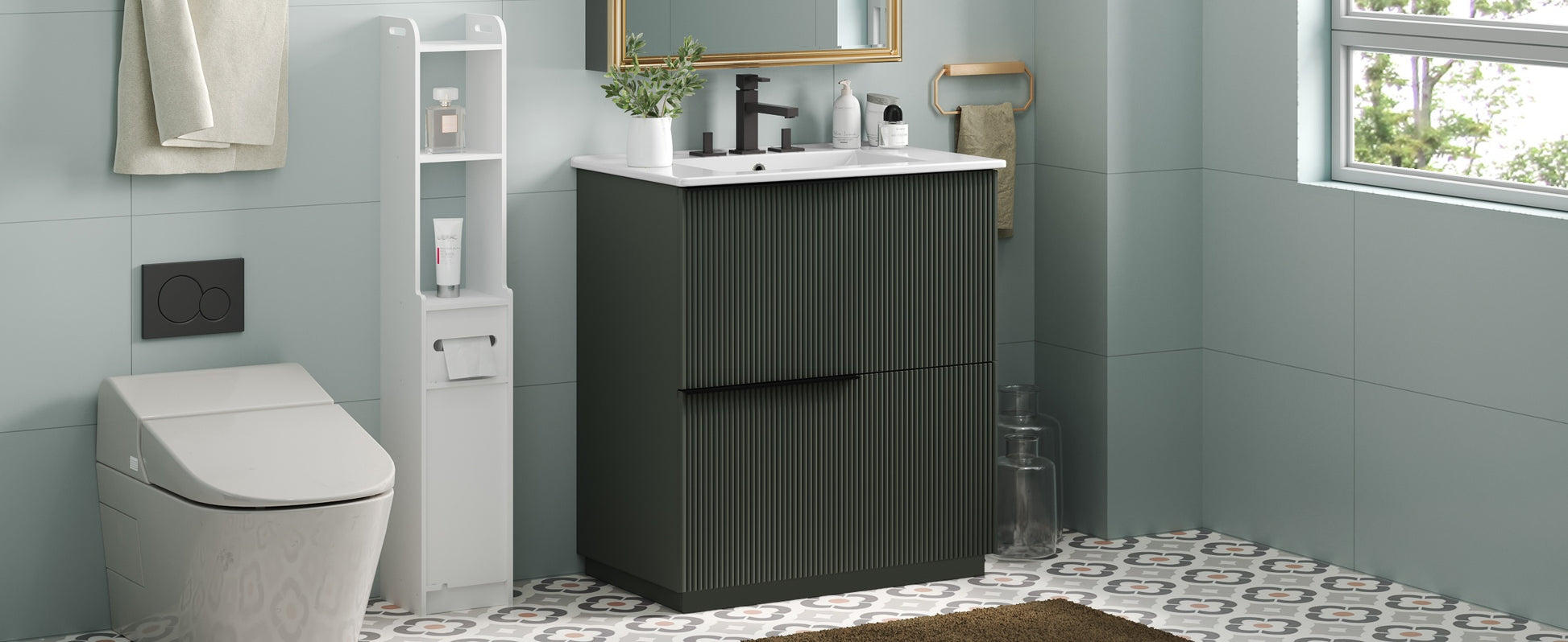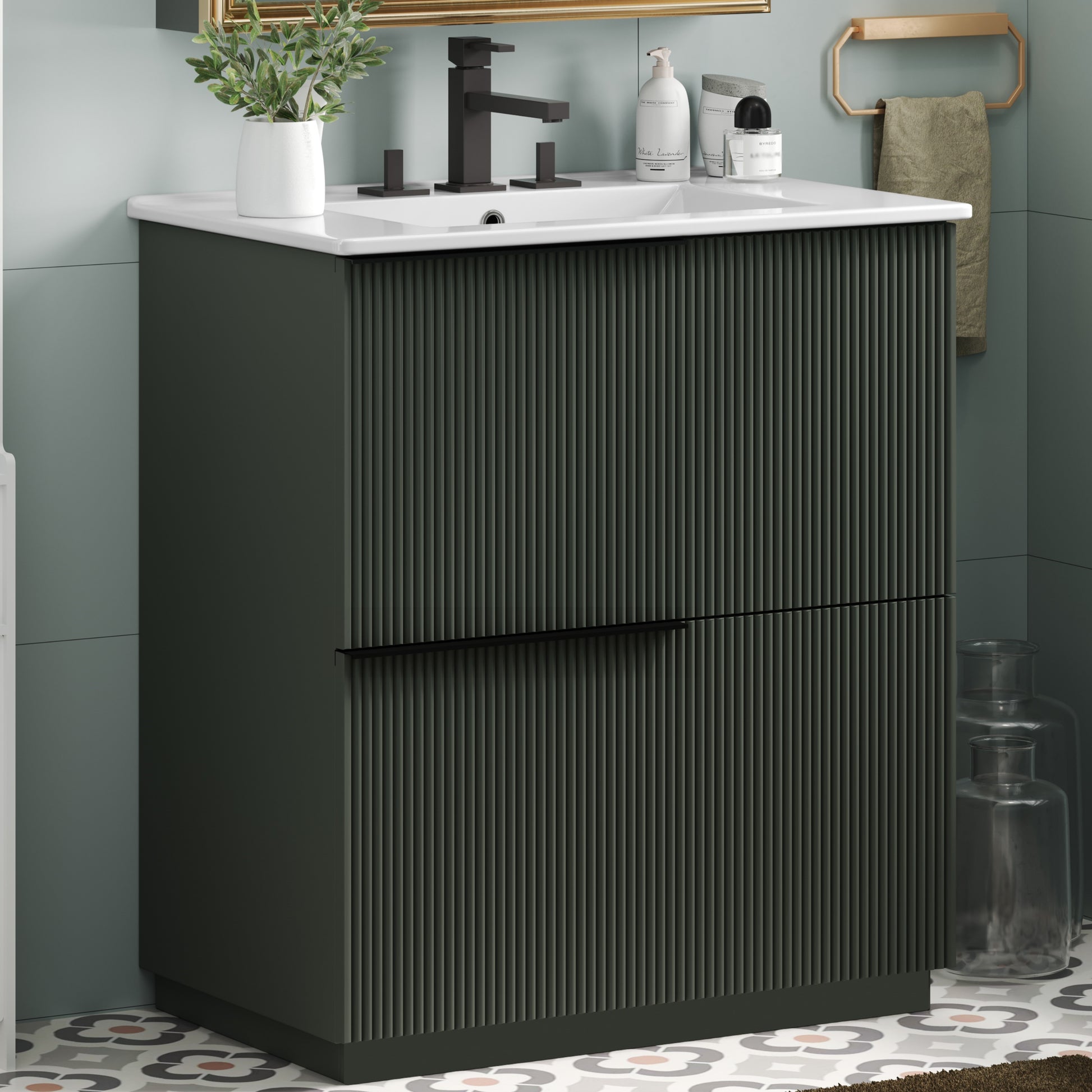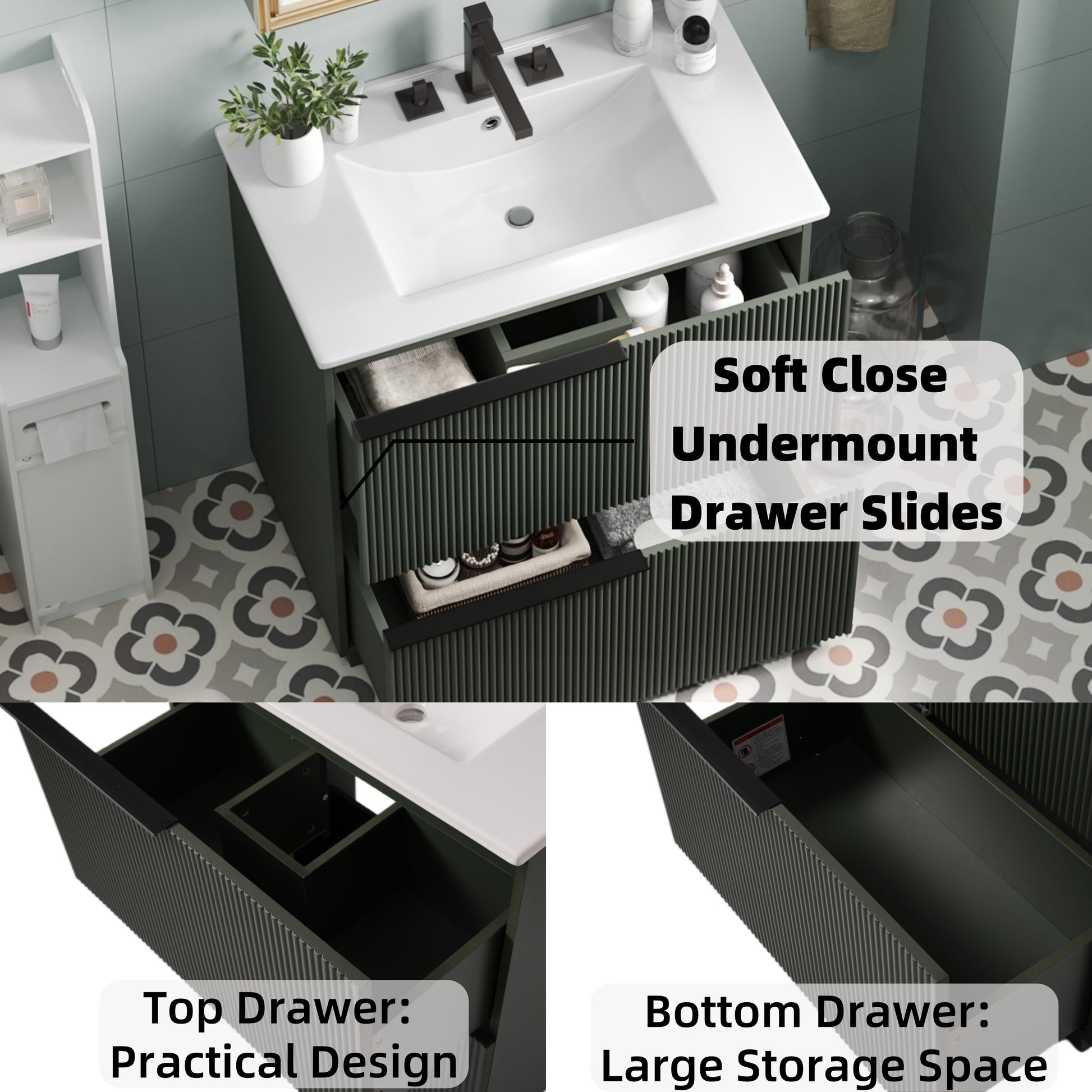 30 Inch Bathroom Vanity with Ceramic Sink Full Extension Drawers Soft Close Fluted Design Green