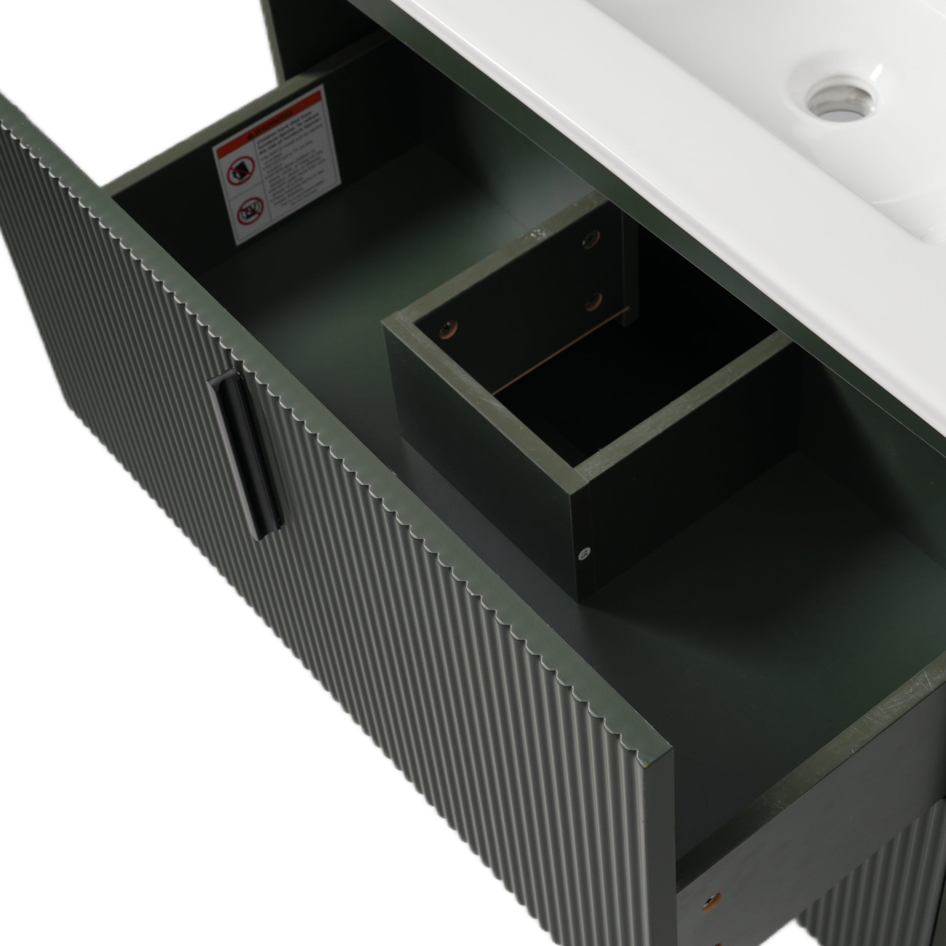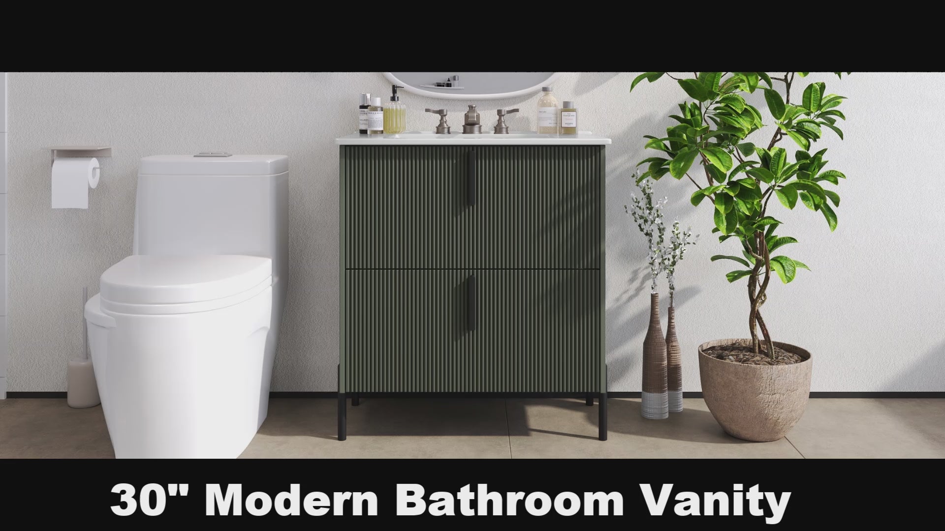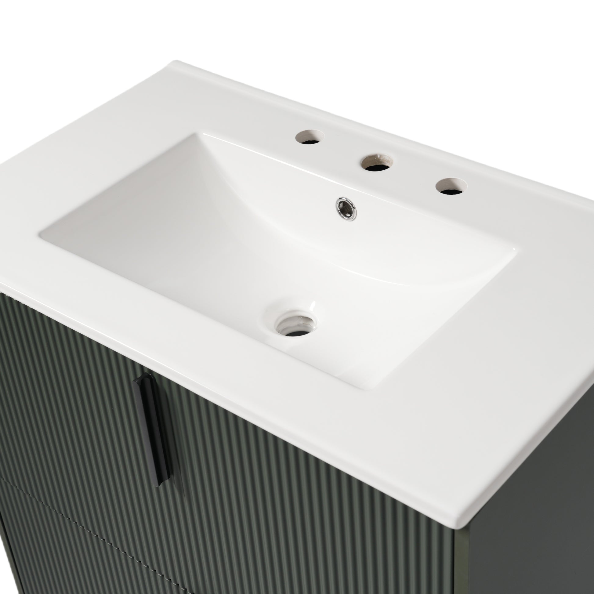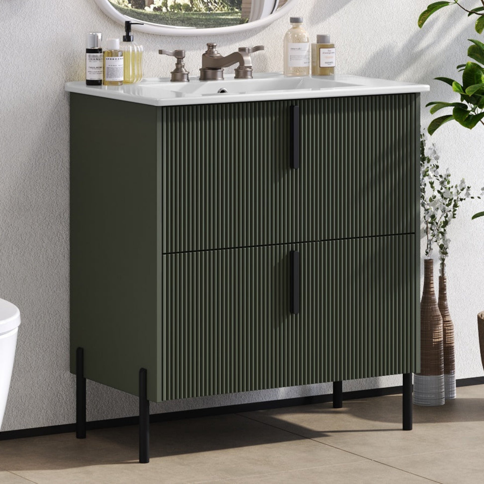 30 Inch Bathroom Vanity with Ceramic Sink Full Extension Drawers Soft Close Fluted Design Green