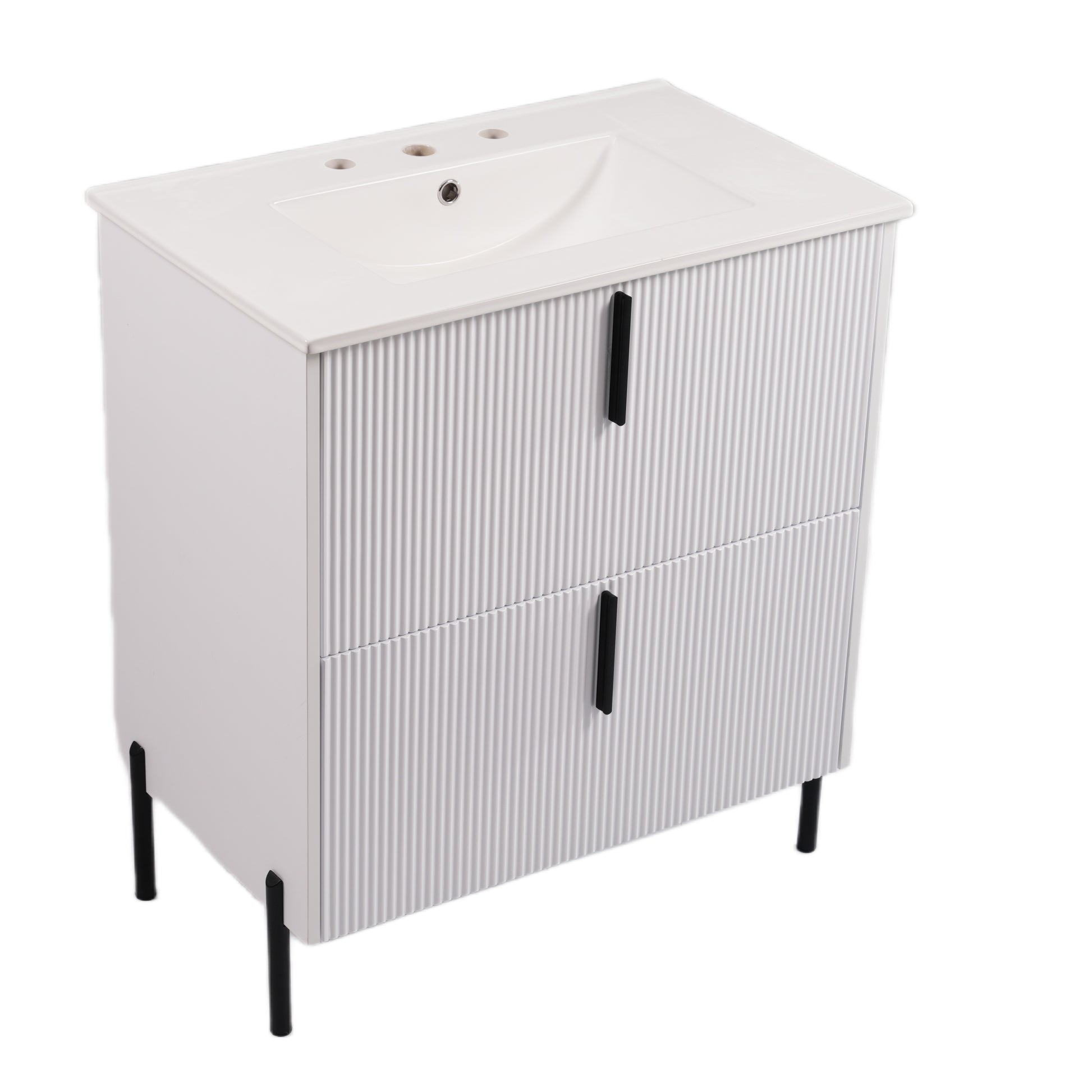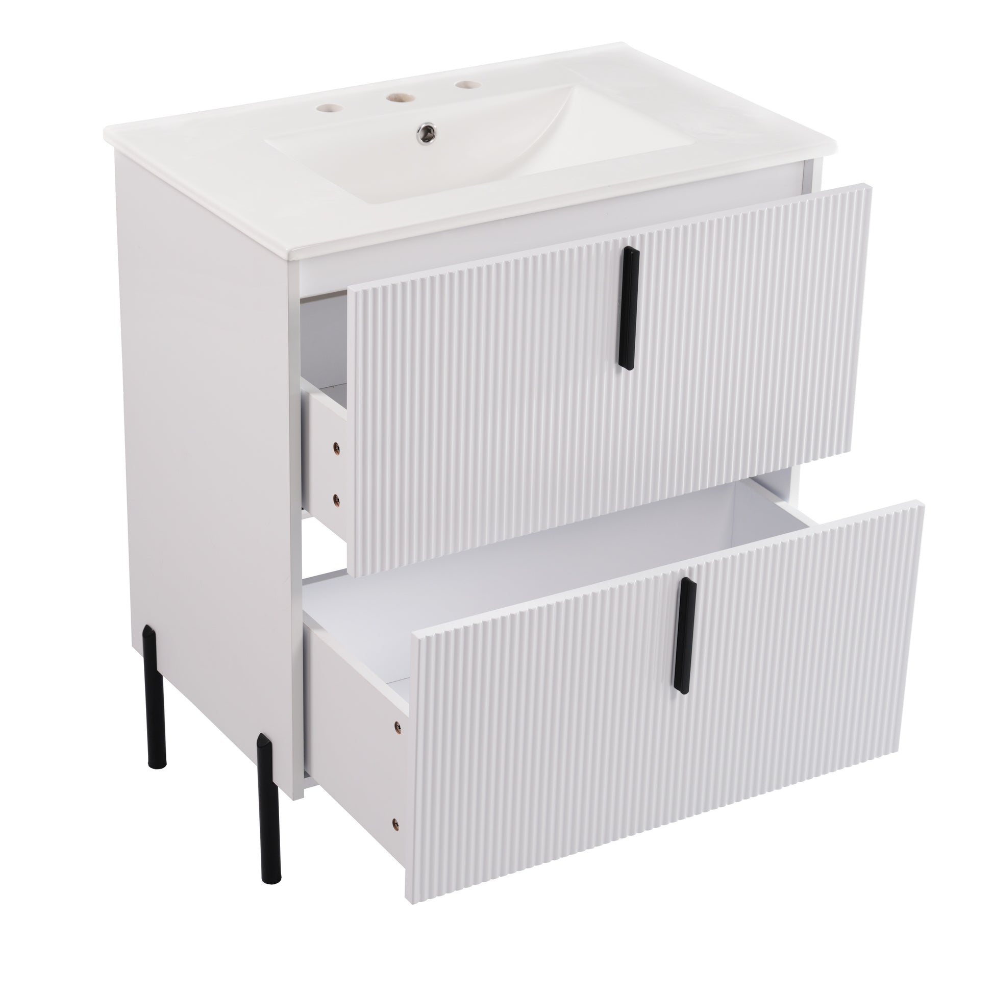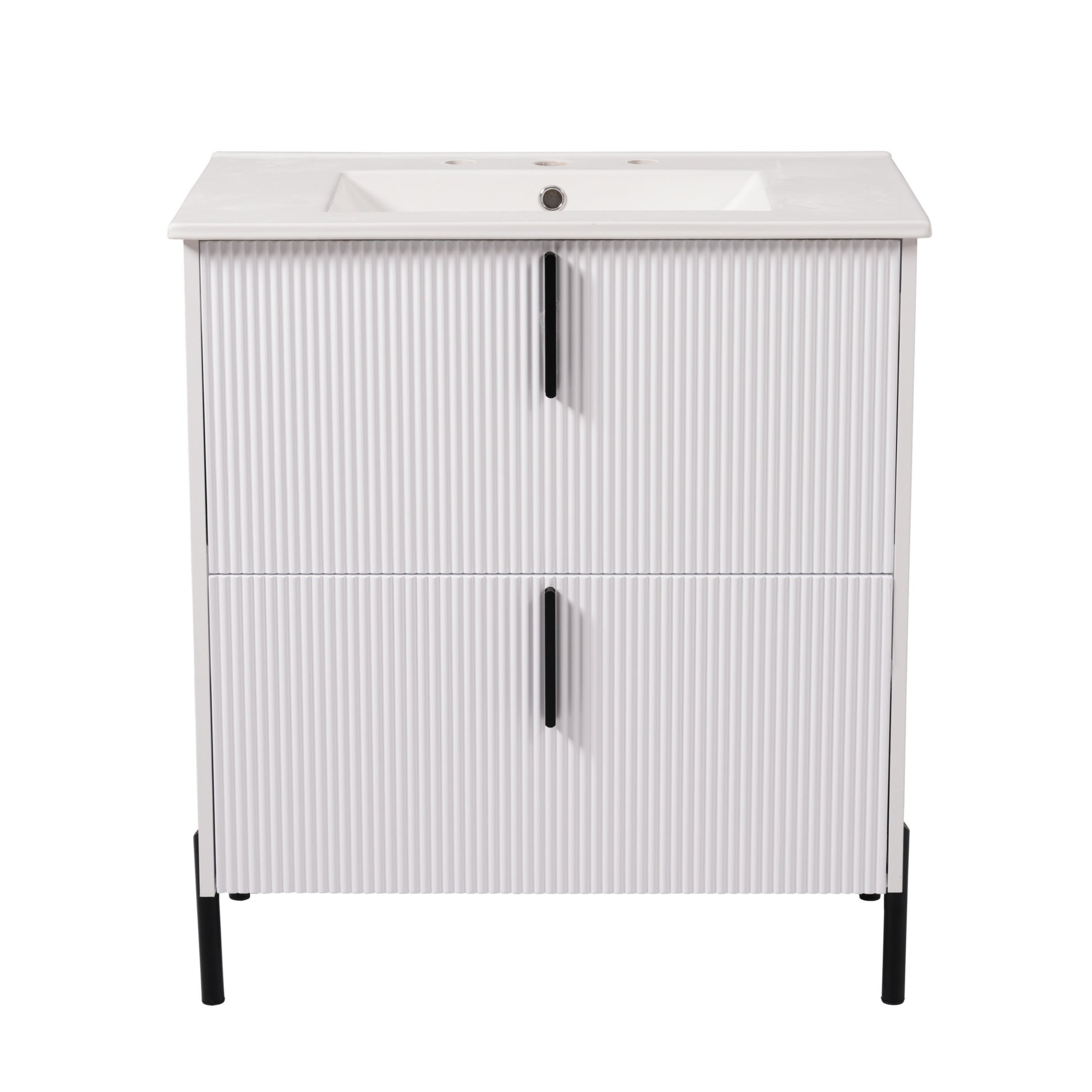 30 Inch Bathroom Vanity with Ceramic Sink Full Extension Drawers Soft Close Fluted Design White