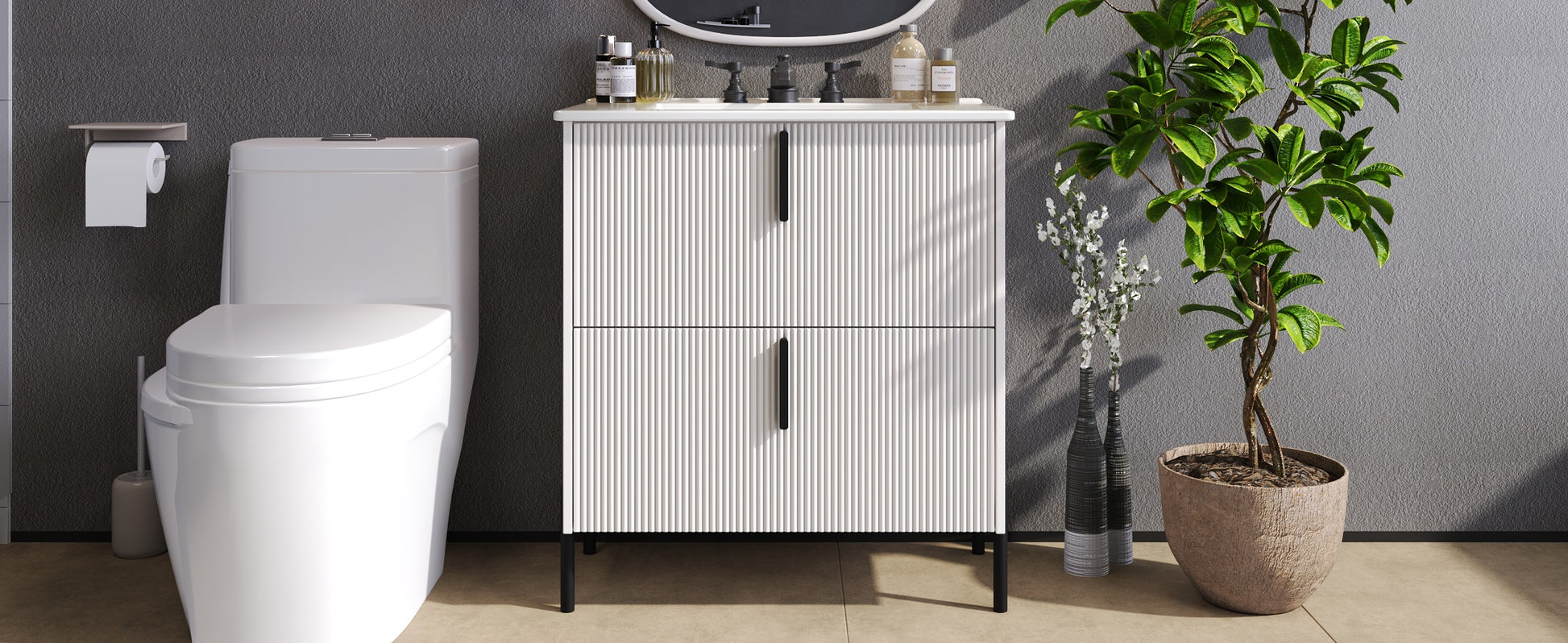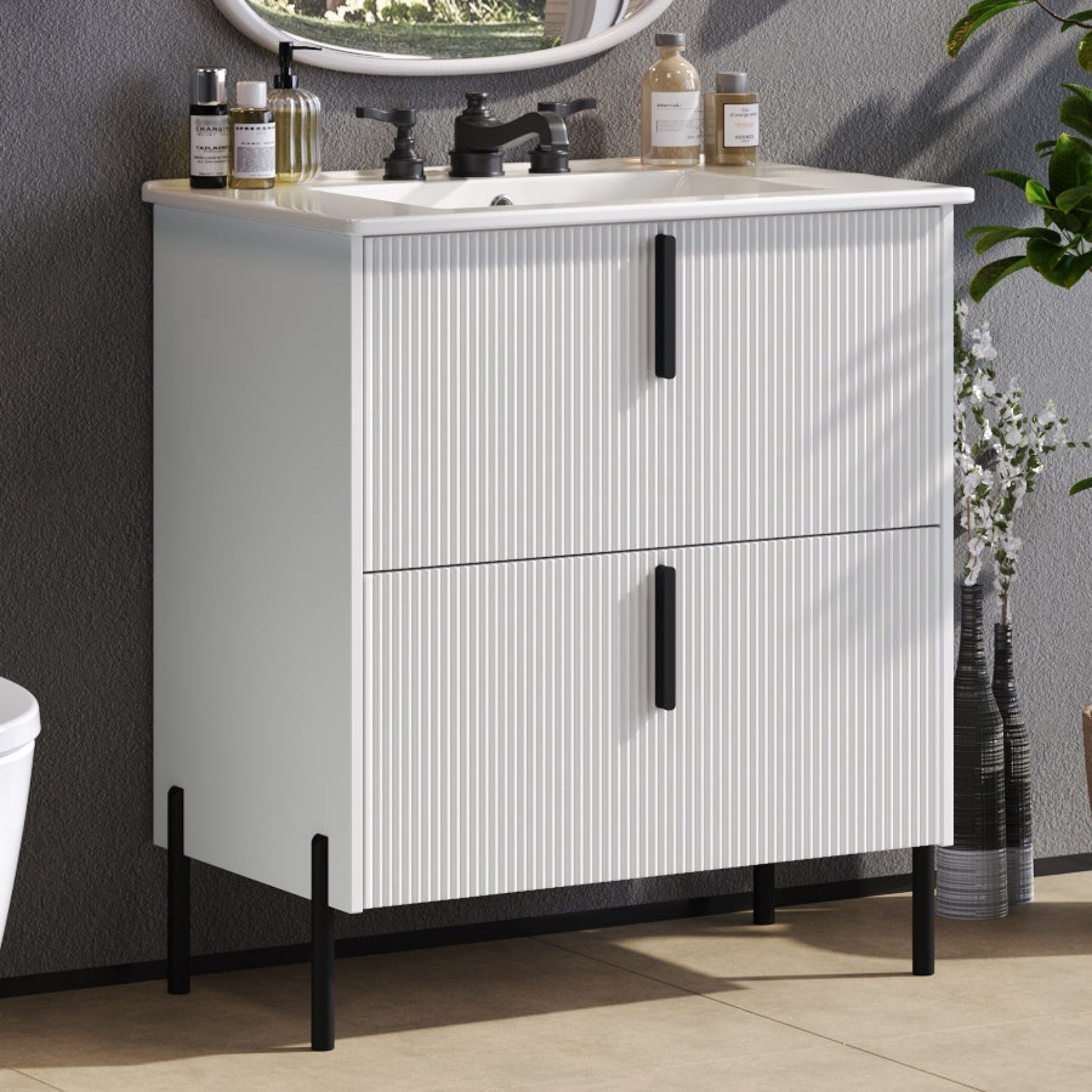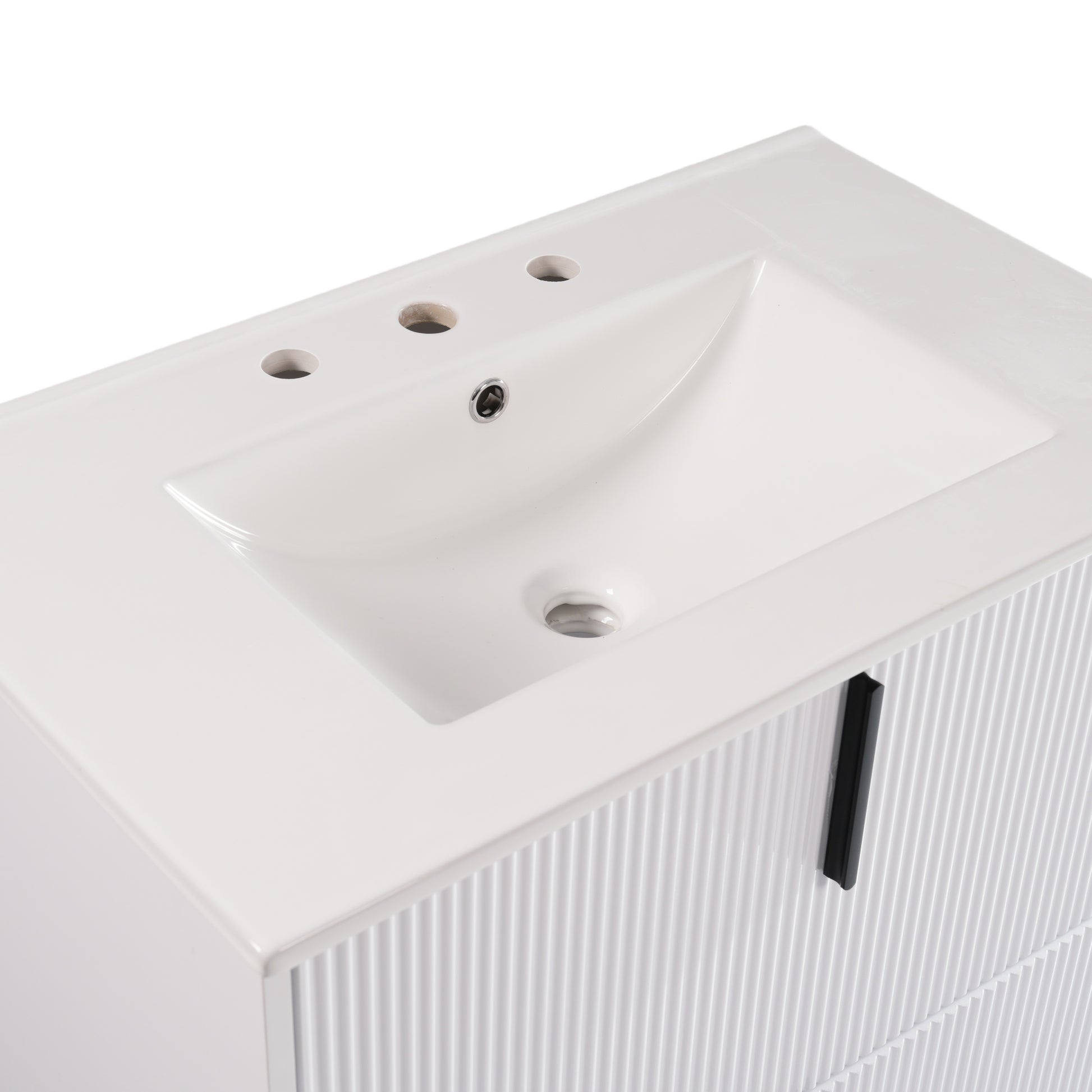 30 Inch Bathroom Vanity with Ceramic Sink Full Extension Drawers Soft Close Fluted Design White
