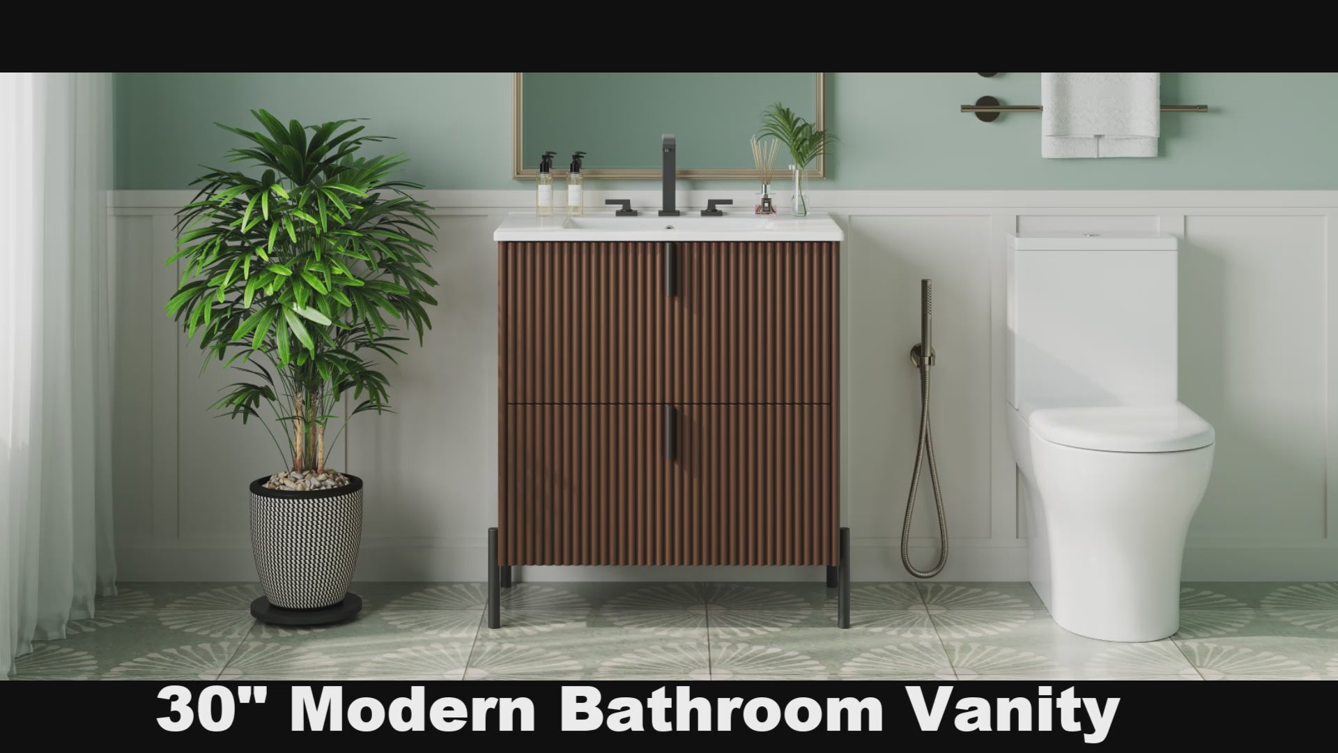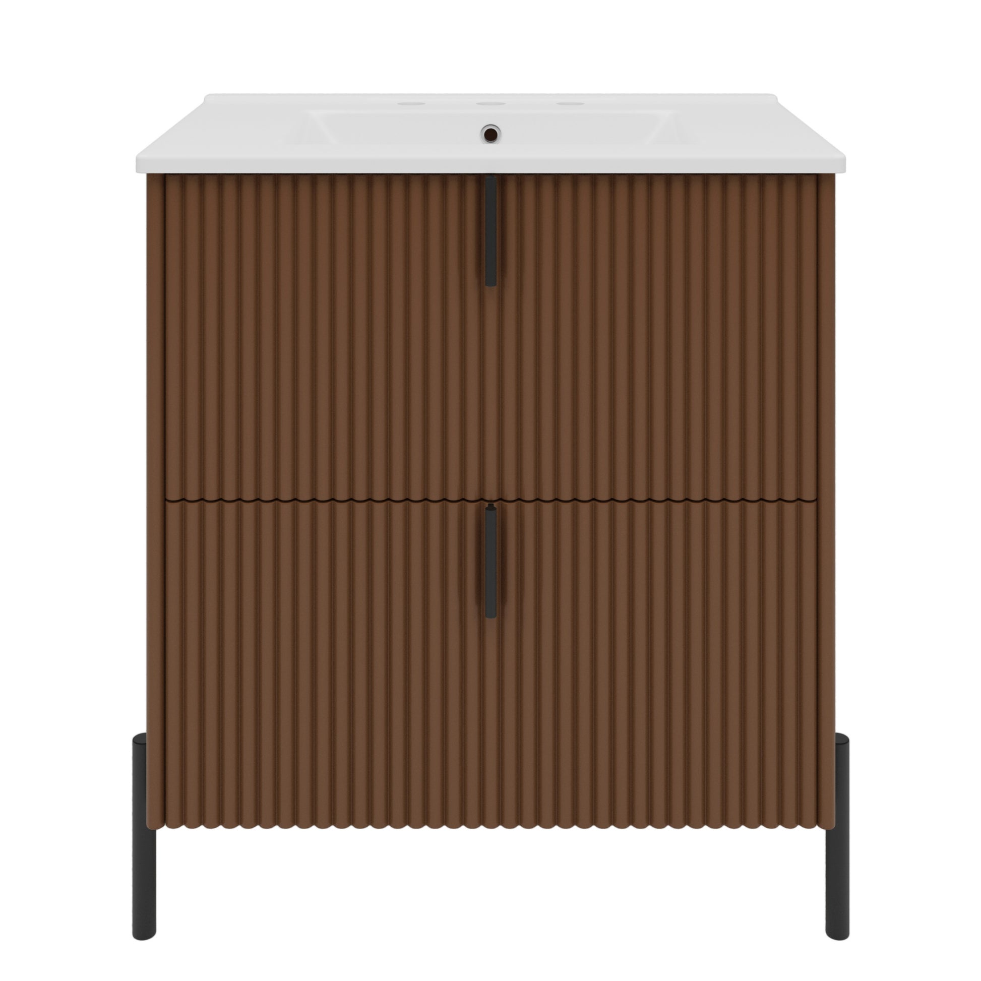 30 Inch Bathroom Vanity with Ceramic Sink Vertical Pulls Full Extension Drawers Soft Close Dark Brown