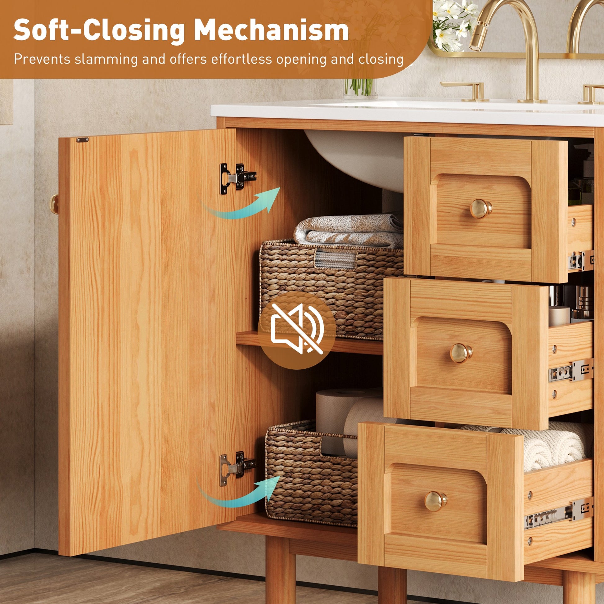 30 Inch Farmhouse Bathroom Vanity with Ceramic Sink 3 Drawers 1 Large Soft Closing Door Storage Cabinet Ideal for Home