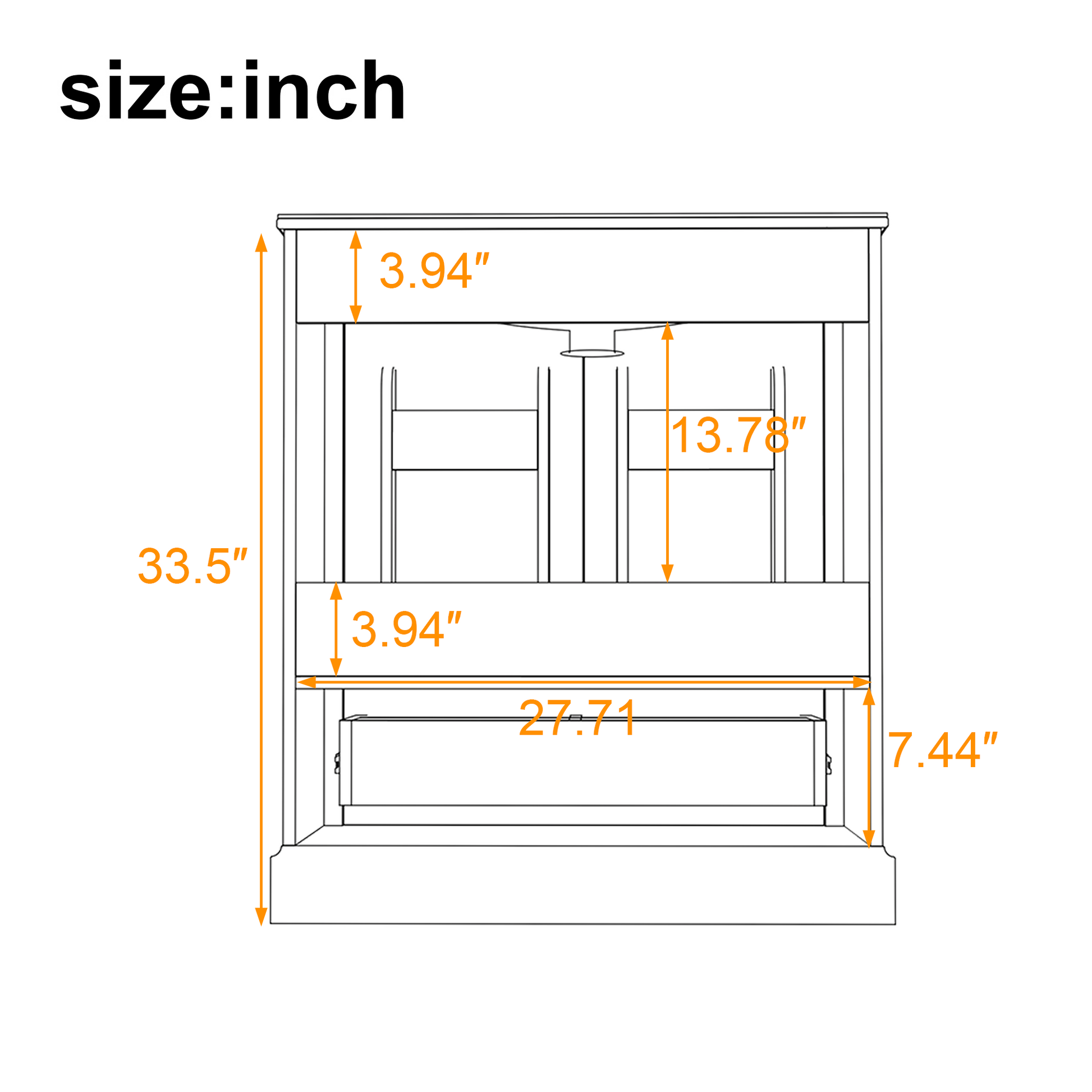 This 30-inch green modern bathroom vanity features a stylish design with smooth lines, adding a fresh, contemporary touch to your space. Built with a solid wood frame and MDF panels, it ensures durability and stability for long-term use. Equipped with a ceramic sink with overflow protection, one partitioned drawer, two soft-close doors, and double shelves on each door, it offers smart, organized storage for all your bathroom essentials.