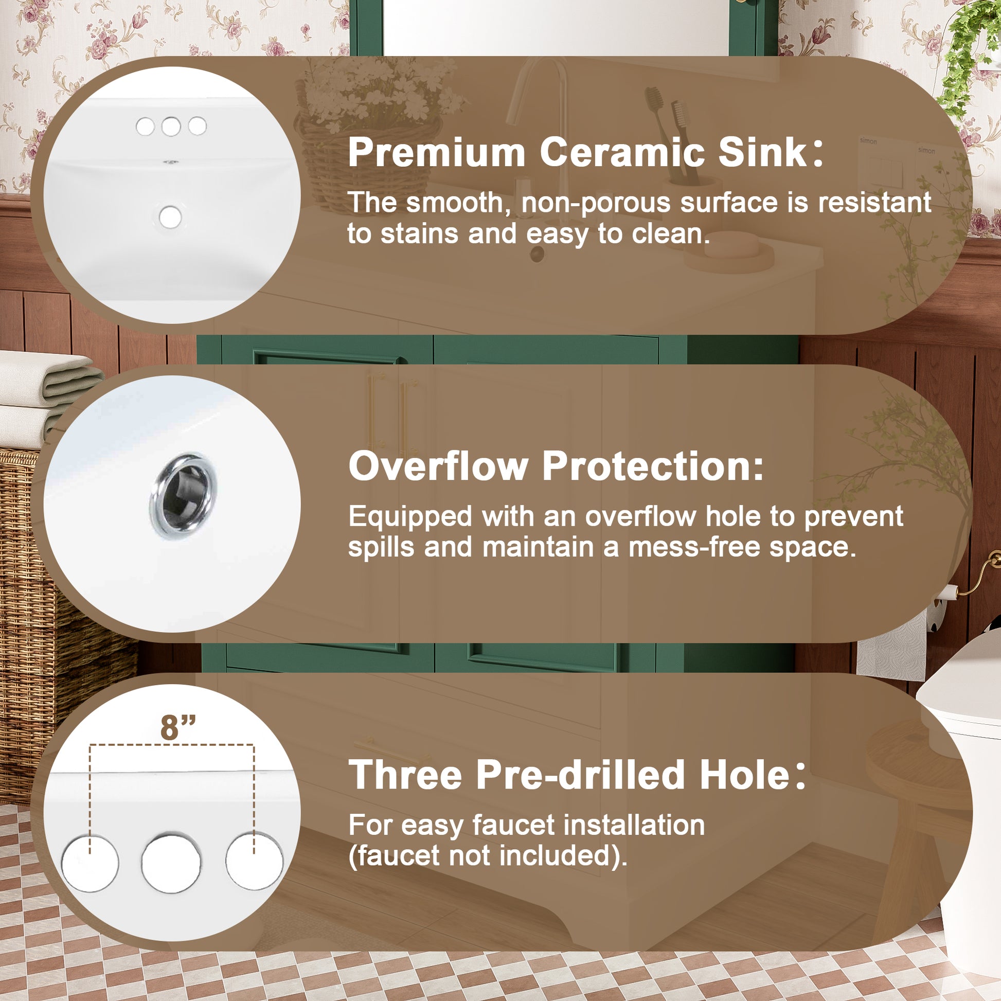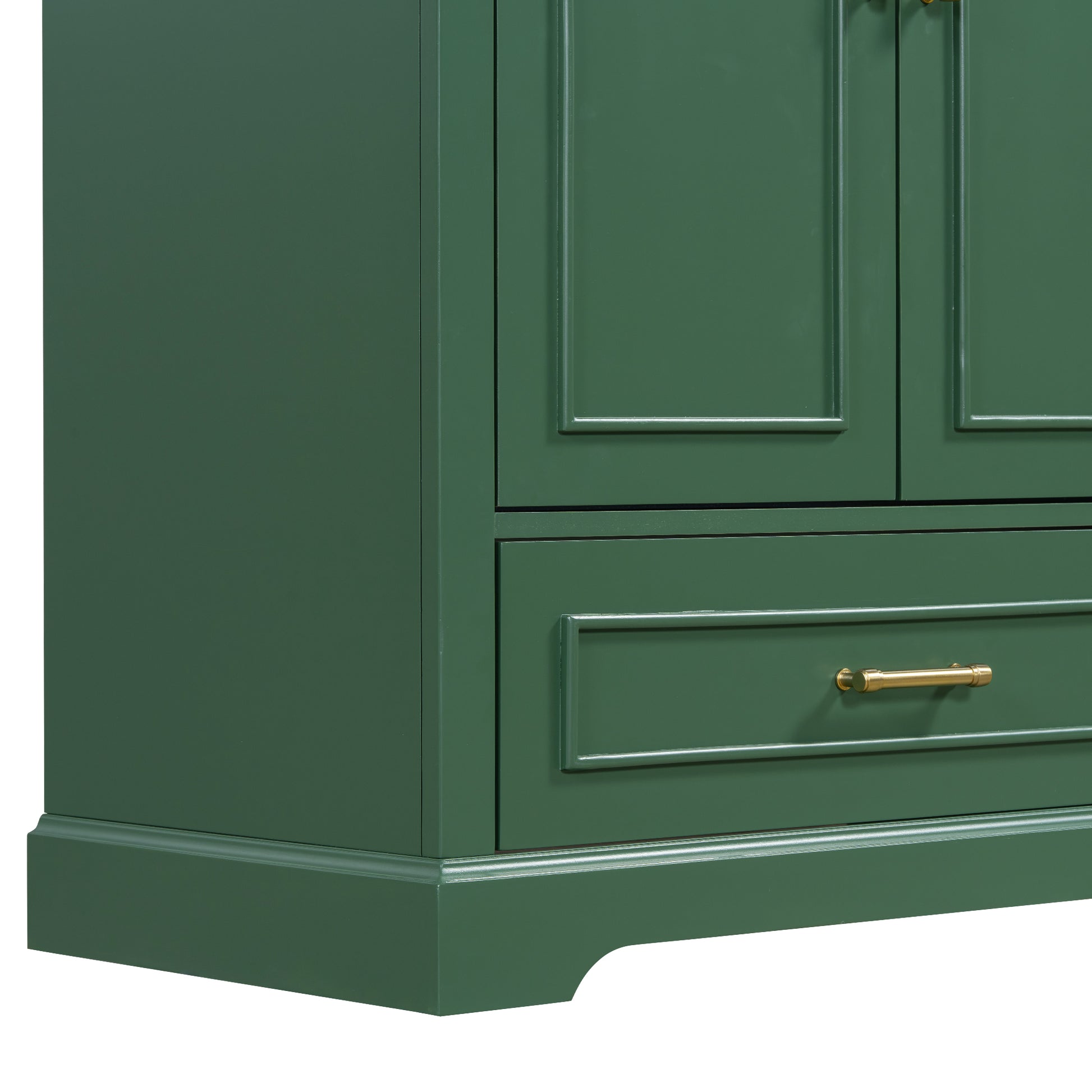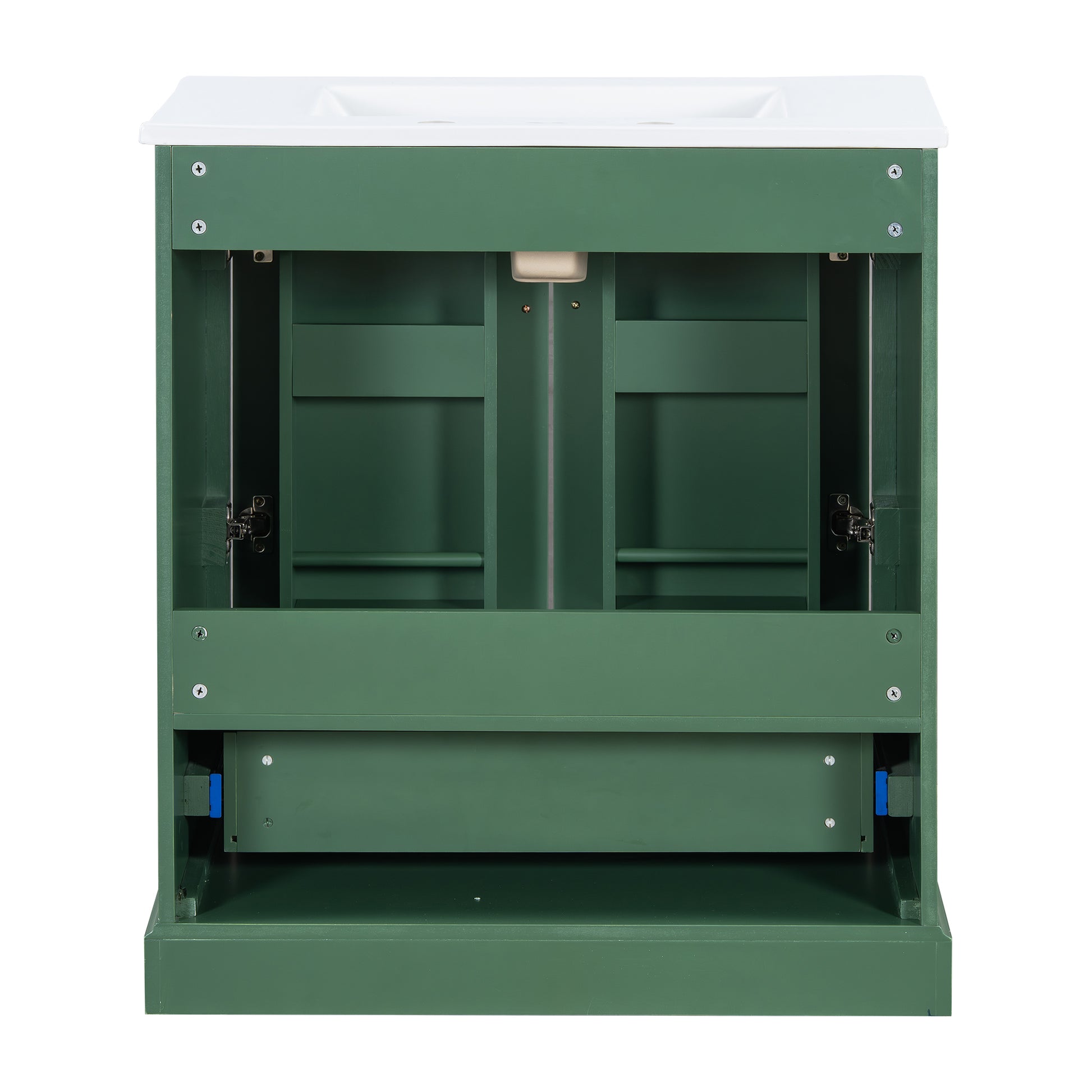 30 Inch Green Modern Bathroom Vanity with Ceramic Sink Soft Close Doors Divider Drawer Double Door Shelves Solid Wood & MDF