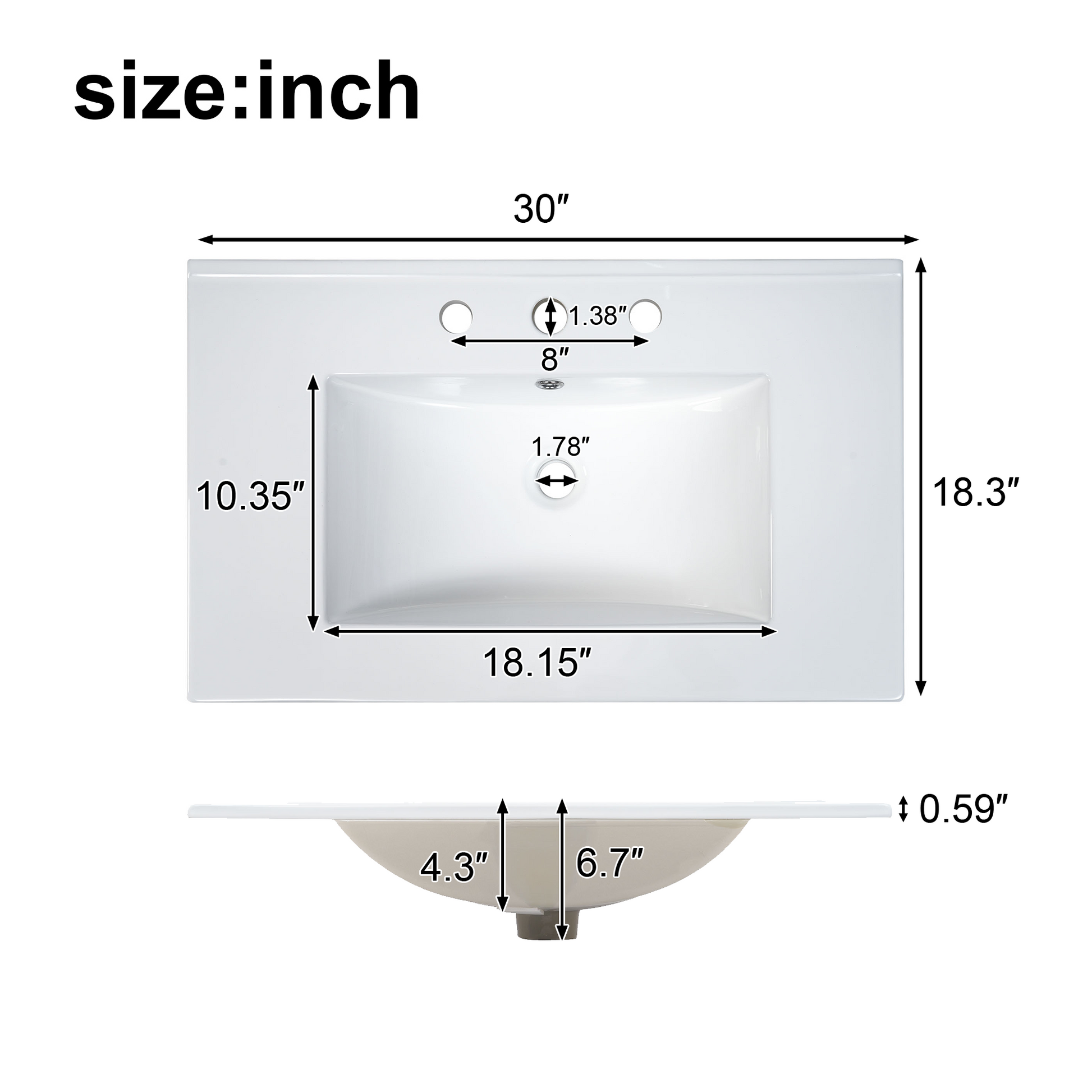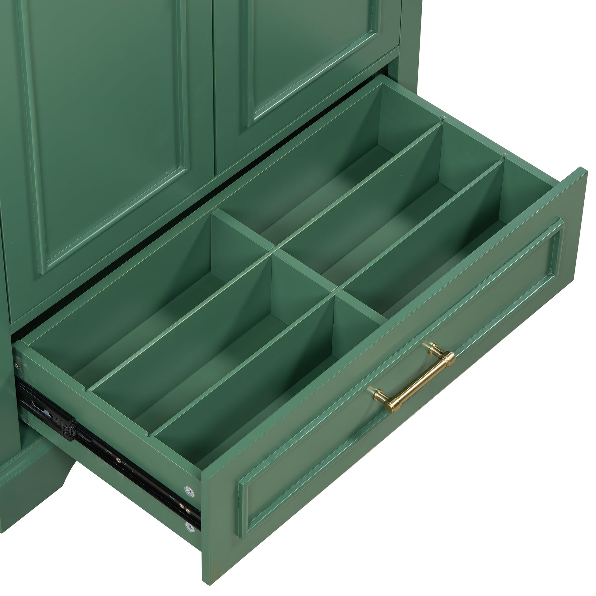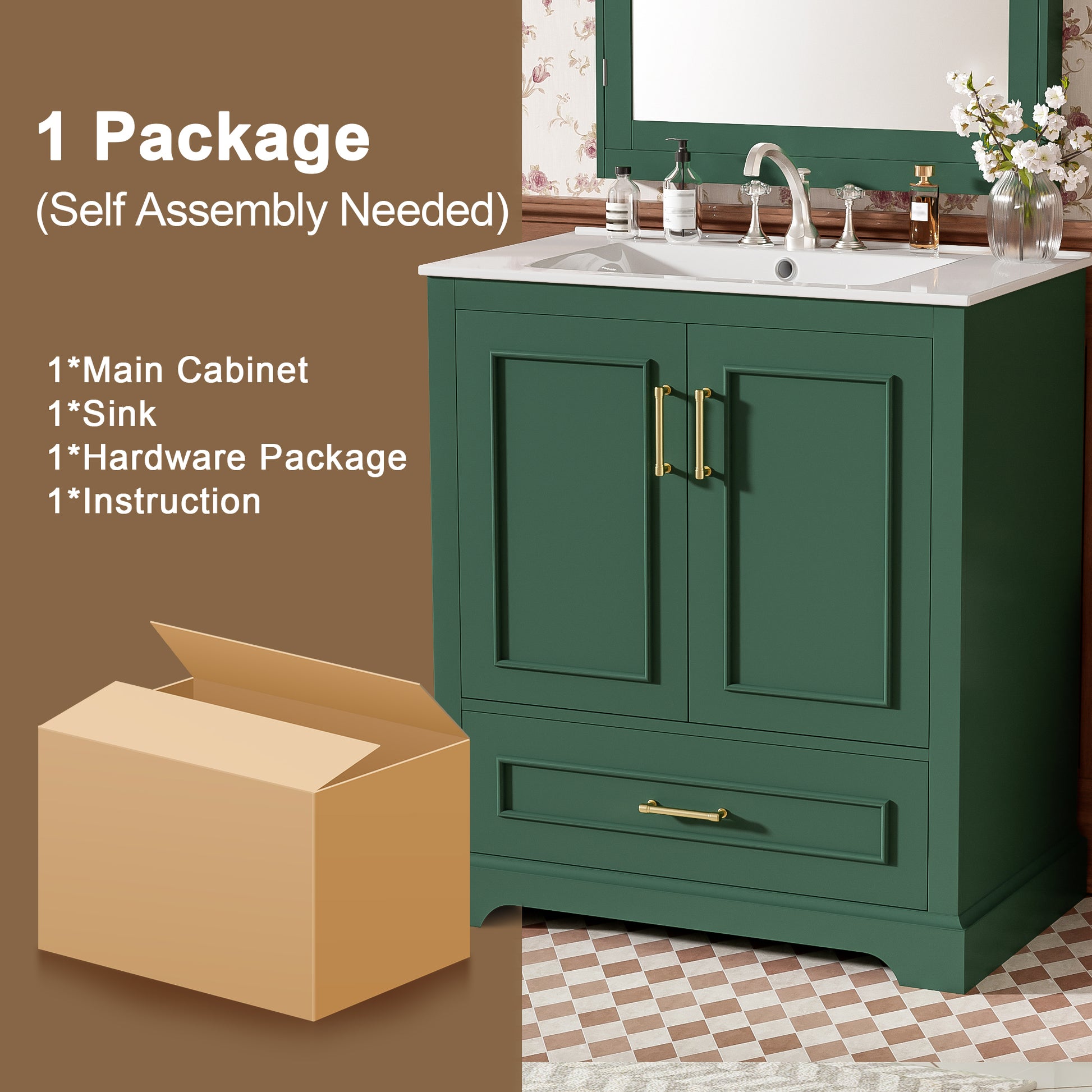 30 Inch Green Modern Bathroom Vanity with Ceramic Sink Soft Close Doors Divider Drawer Double Door Shelves Solid Wood & MDF
