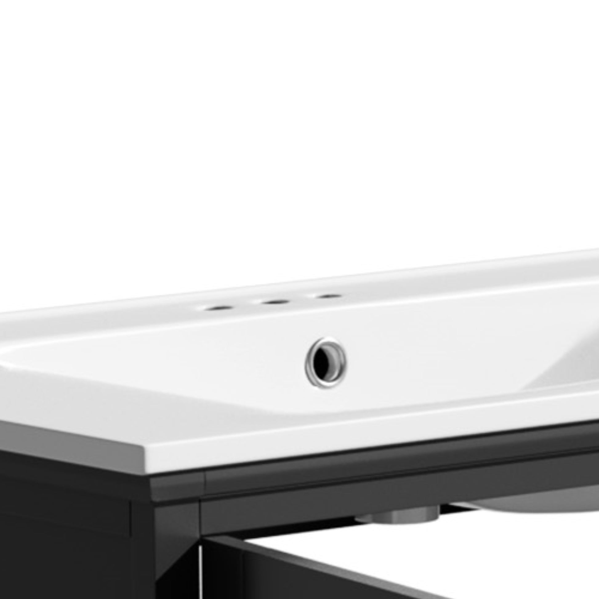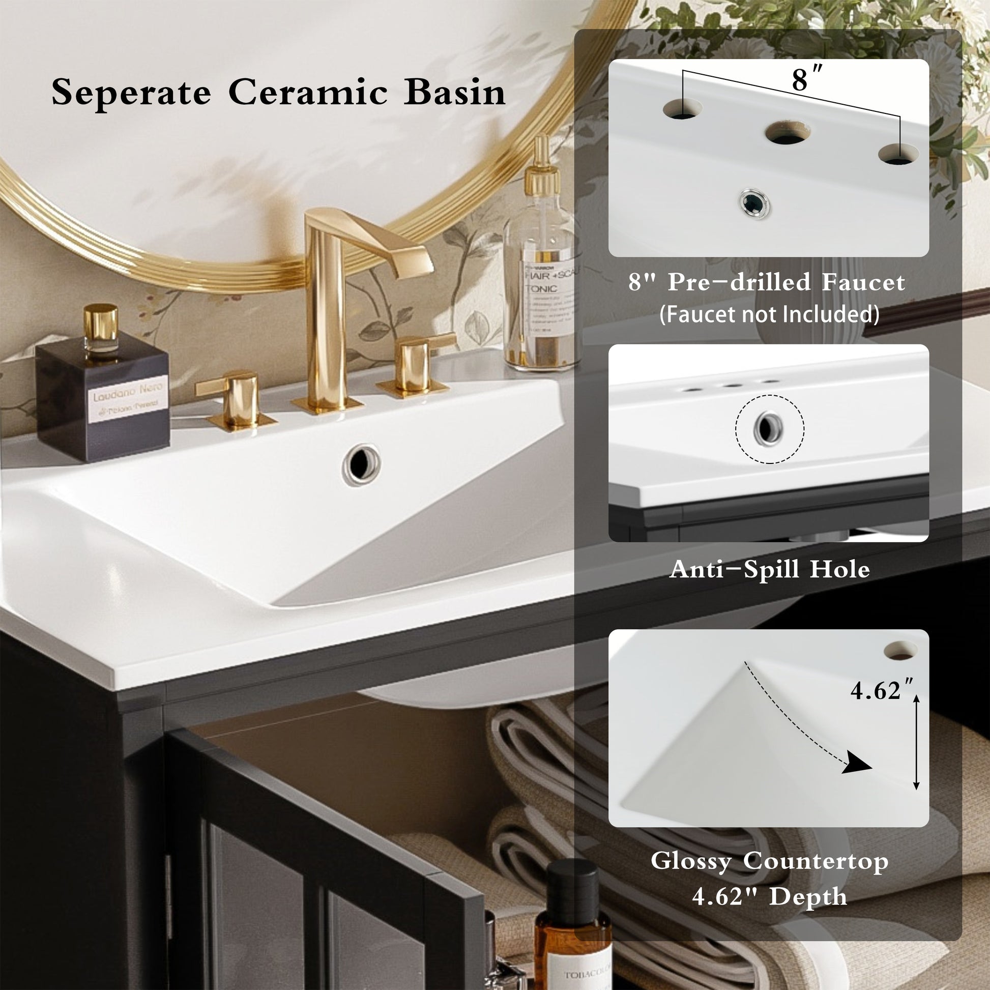 30 Inch Modern Bathroom Vanity with Ceramic Sink Tempered Glass and Black Handles Rubber Wood Frame Black
