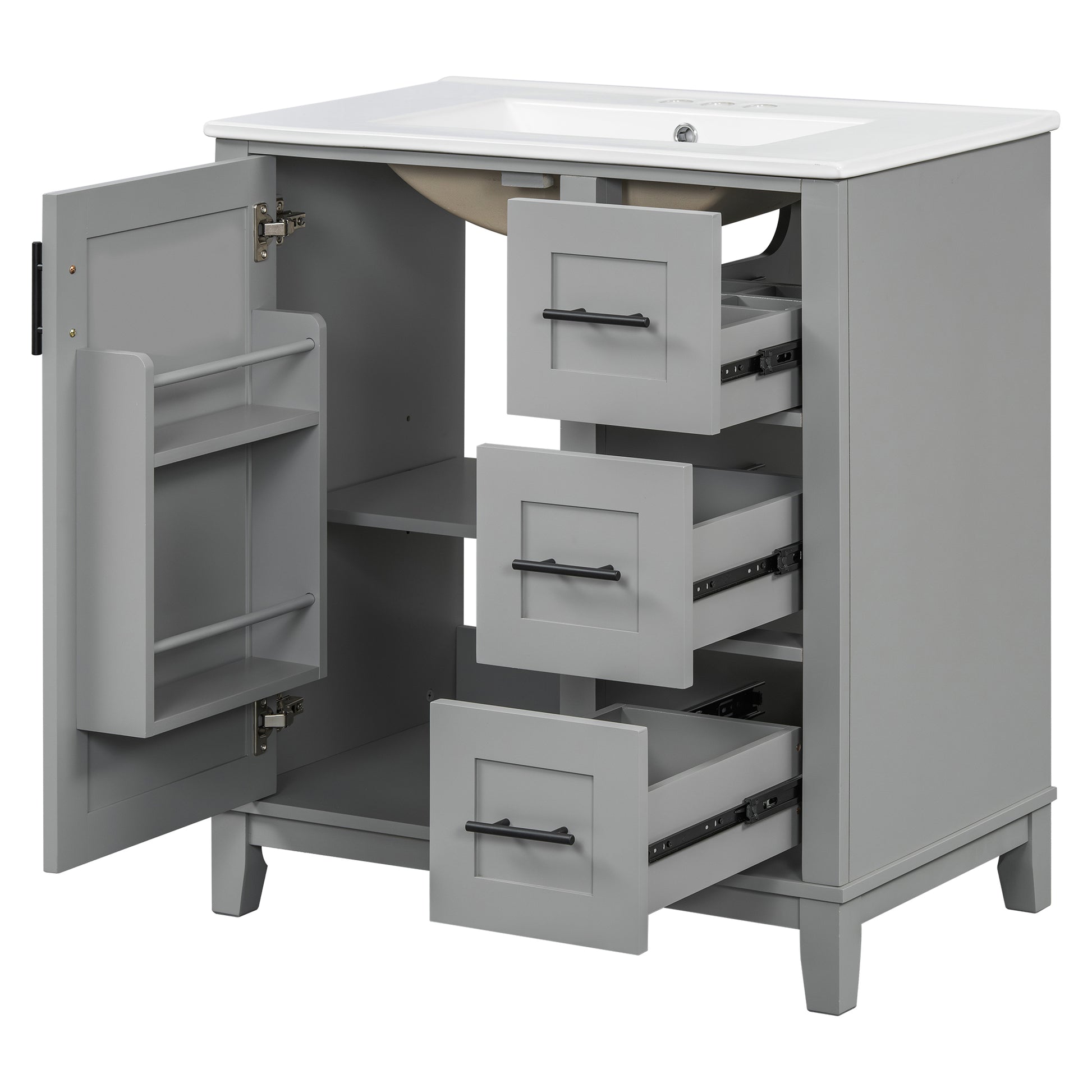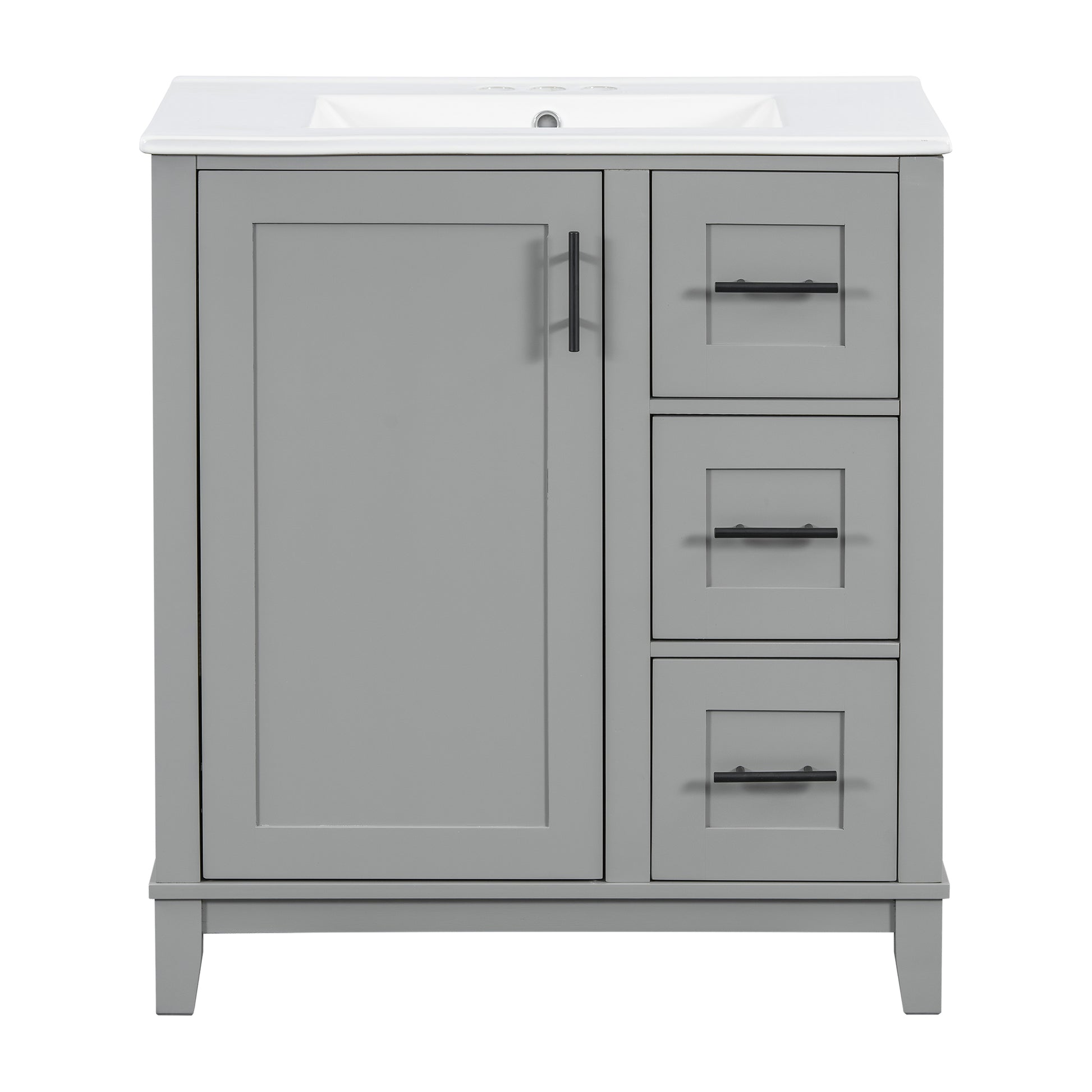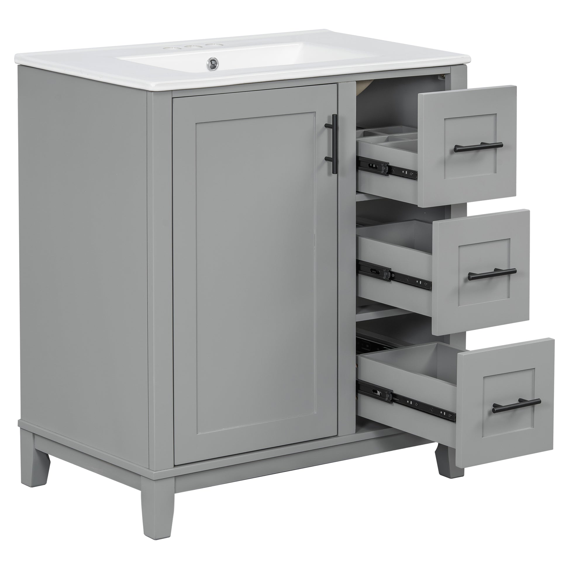30 Inch Modern Grey Bathroom Vanity with Ceramic Sink Solid Wood Frame and Soft Close Storage
