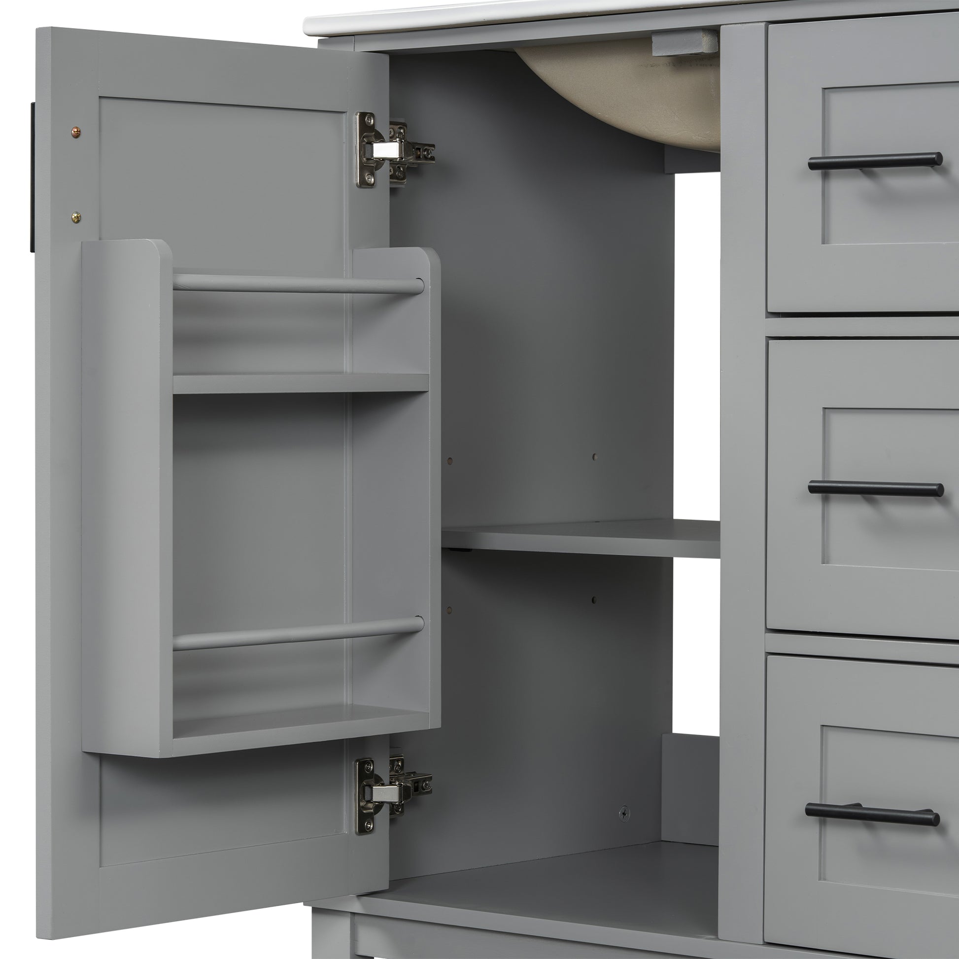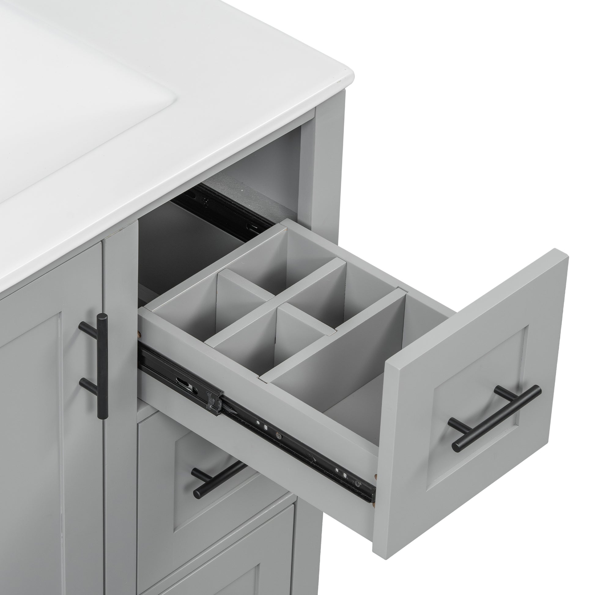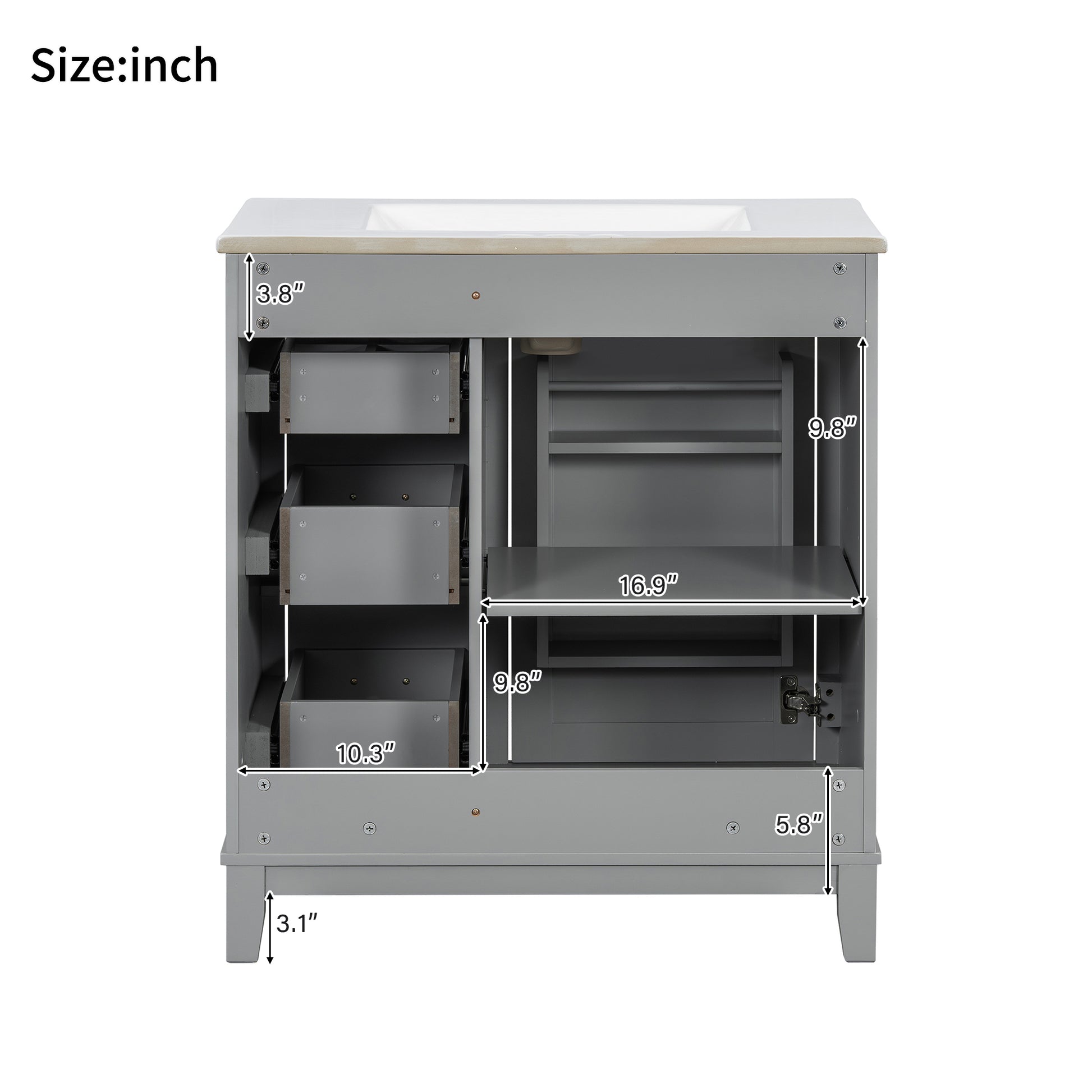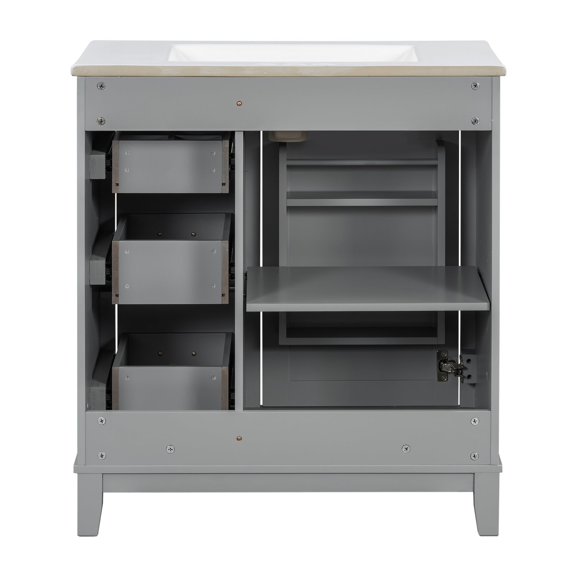 30 Inch Modern Grey Bathroom Vanity with Ceramic Sink Solid Wood Frame and Soft Close Storage