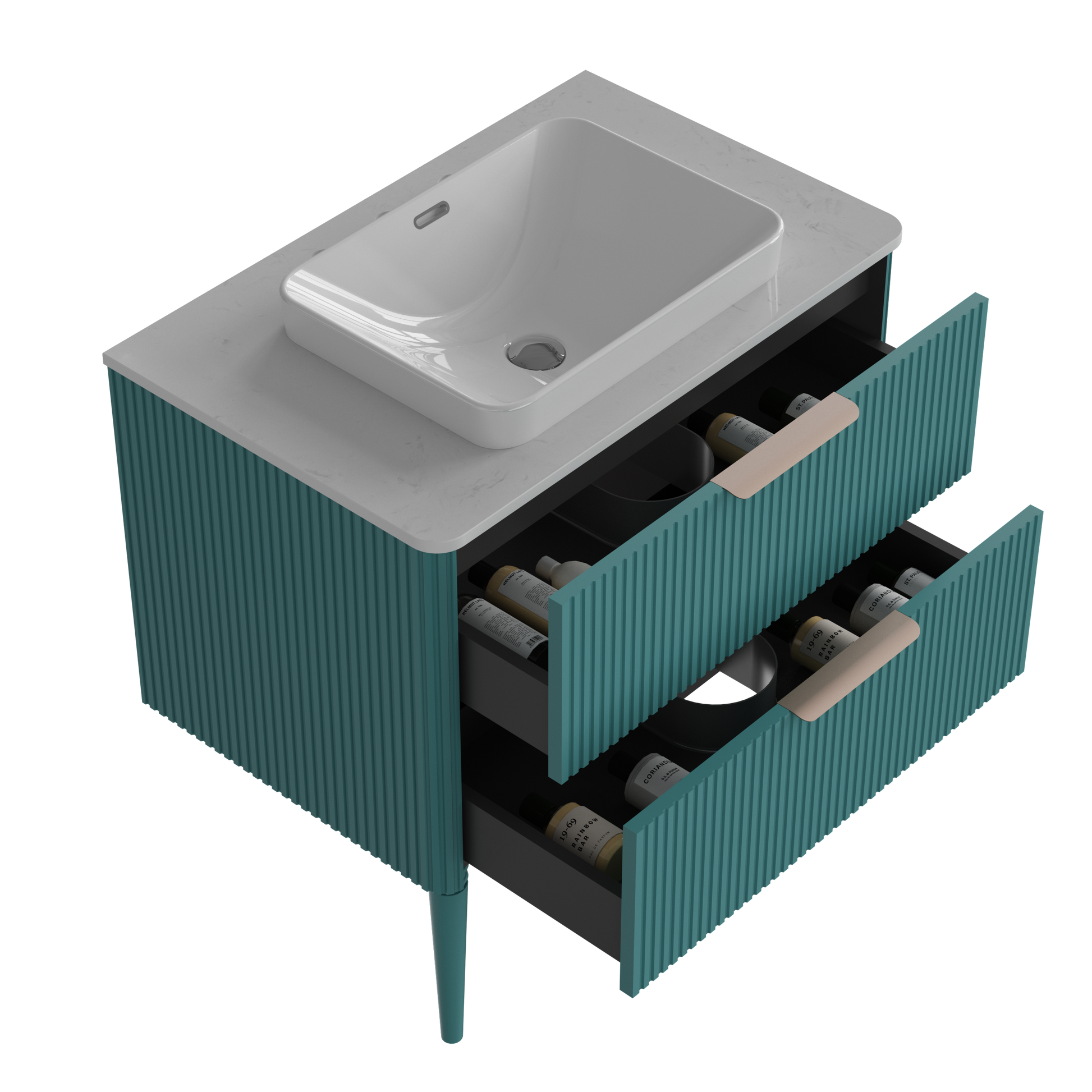 30 Inch Striped Aquamarine Bathroom Vanity with Ceramic Sink Freestanding Vanity for Modern Bathroom Pre Assembled