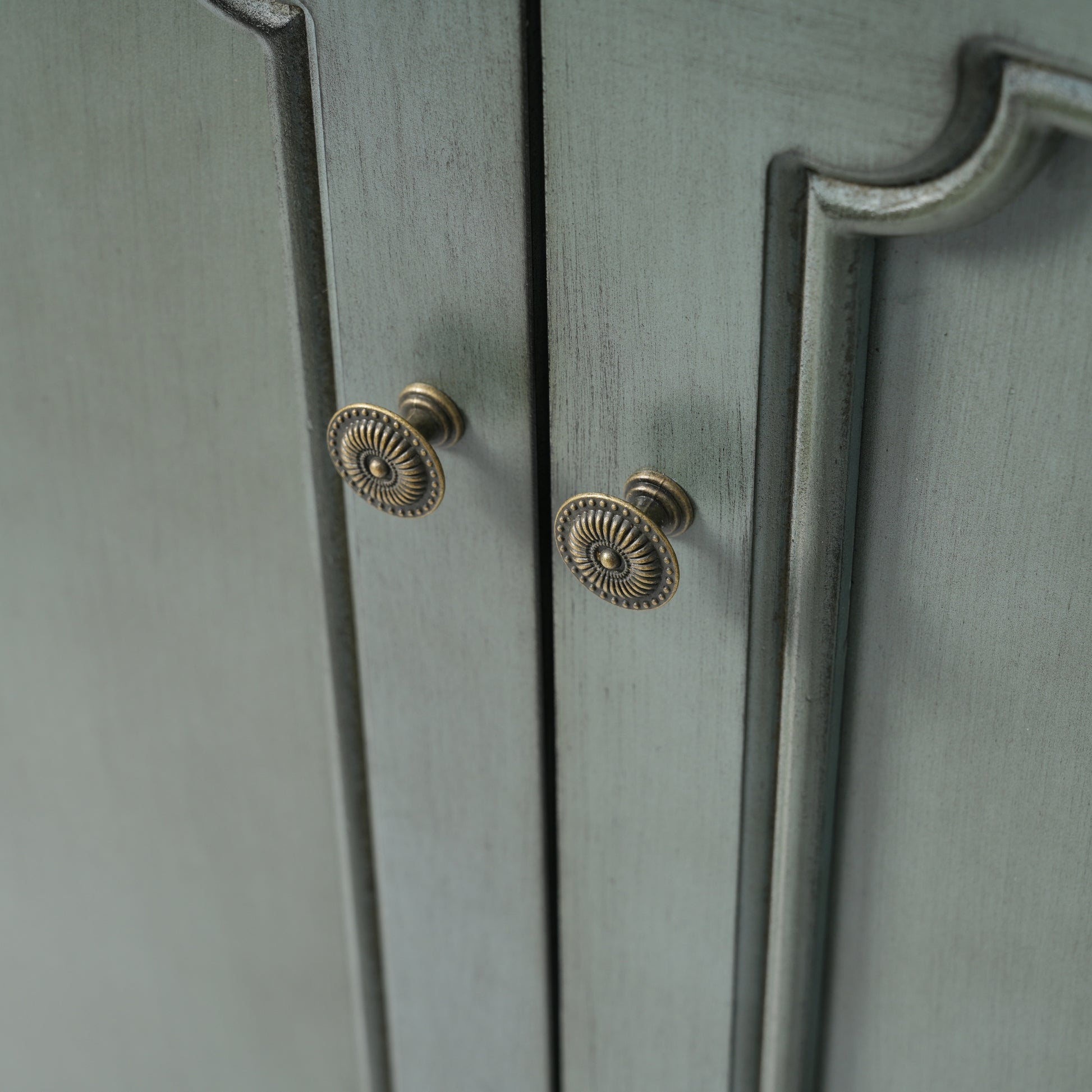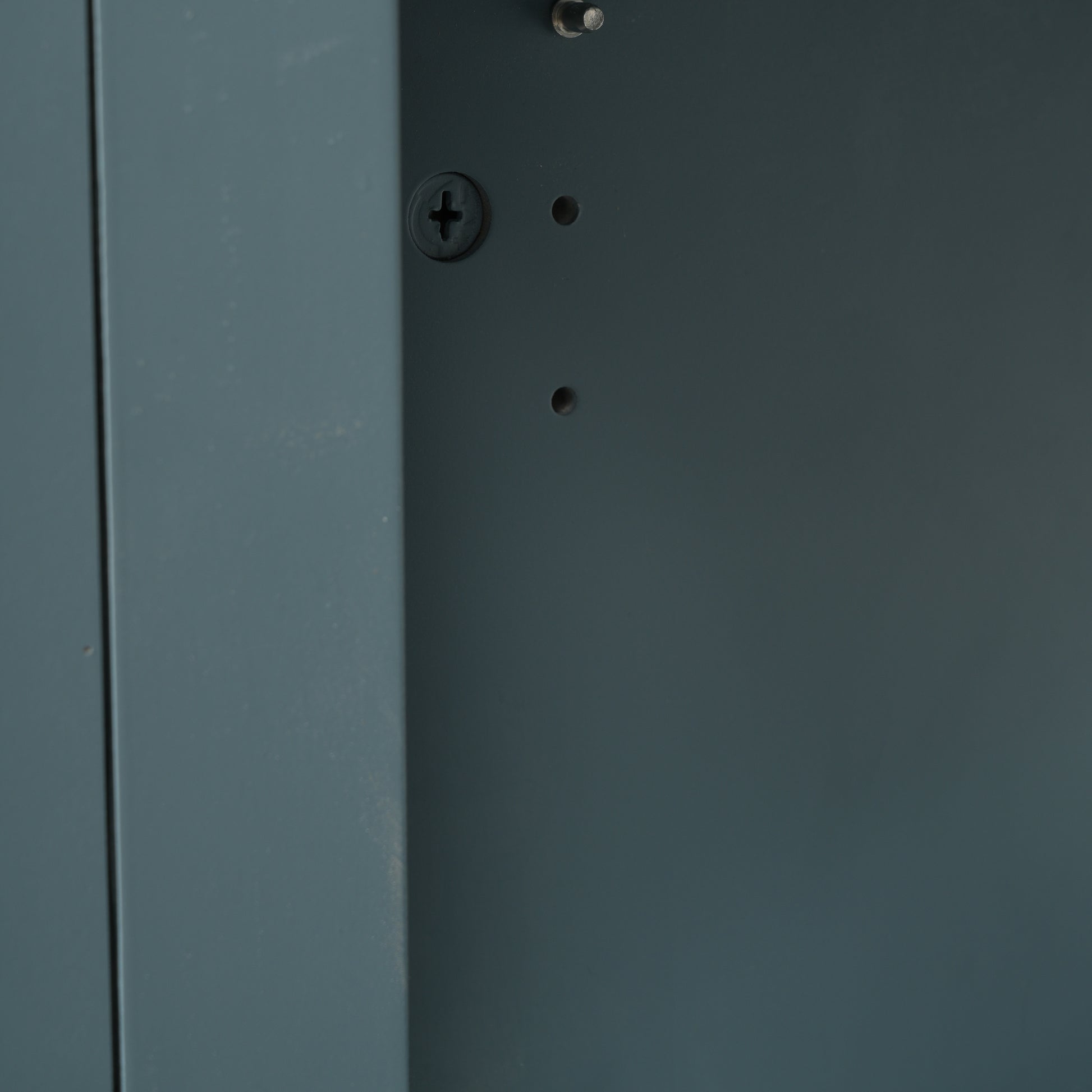 Antique blue finish with crafted panel doors and retro handles adds timeless appeal