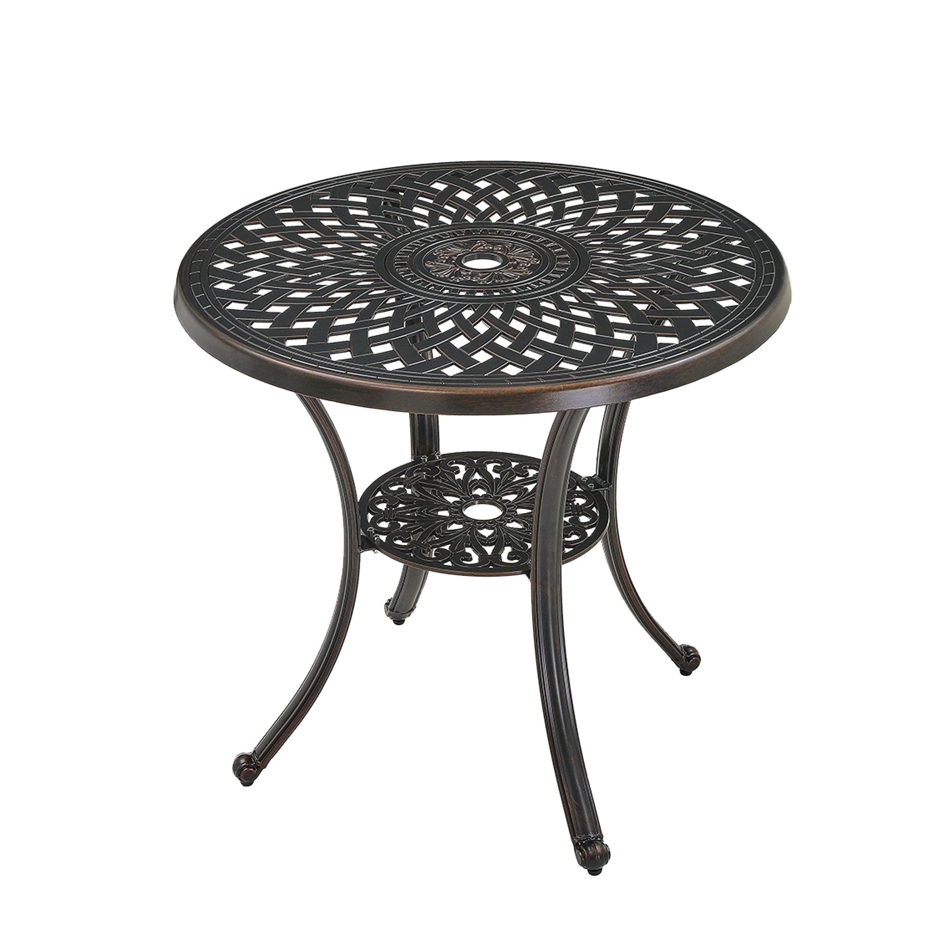 30 Inches Outdoor Dining Table with Umbrella Hole Cast Aluminium Patio Bistro Table Outdoor Round Bistro Table, Bronze