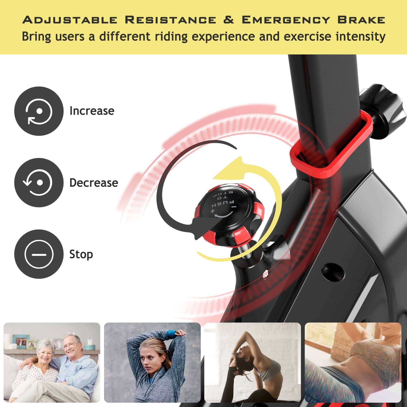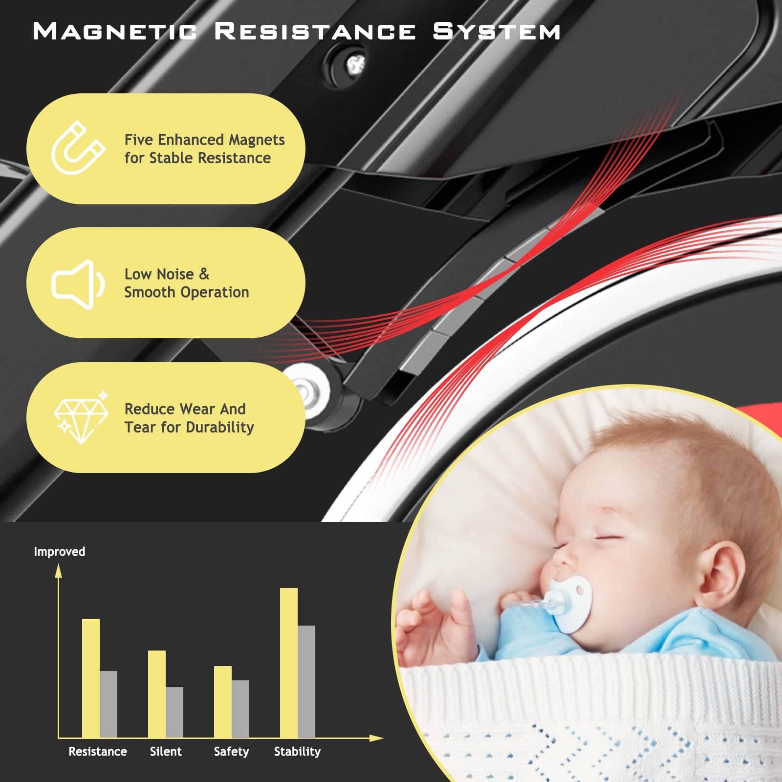 ● Smooth Magnetic Resistance: Different from normal frictional resistance that may produce dust and noise, this upgrade indoor exercise bicycle adopts the magnetic resistance system controlled by the five cobalt-nickel magnets to a more difficult or easier workout. The uniform and stable resistance restore the real cycling experience.