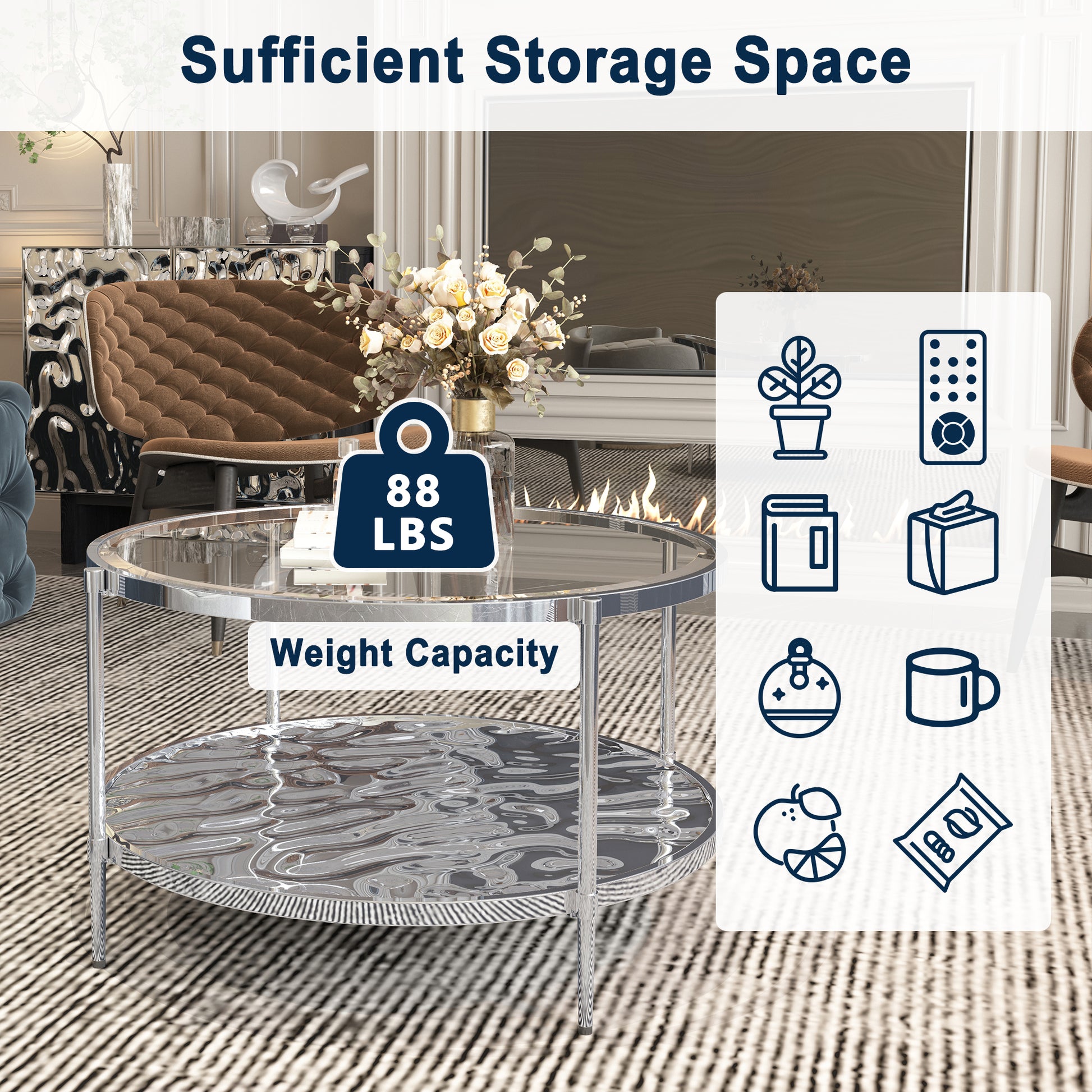 31.5¡± Round 2-Tier Stainless Steel Coffee Table
